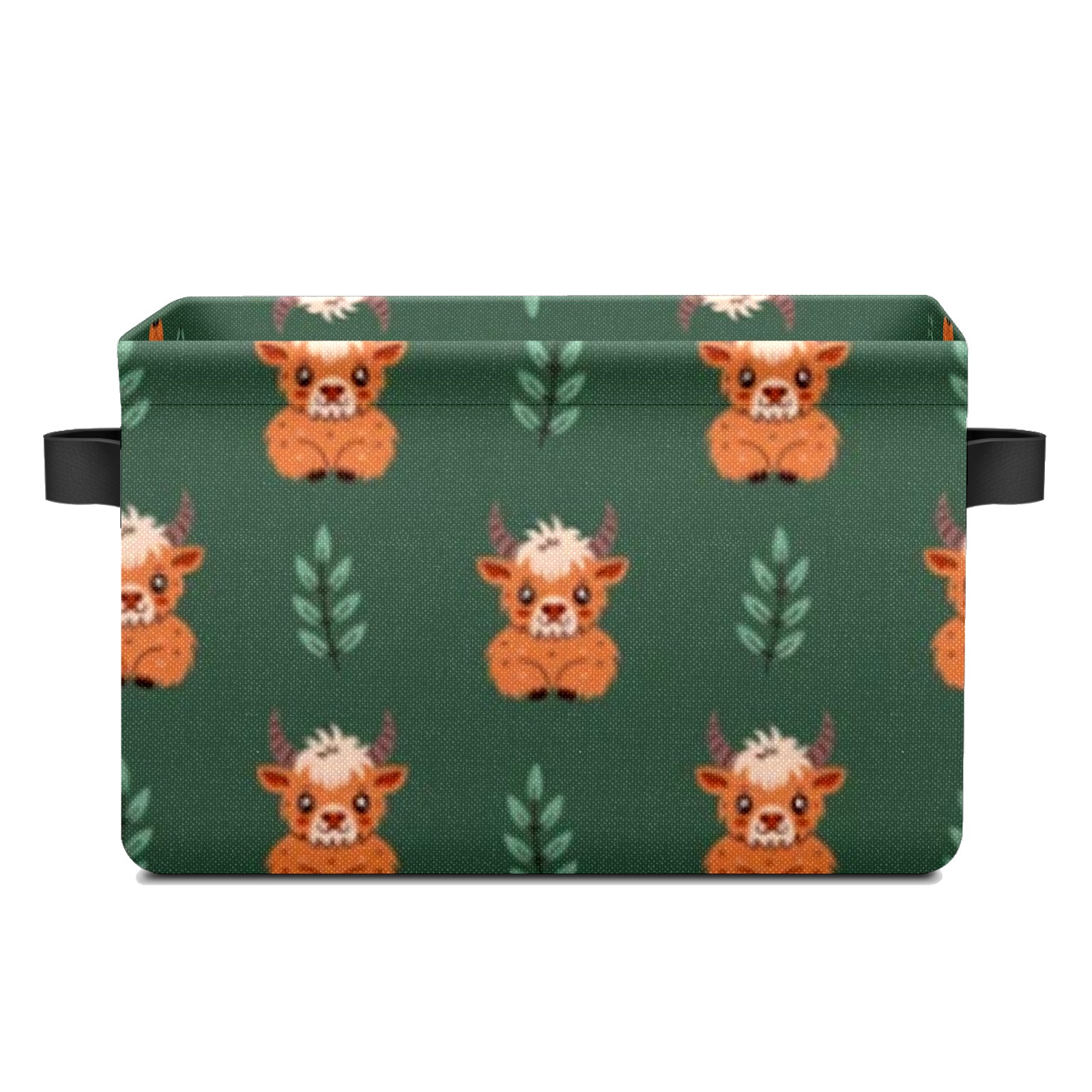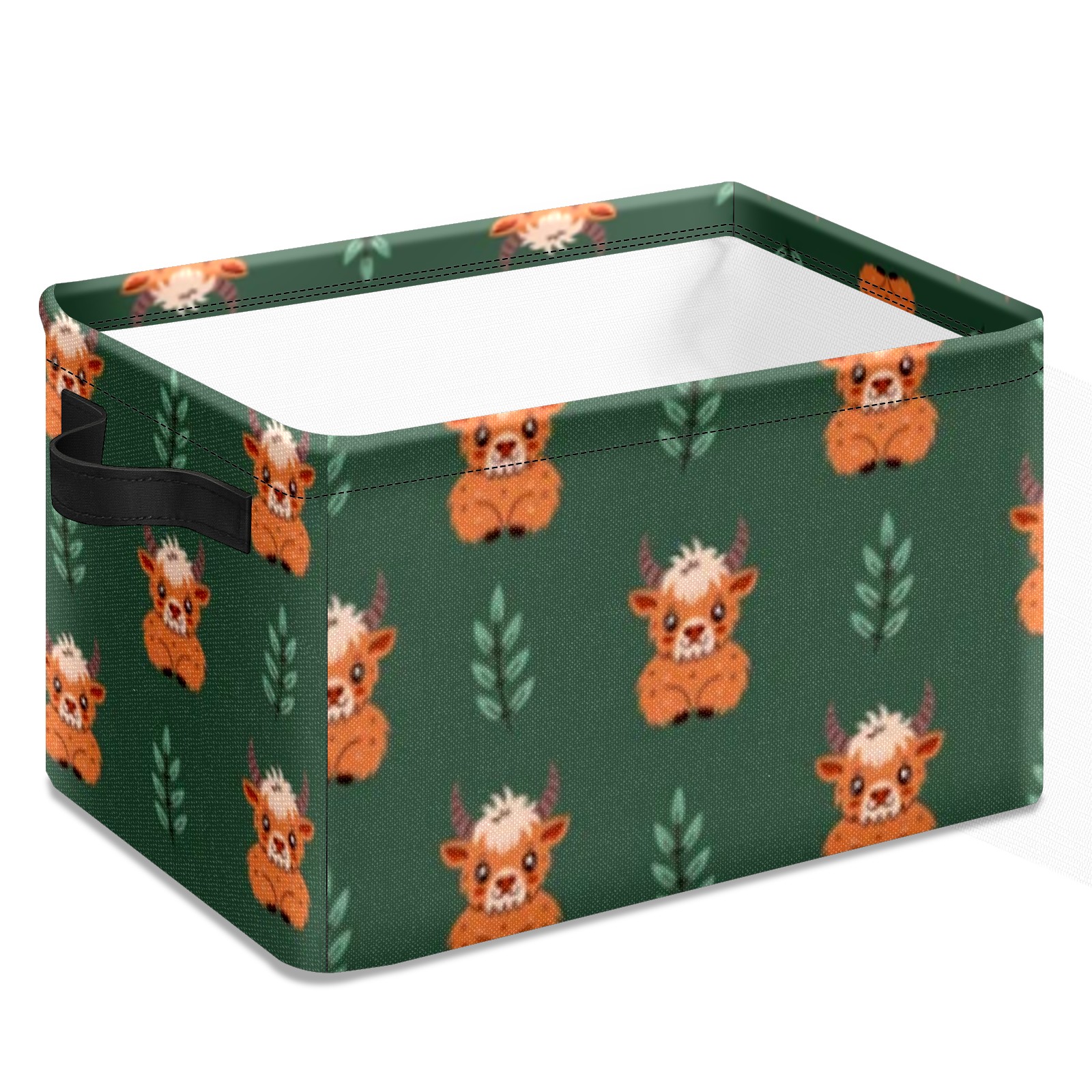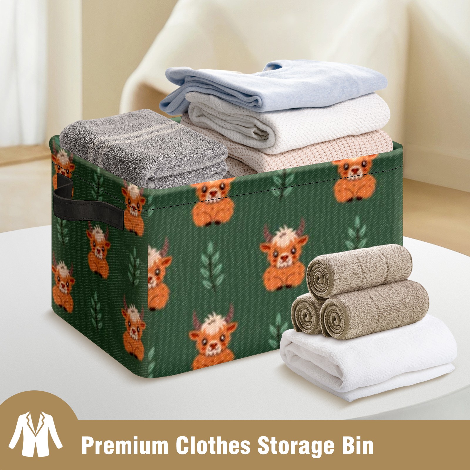 Foldable and Stackable Fabric Storage Basket for Home Organization with Handles, Decorative Closet Bins for Shelves and Laundry Storage( Cow)