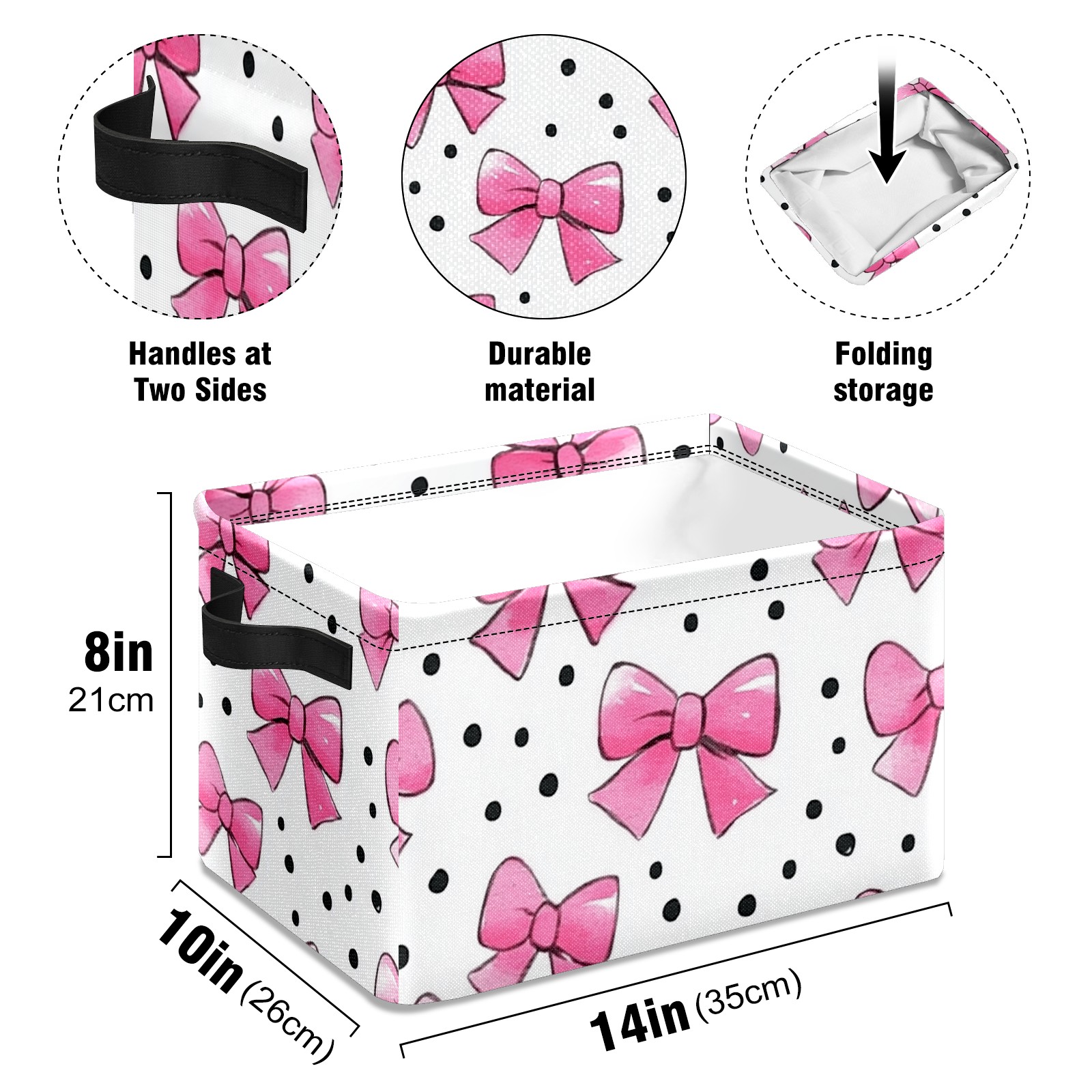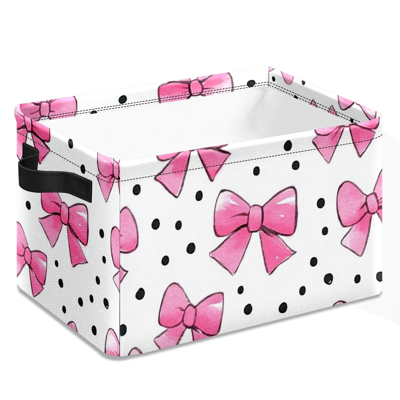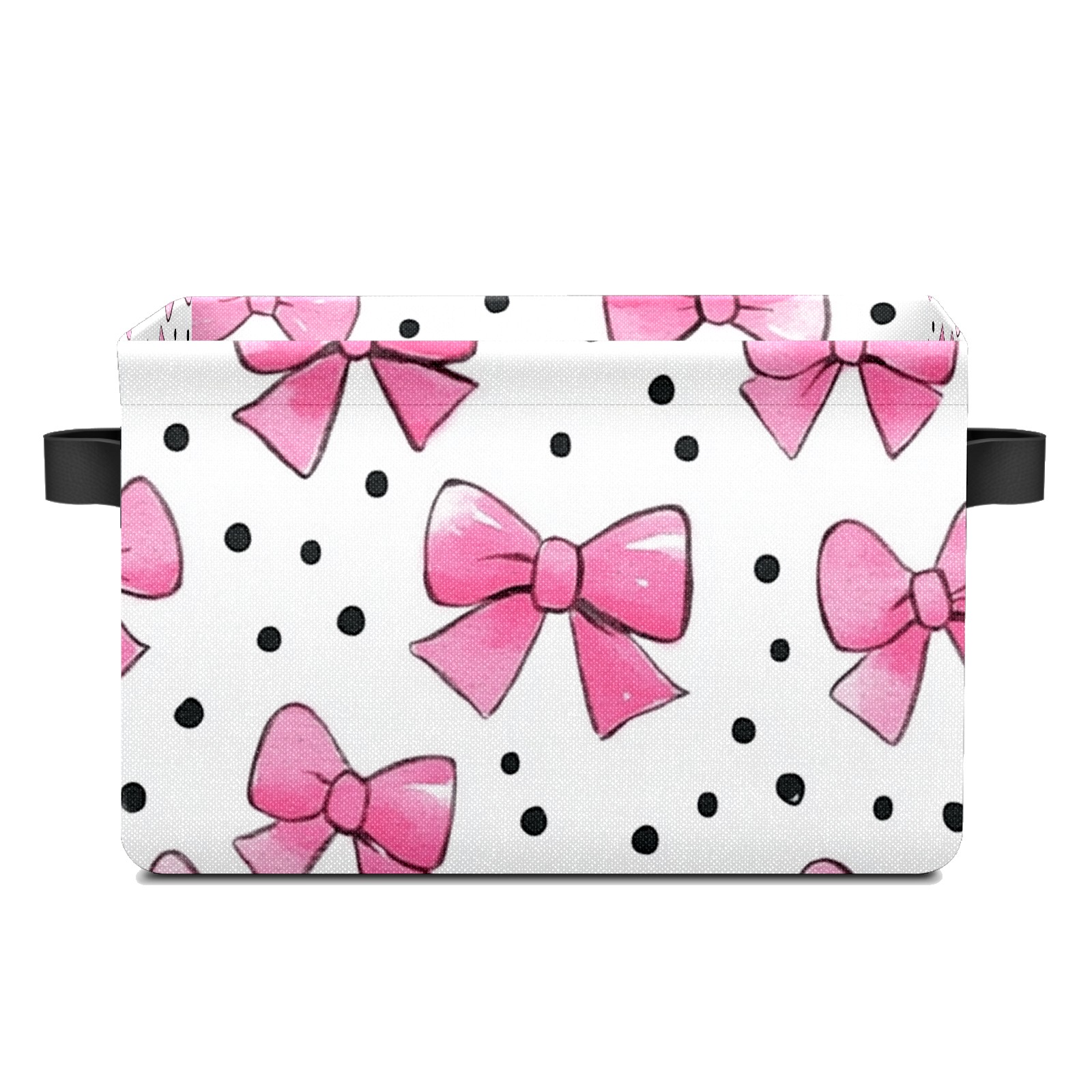 Foldable and Stackable Fabric Storage Basket for Home Organization with Handles, Decorative Closet Bins for Shelves and Laundry Storage( Pink Bows And Black Dots)
