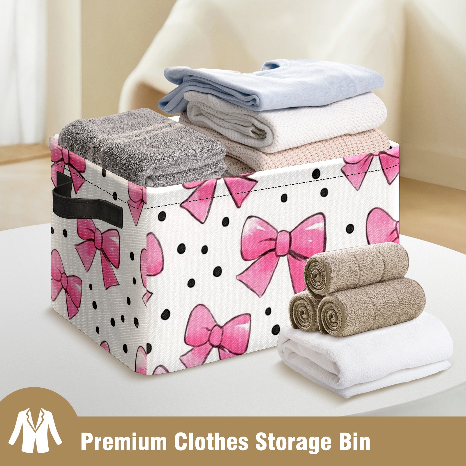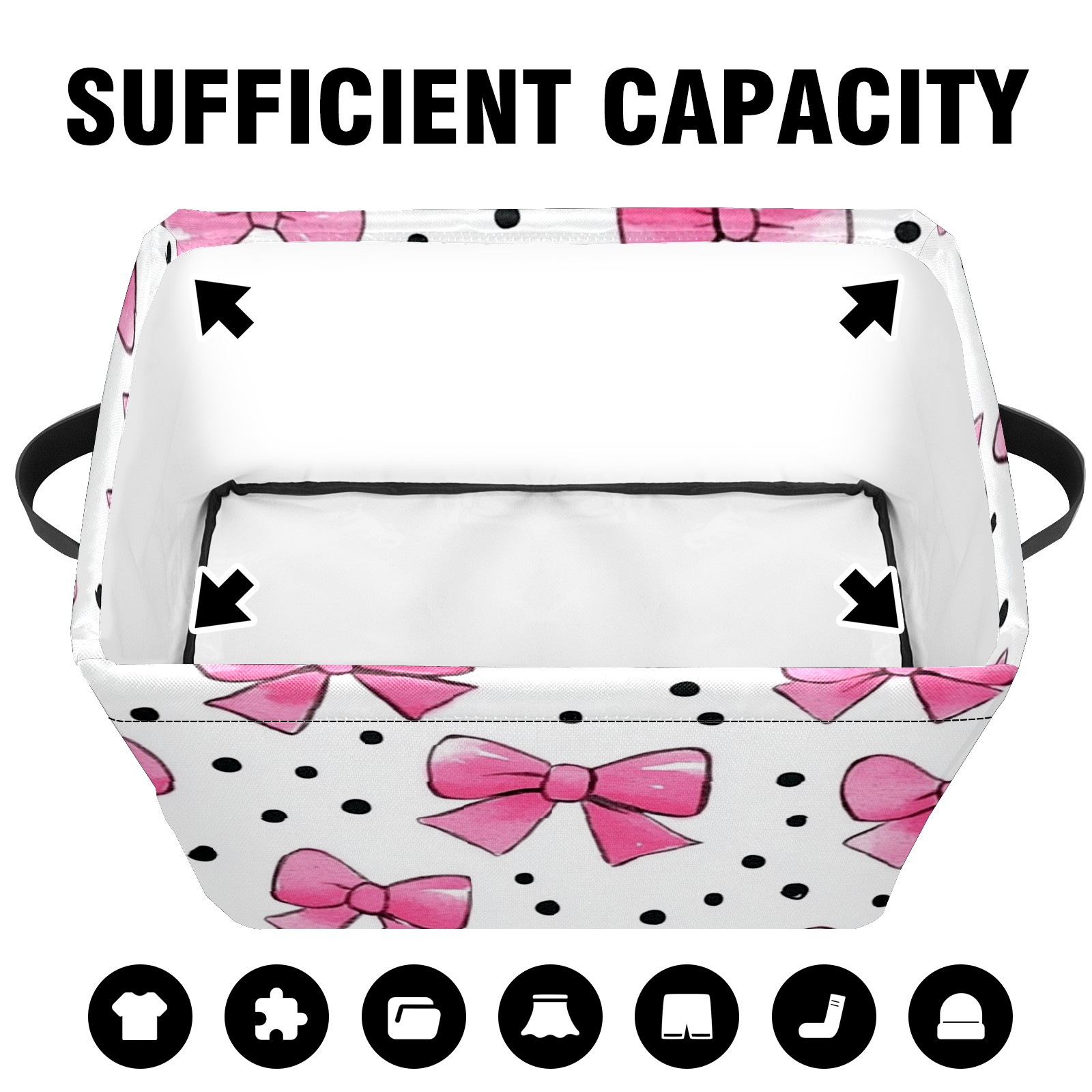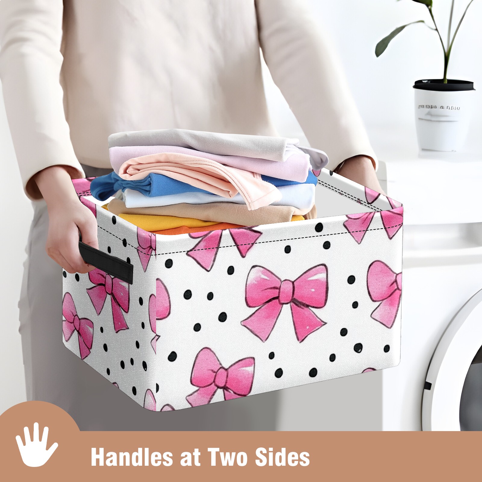 Foldable and Stackable Fabric Storage Basket for Home Organization with Handles, Decorative Closet Bins for Shelves and Laundry Storage( Pink Bows And Black Dots)