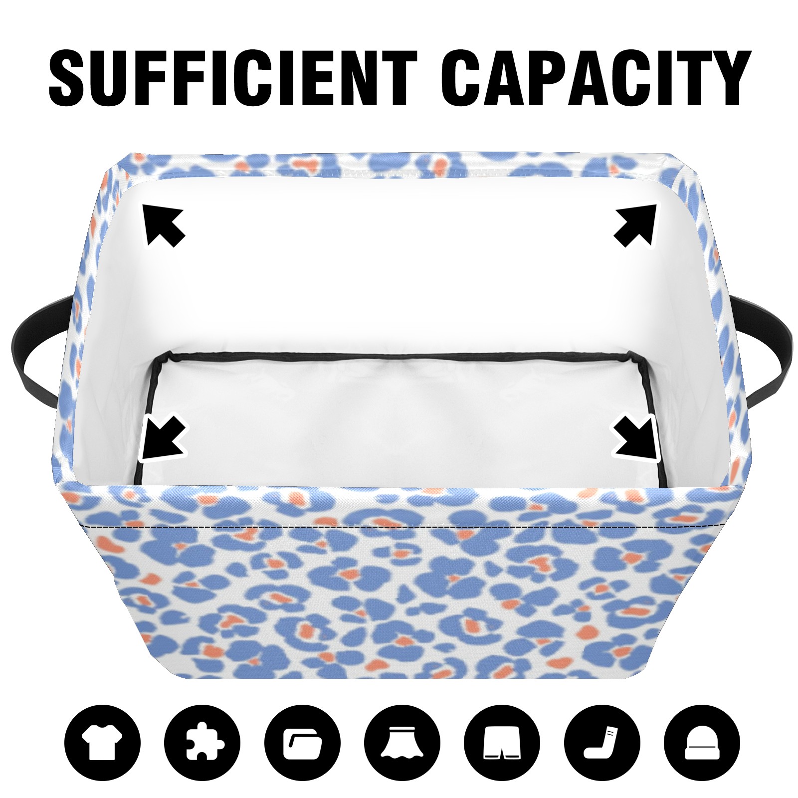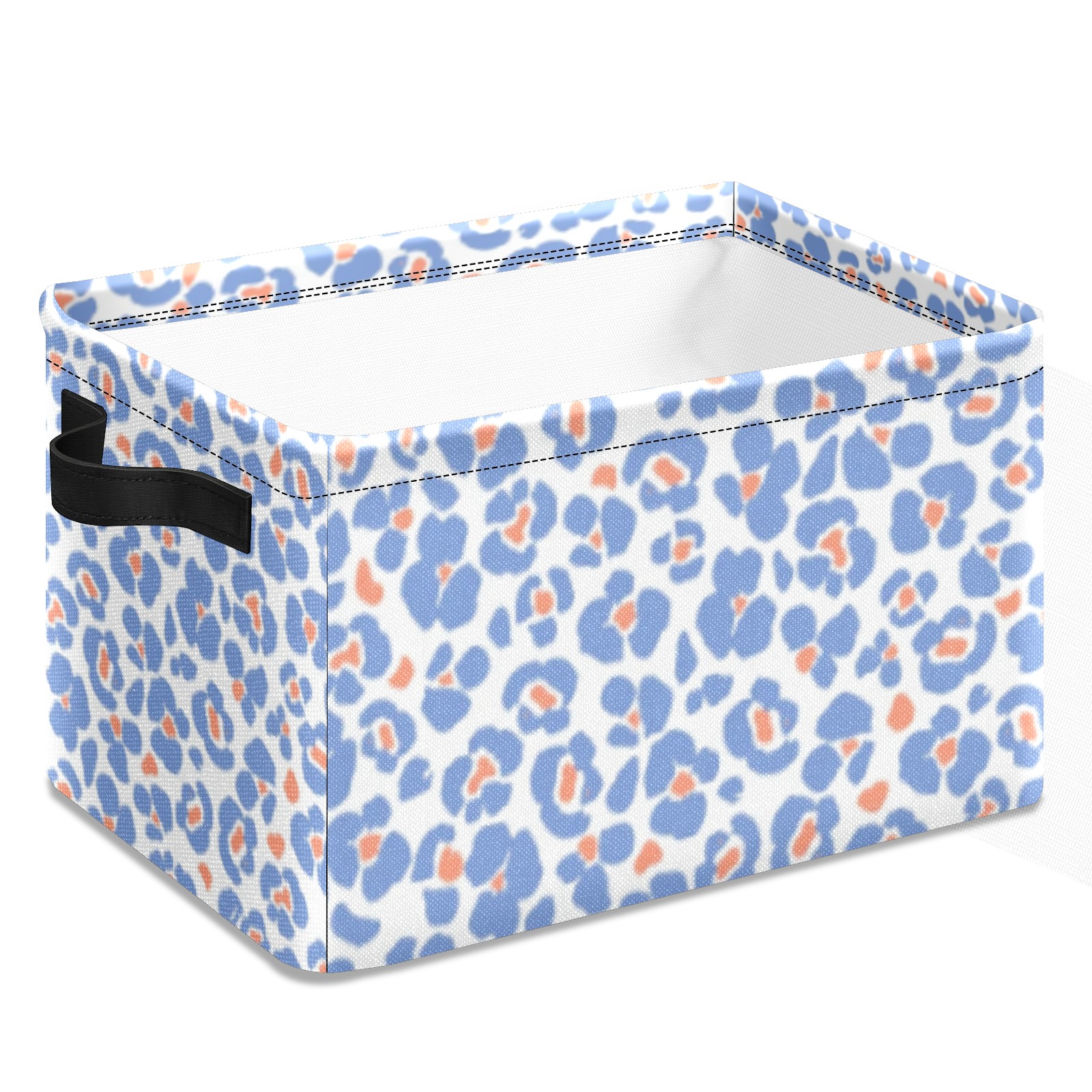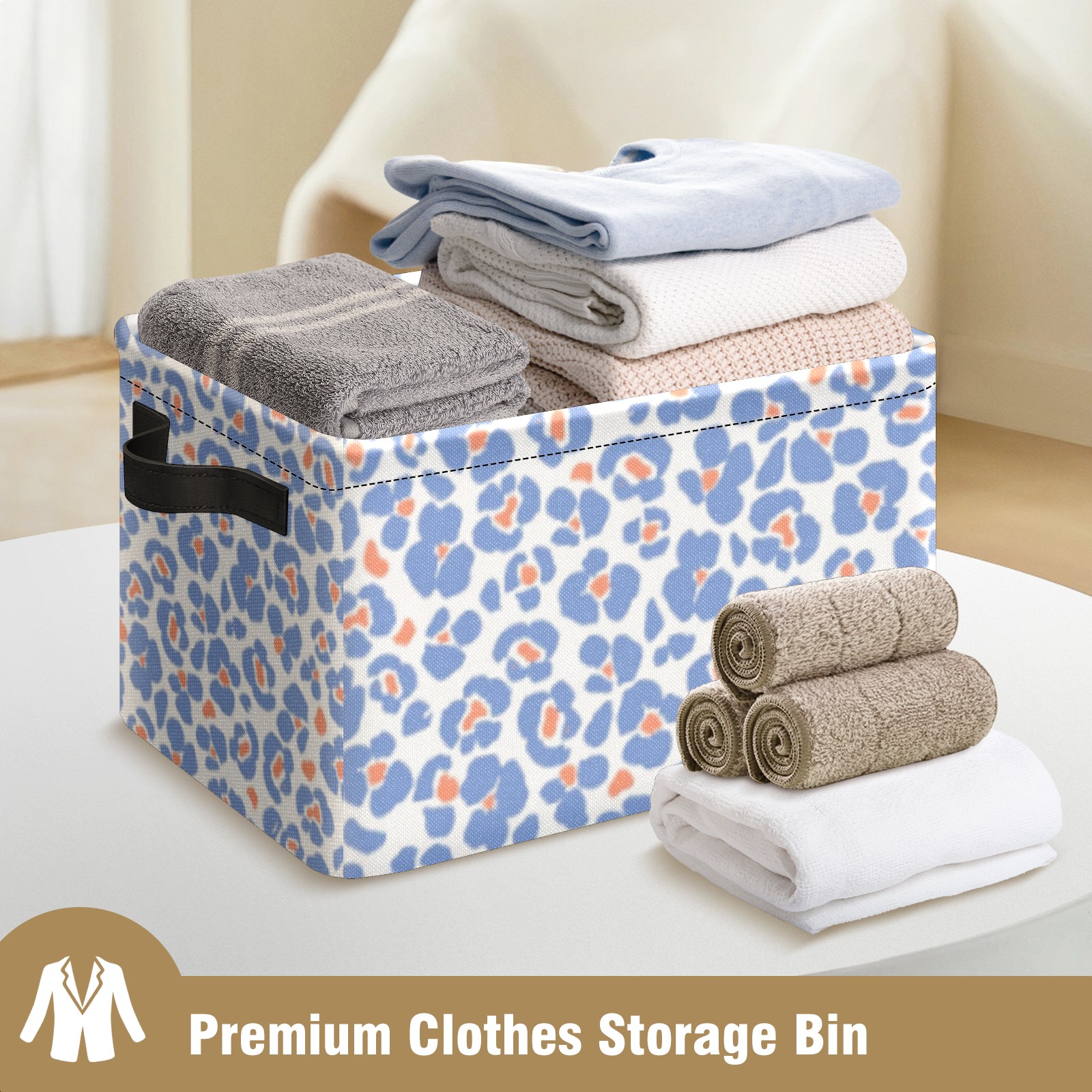 Foldable and Stackable Fabric Storage Basket for Home Organization with Handles, Decorative Closet Bins for Shelves and Laundry Storage( Blue Leopard)