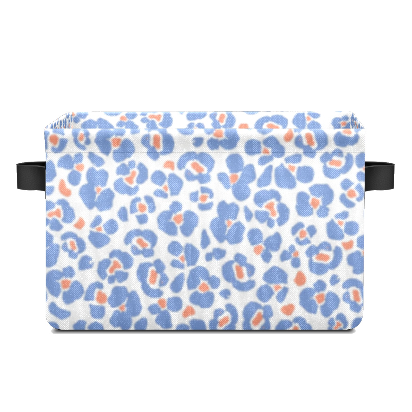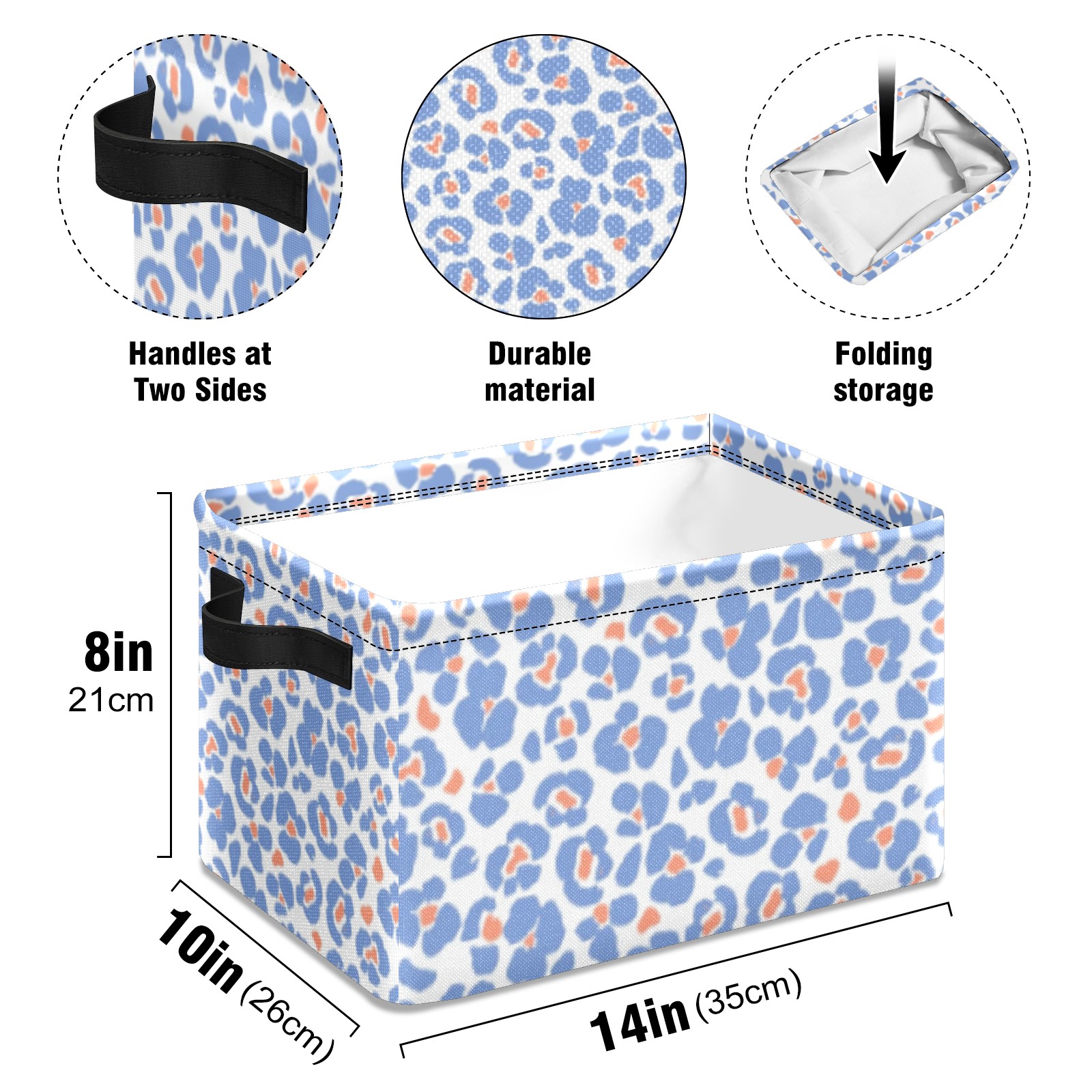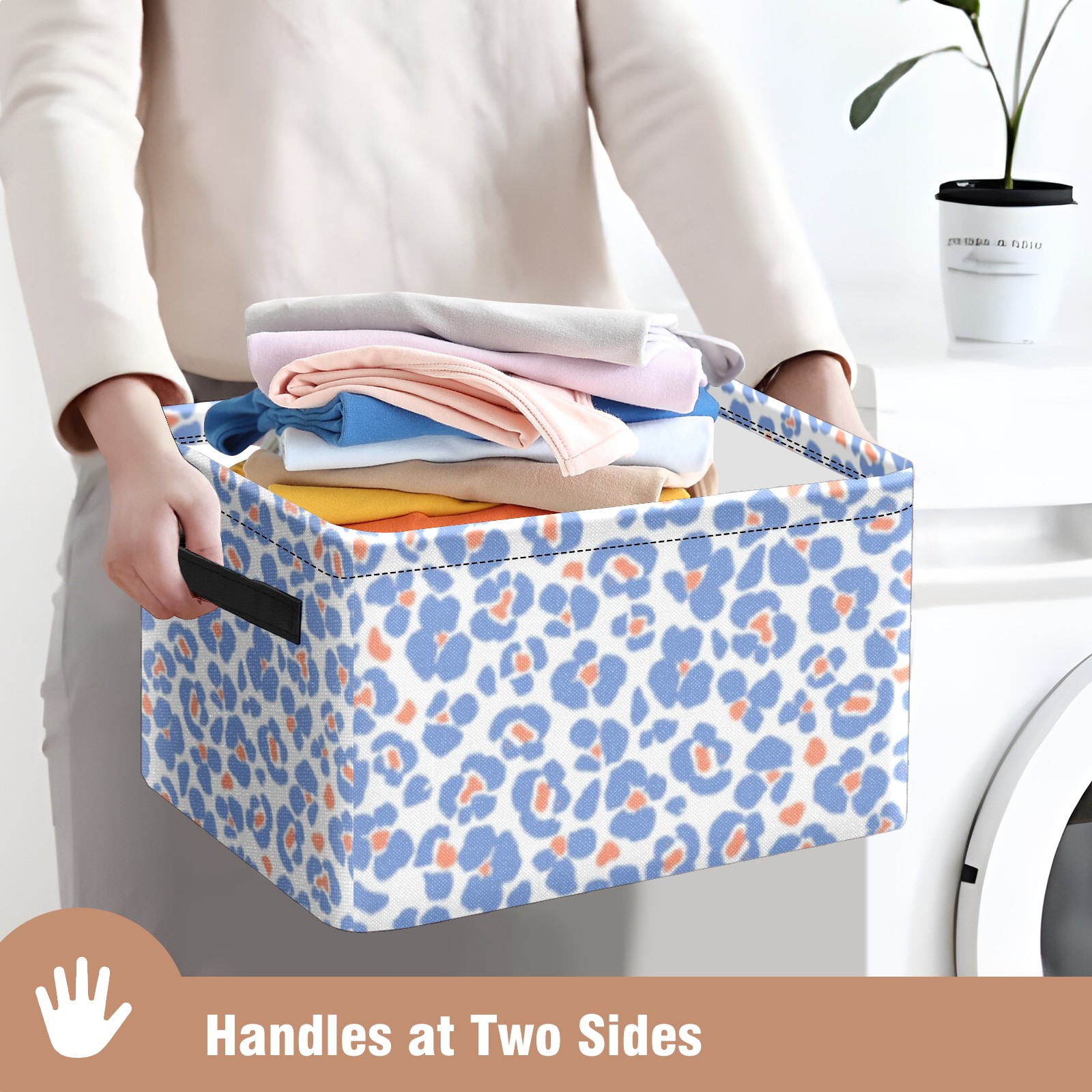 Foldable and Stackable Fabric Storage Basket for Home Organization with Handles, Decorative Closet Bins for Shelves and Laundry Storage( Blue Leopard)