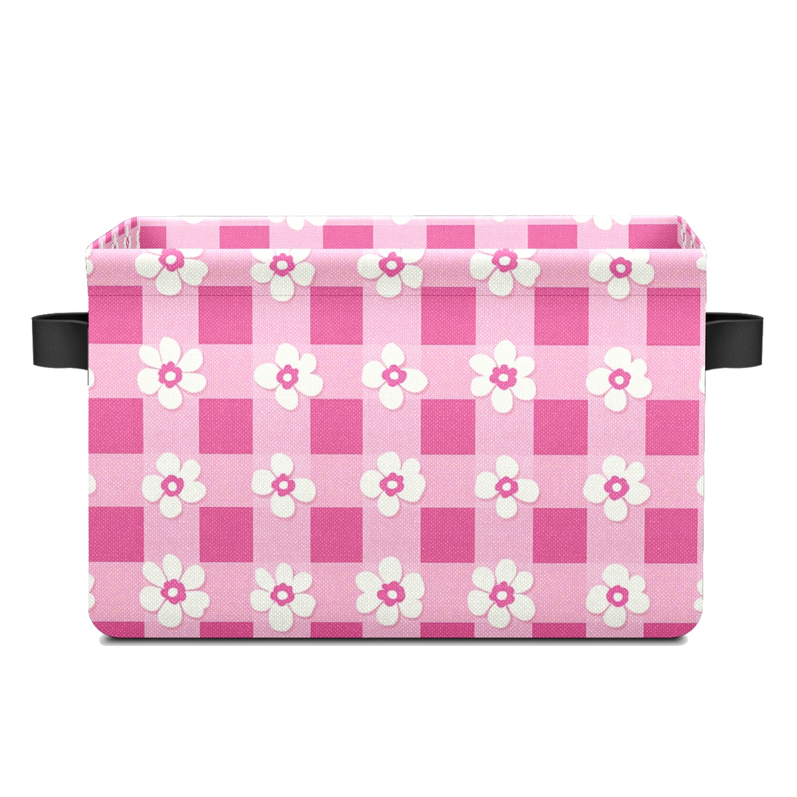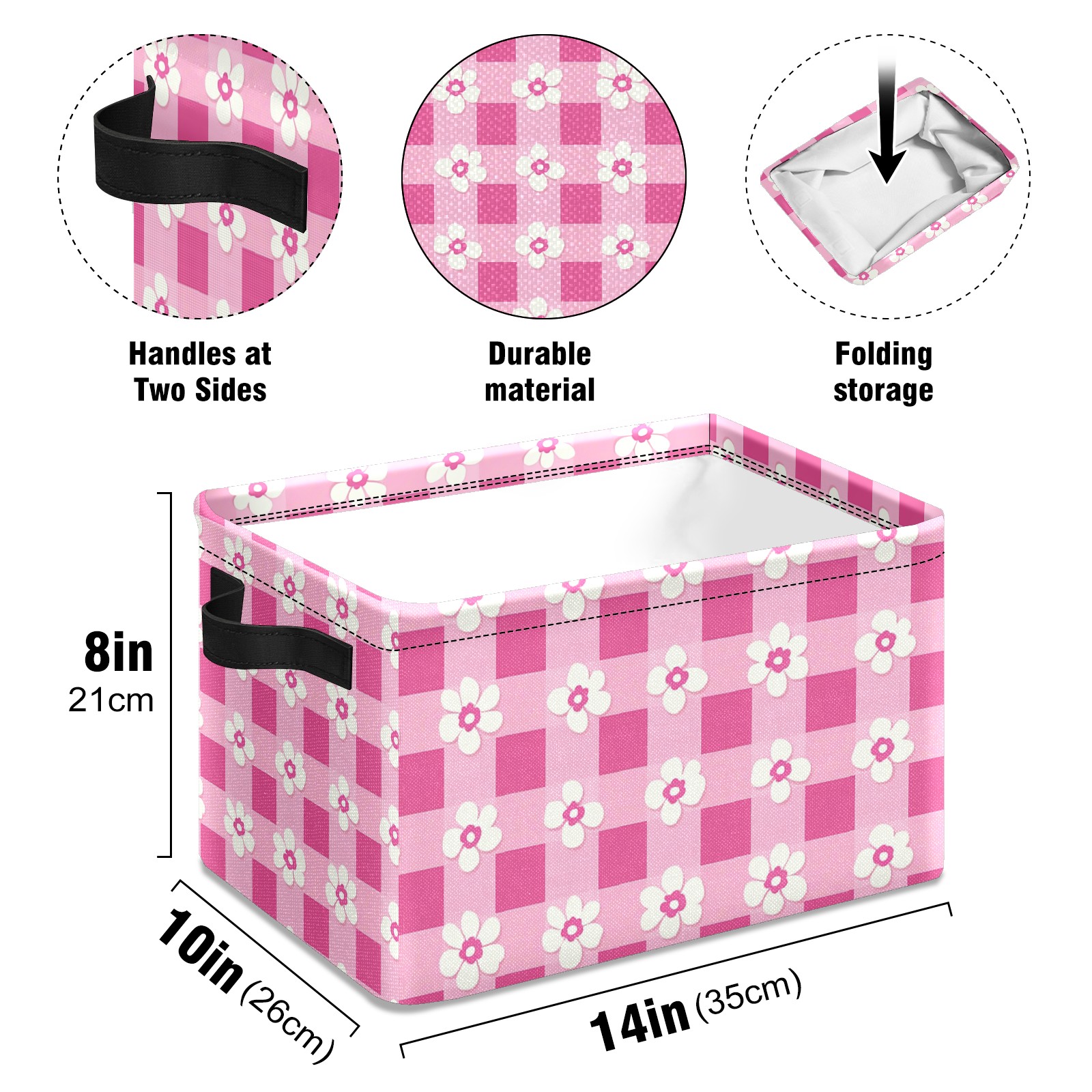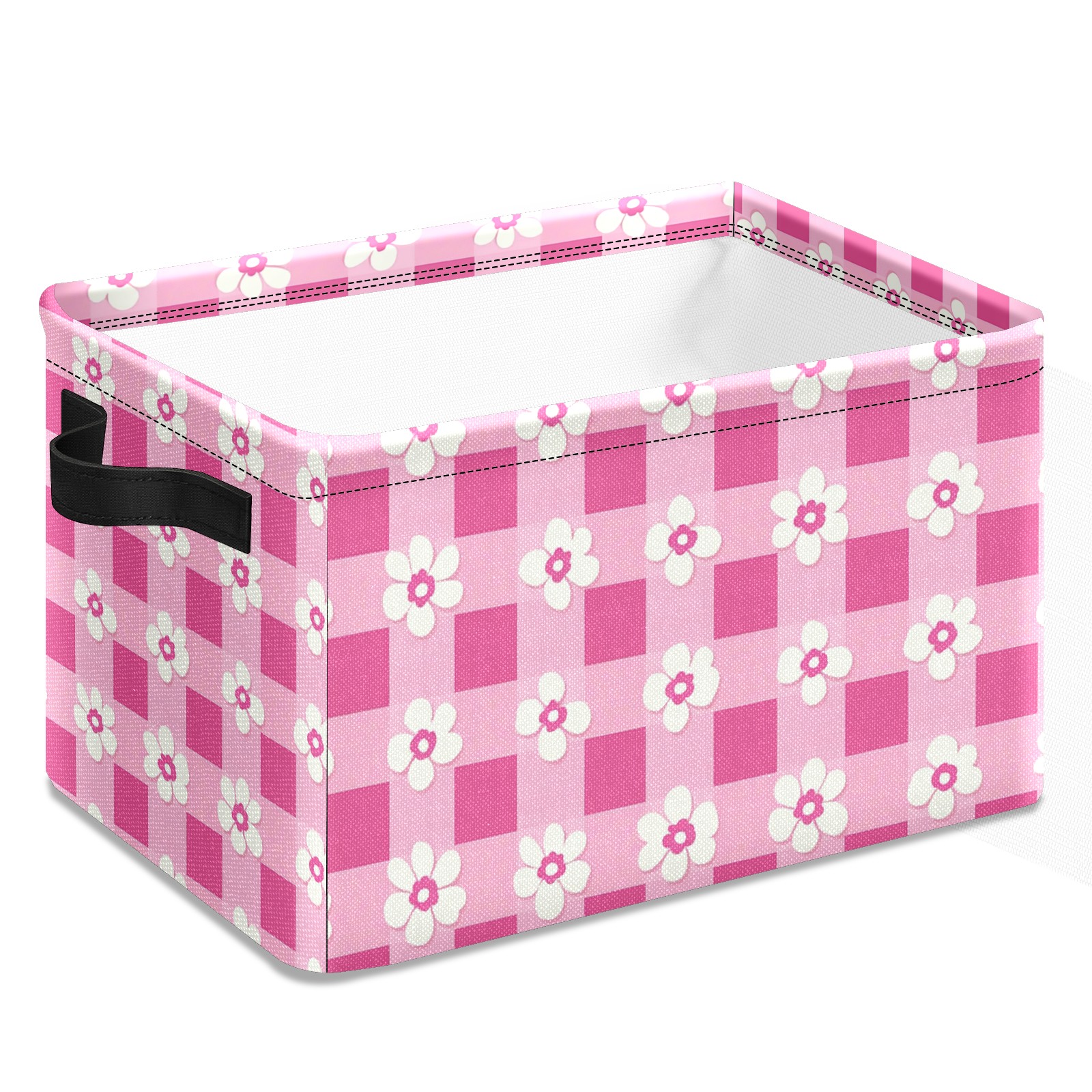 Foldable and Stackable Fabric Storage Basket for Home Organization with Handles, Decorative Closet Bins for Shelves and Laundry Storage( Pink Gingham With Flowers)