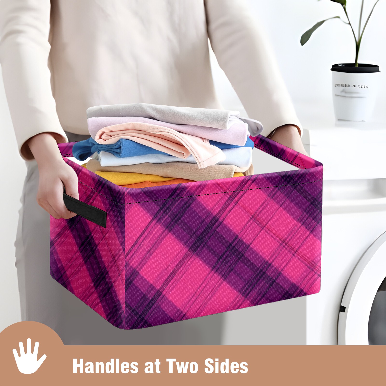 Foldable and Stackable Fabric Storage Basket for Home Organization with Handles, Decorative Closet Bins for Shelves and Laundry Storage( Pink And Purple)