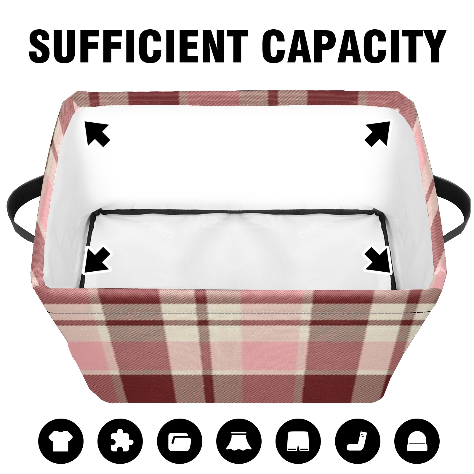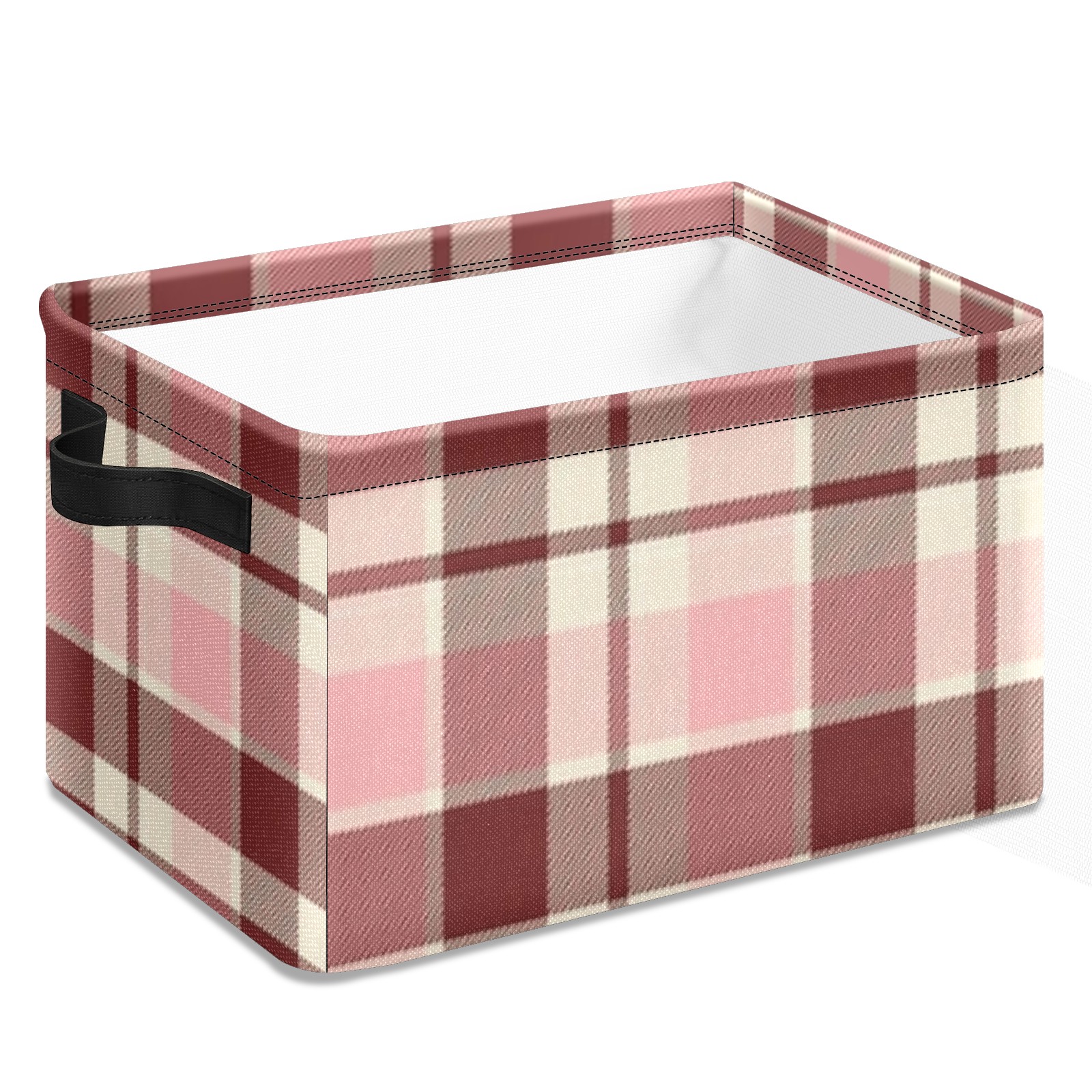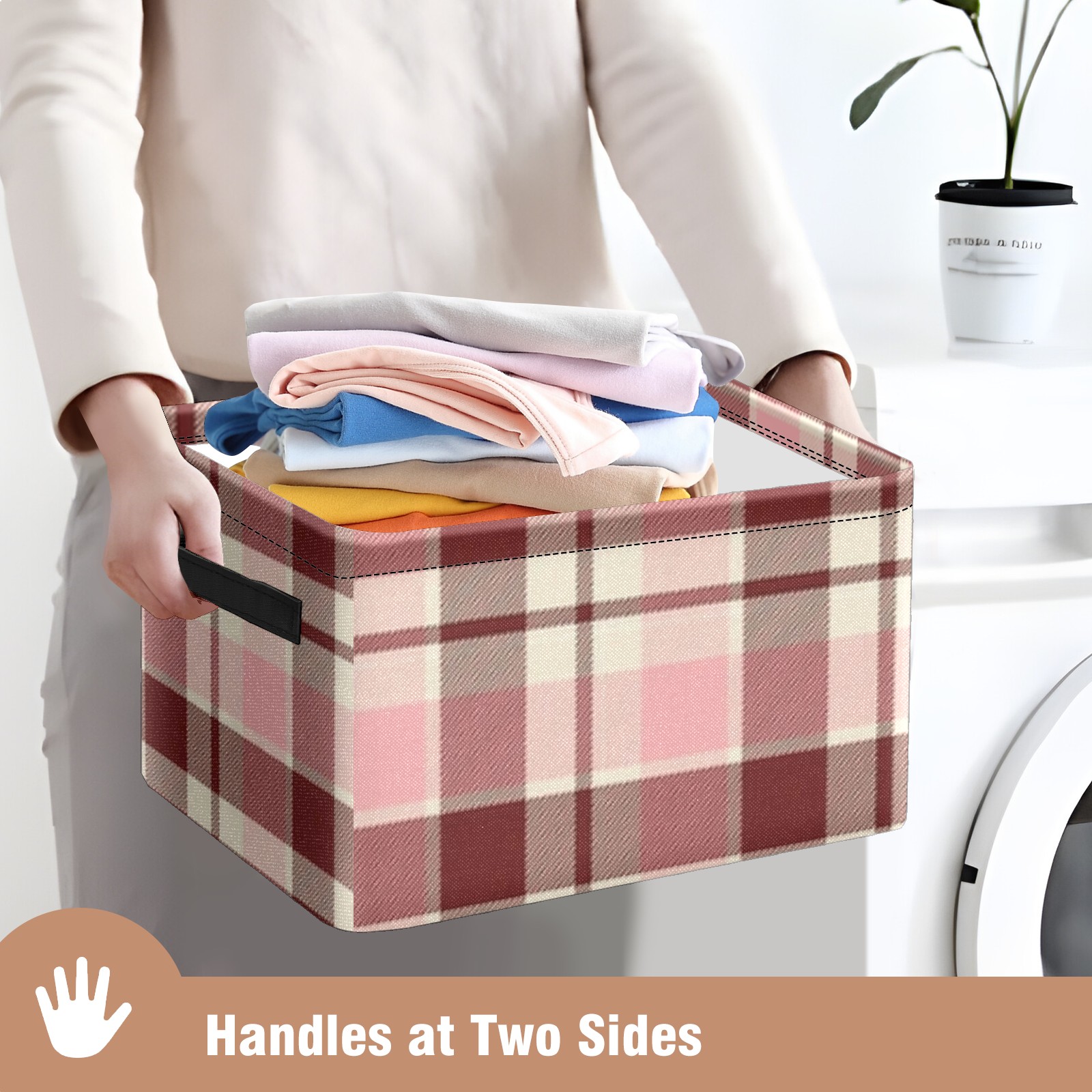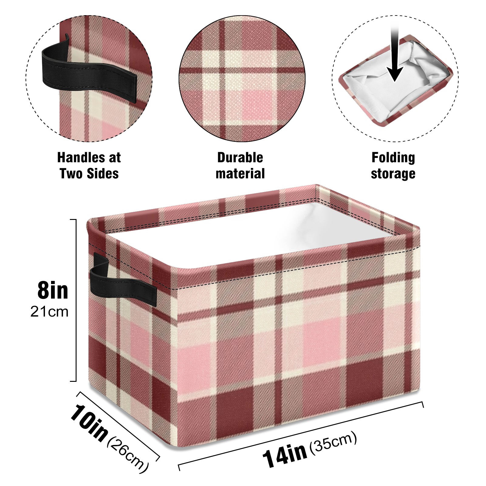 Foldable and Stackable Fabric Storage Basket for Home Organization with Handles, Decorative Closet Bins for Shelves and Laundry Storage( Pink And Brown Checkered)