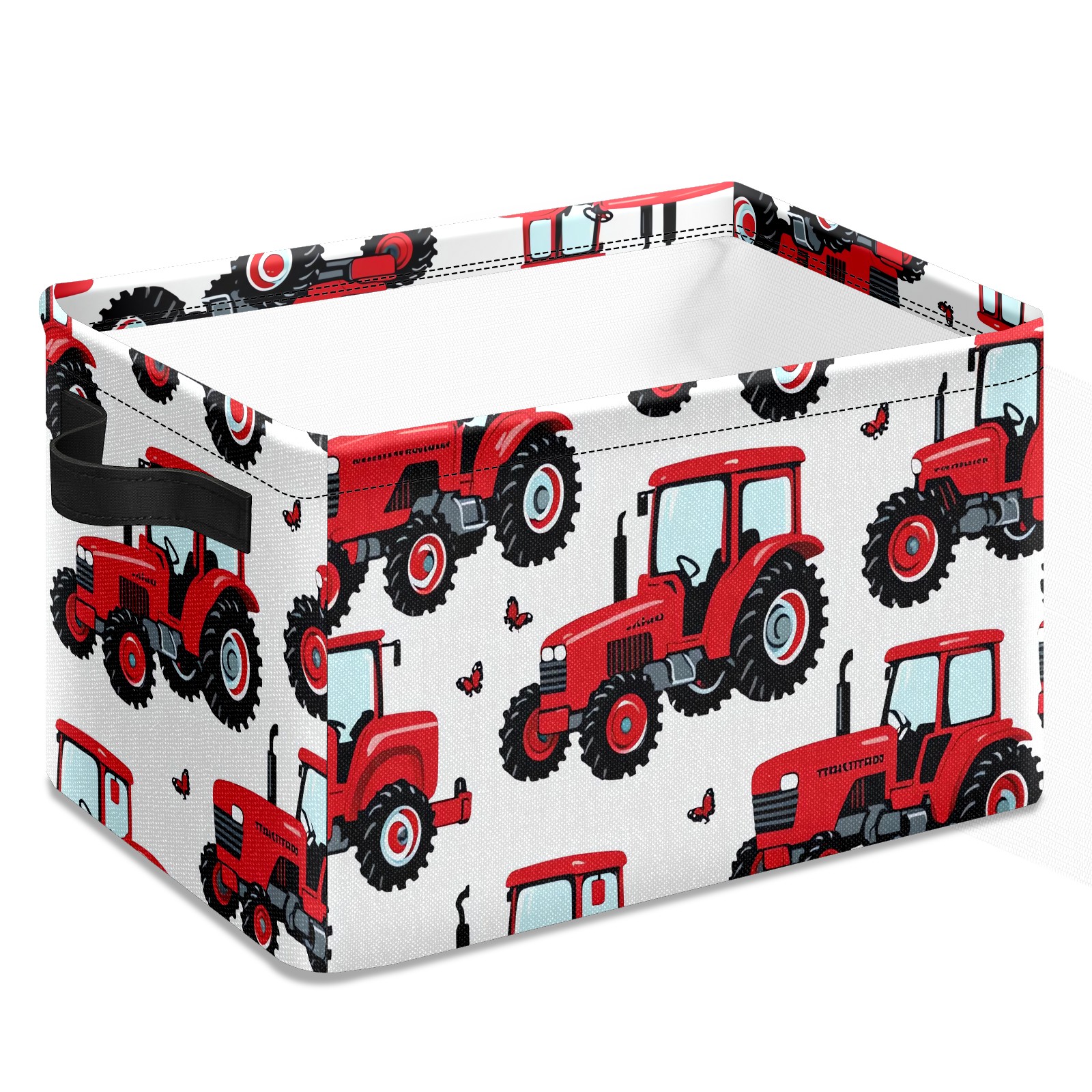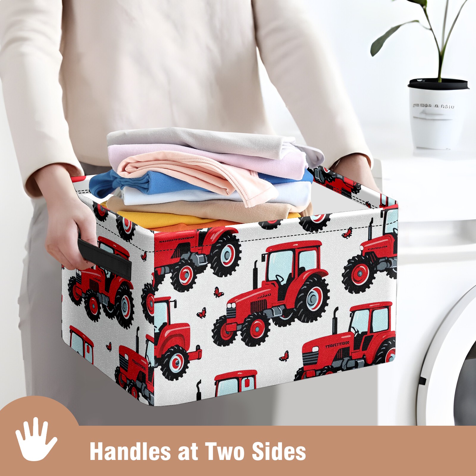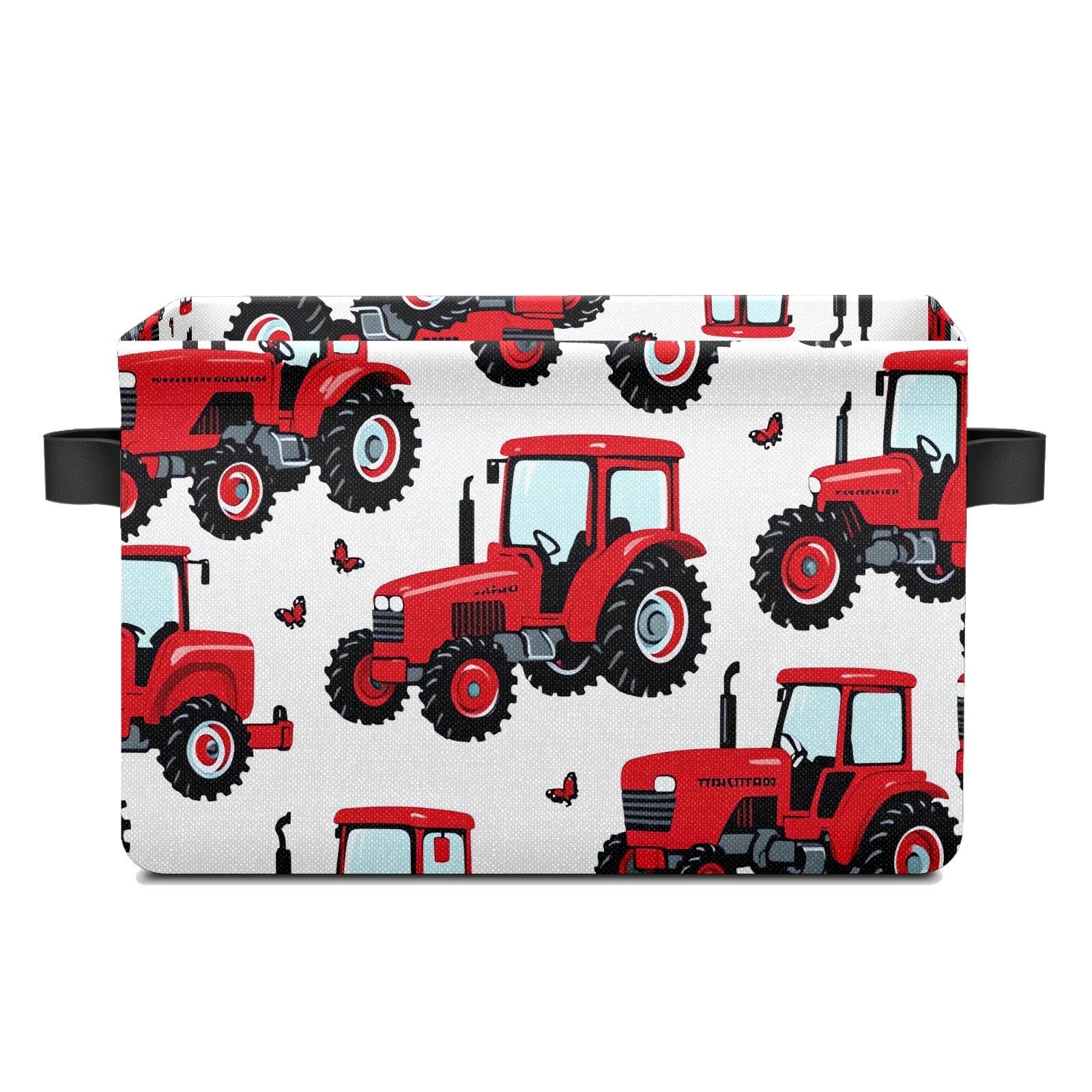 Foldable and Stackable Fabric Storage Basket for Home Organization with Handles, Decorative Closet Bins for Shelves and Laundry Storage( Tractor)