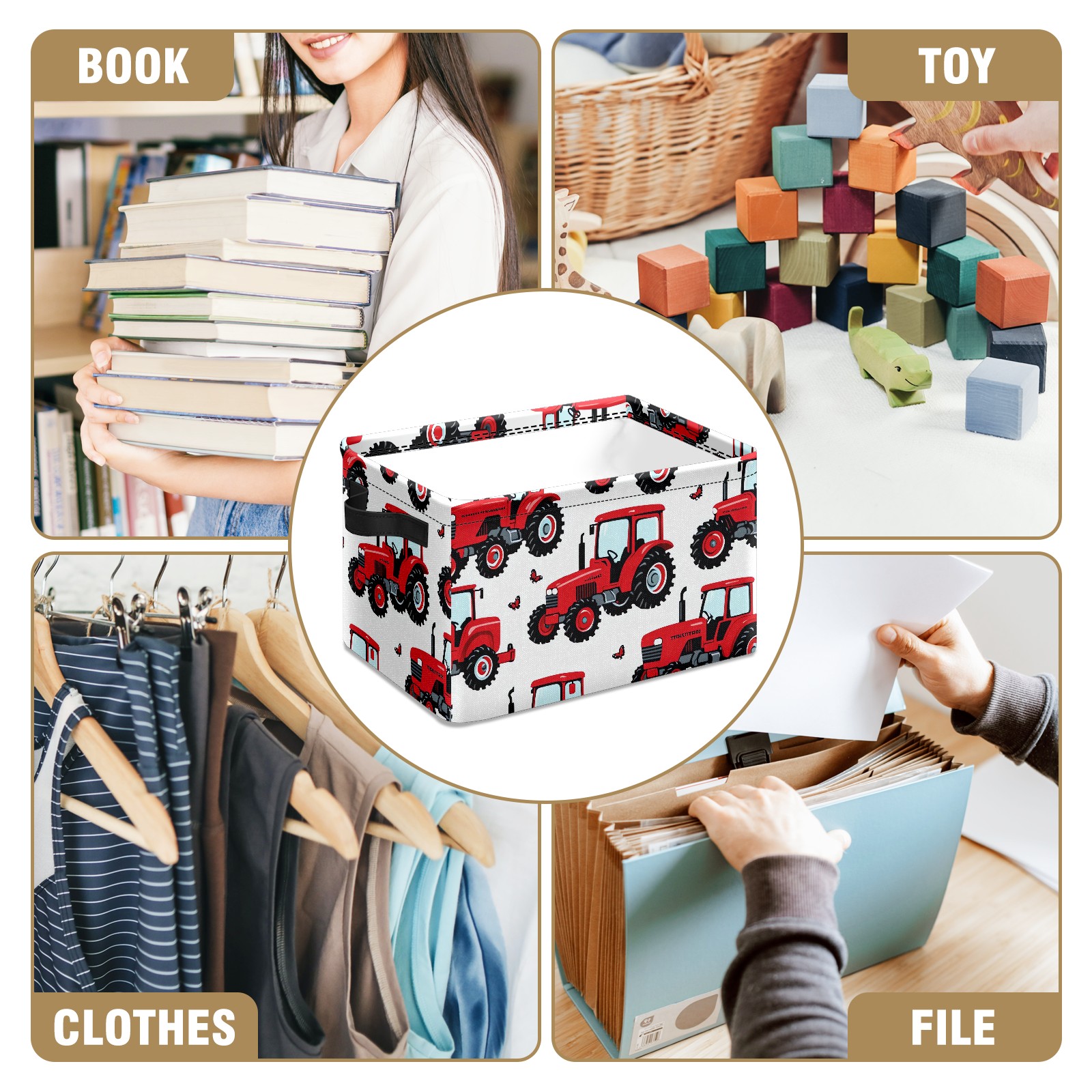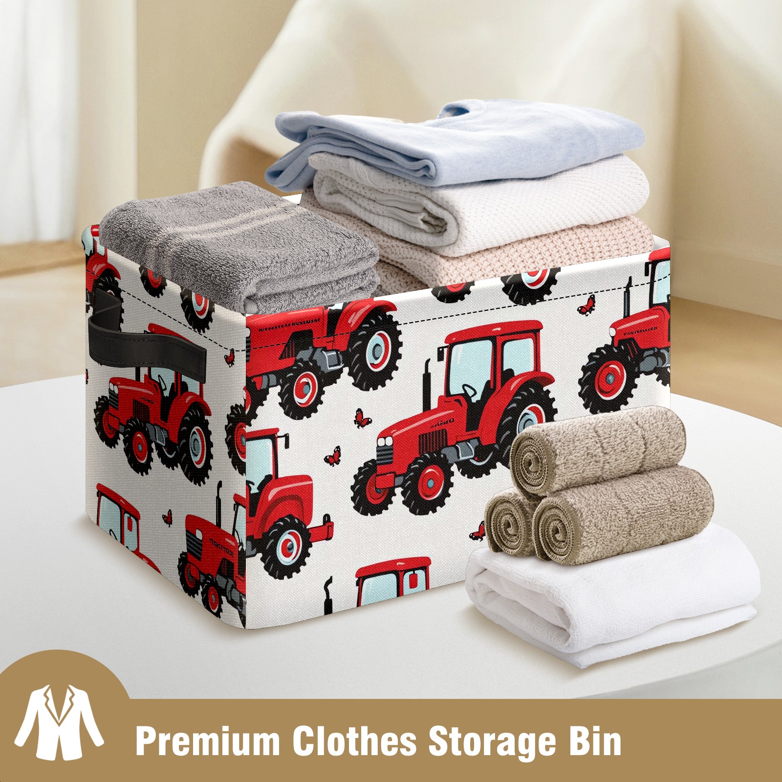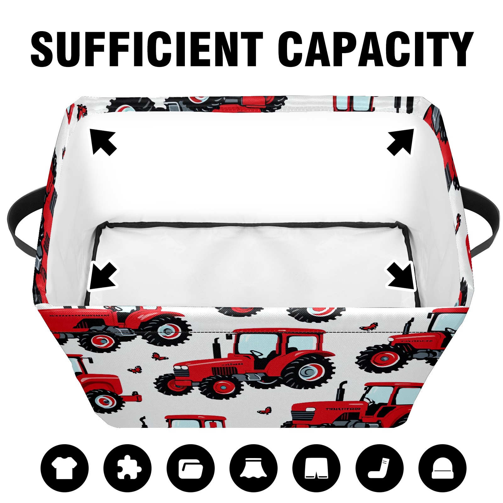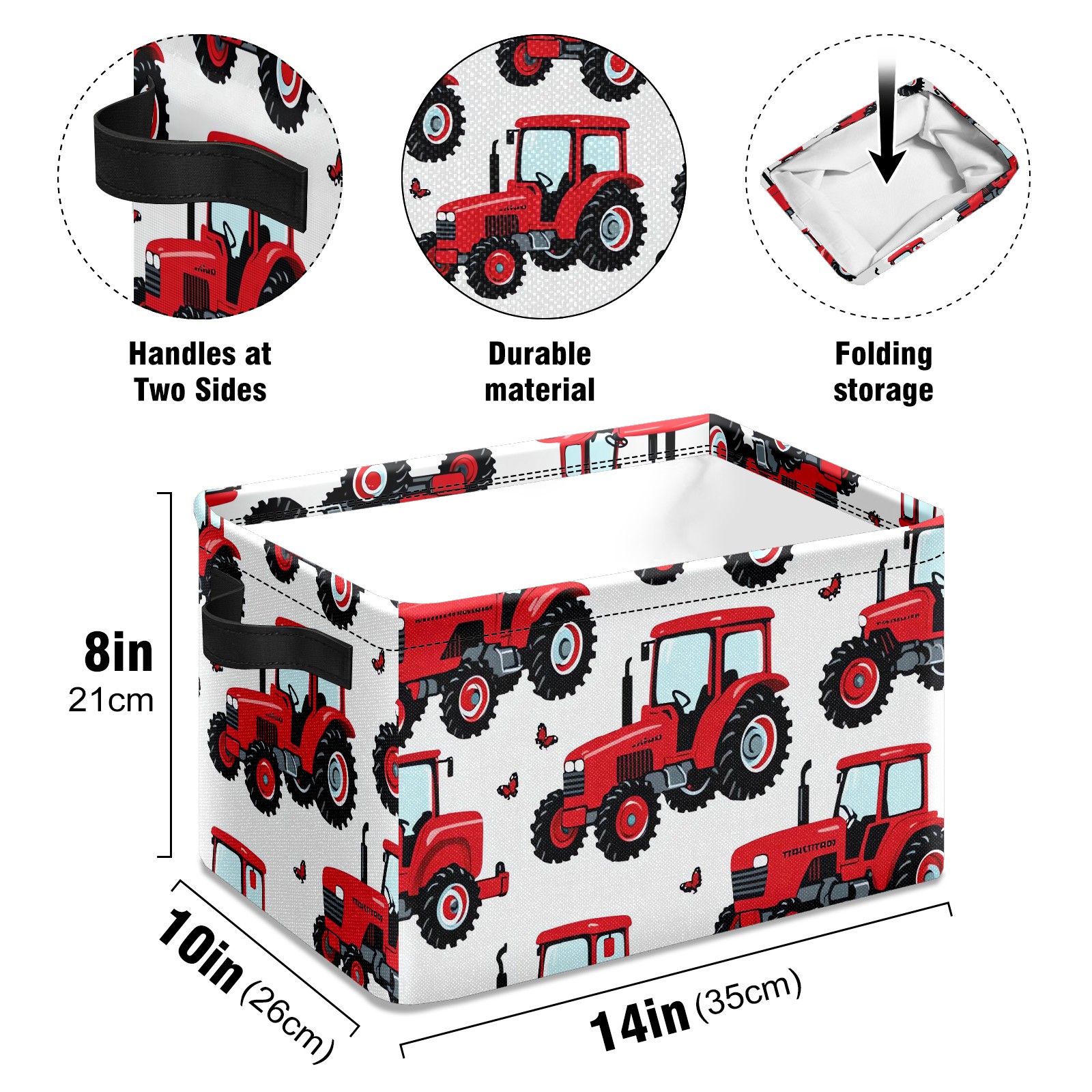 Foldable and Stackable Fabric Storage Basket for Home Organization with Handles, Decorative Closet Bins for Shelves and Laundry Storage( Tractor)