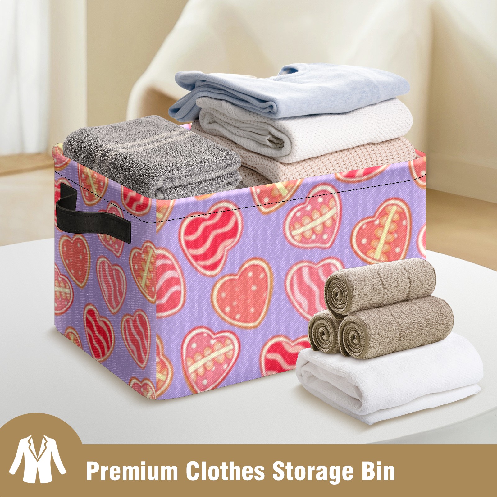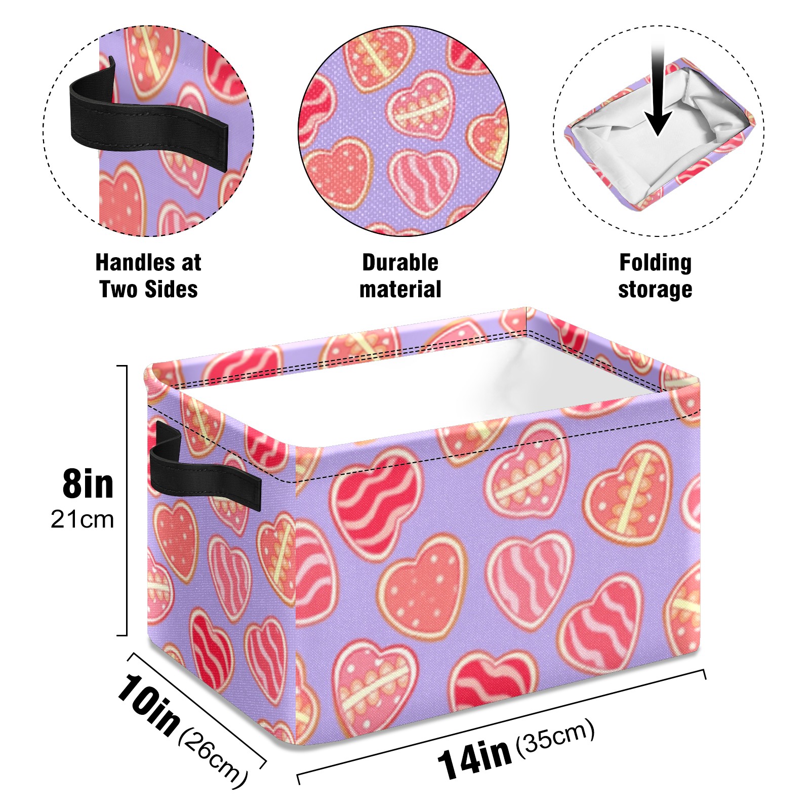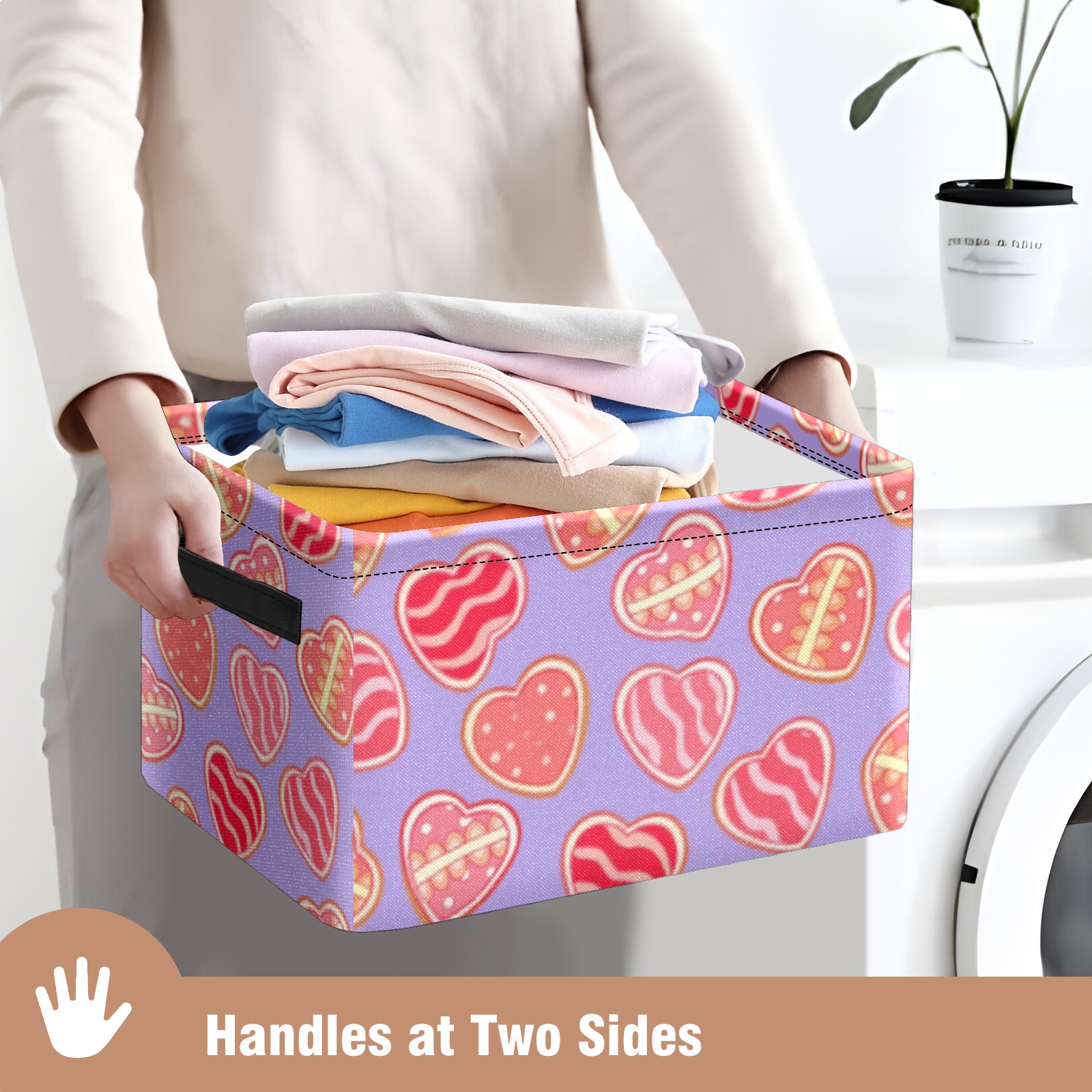 Foldable and Stackable Fabric Storage Basket for Home Organization with Handles, Decorative Closet Bins for Shelves and Laundry Storage( Sweet Hearts)