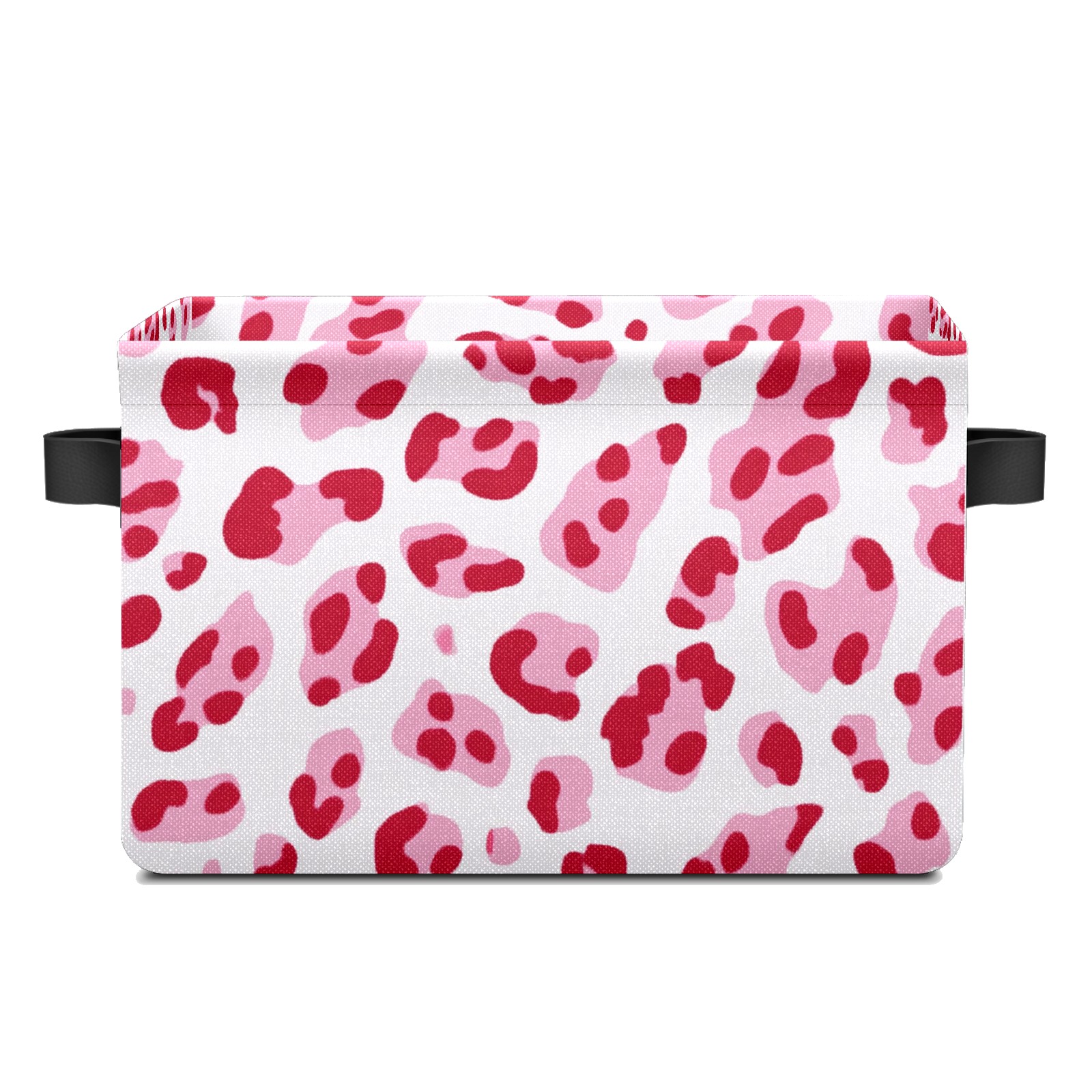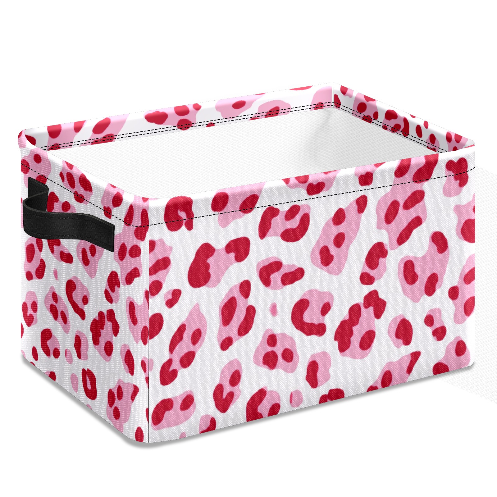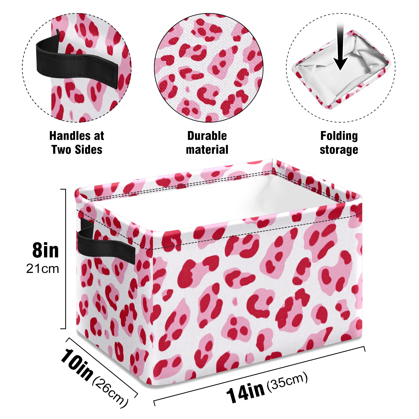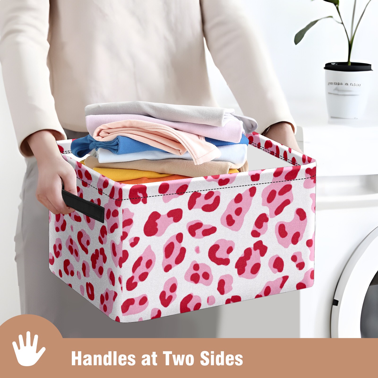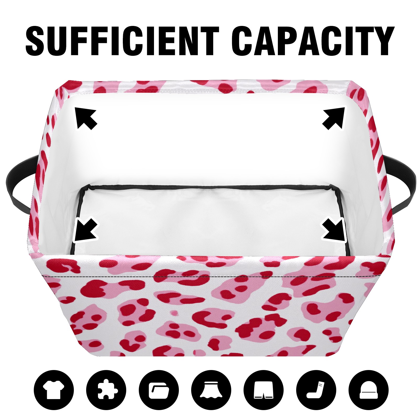 Foldable and Stackable Fabric Storage Basket for Home Organization with Handles, Decorative Closet Bins for Shelves and Laundry Storage( Pink Leopard)