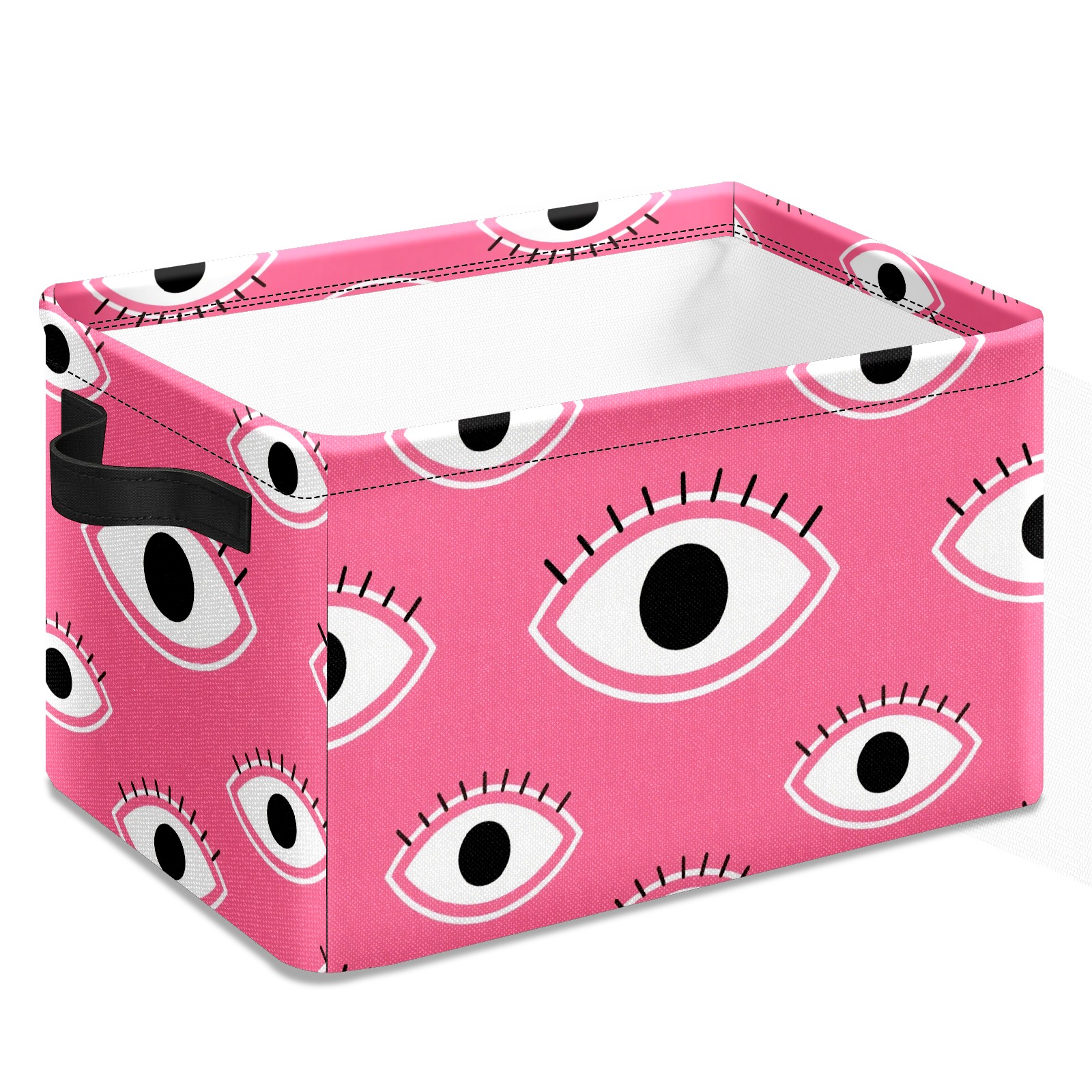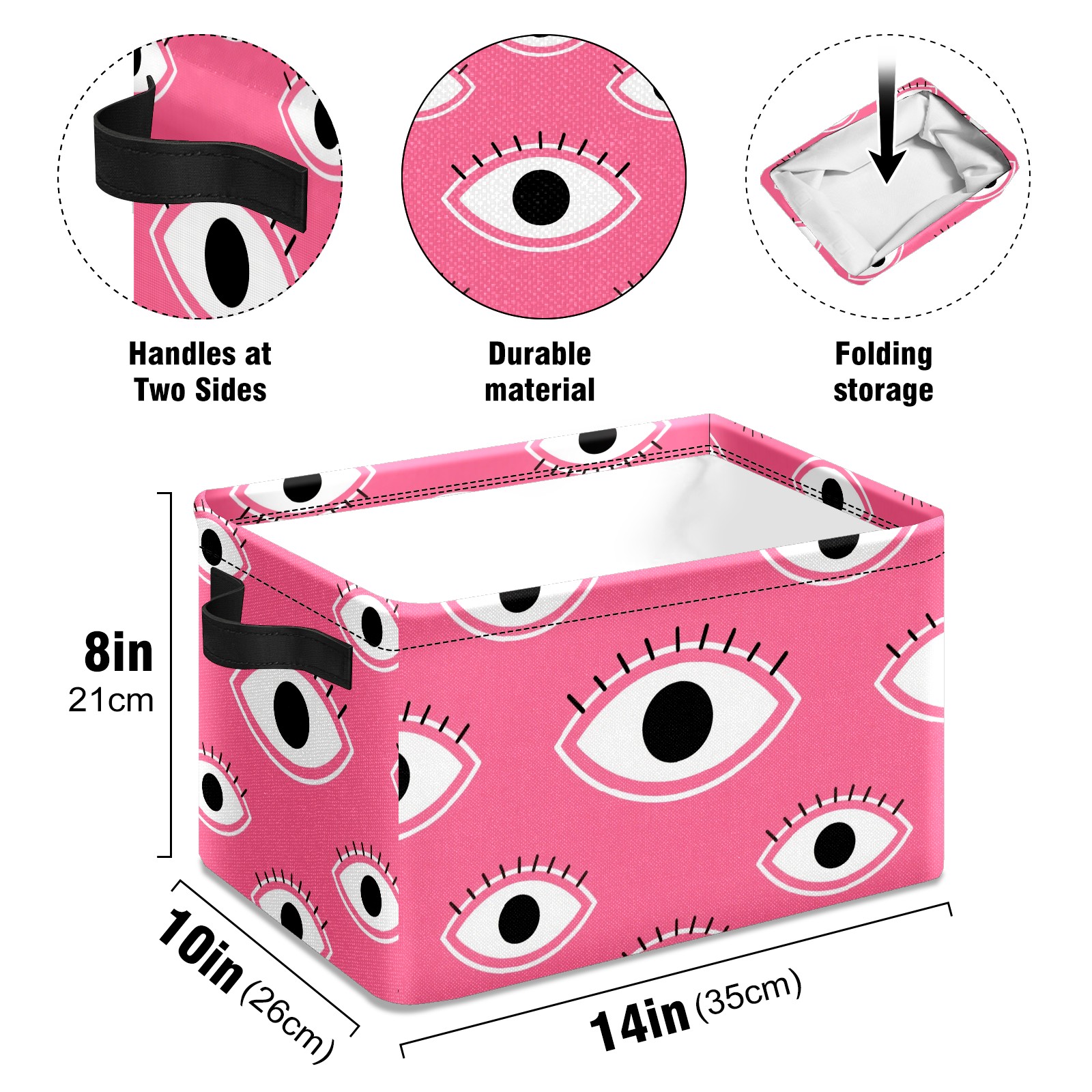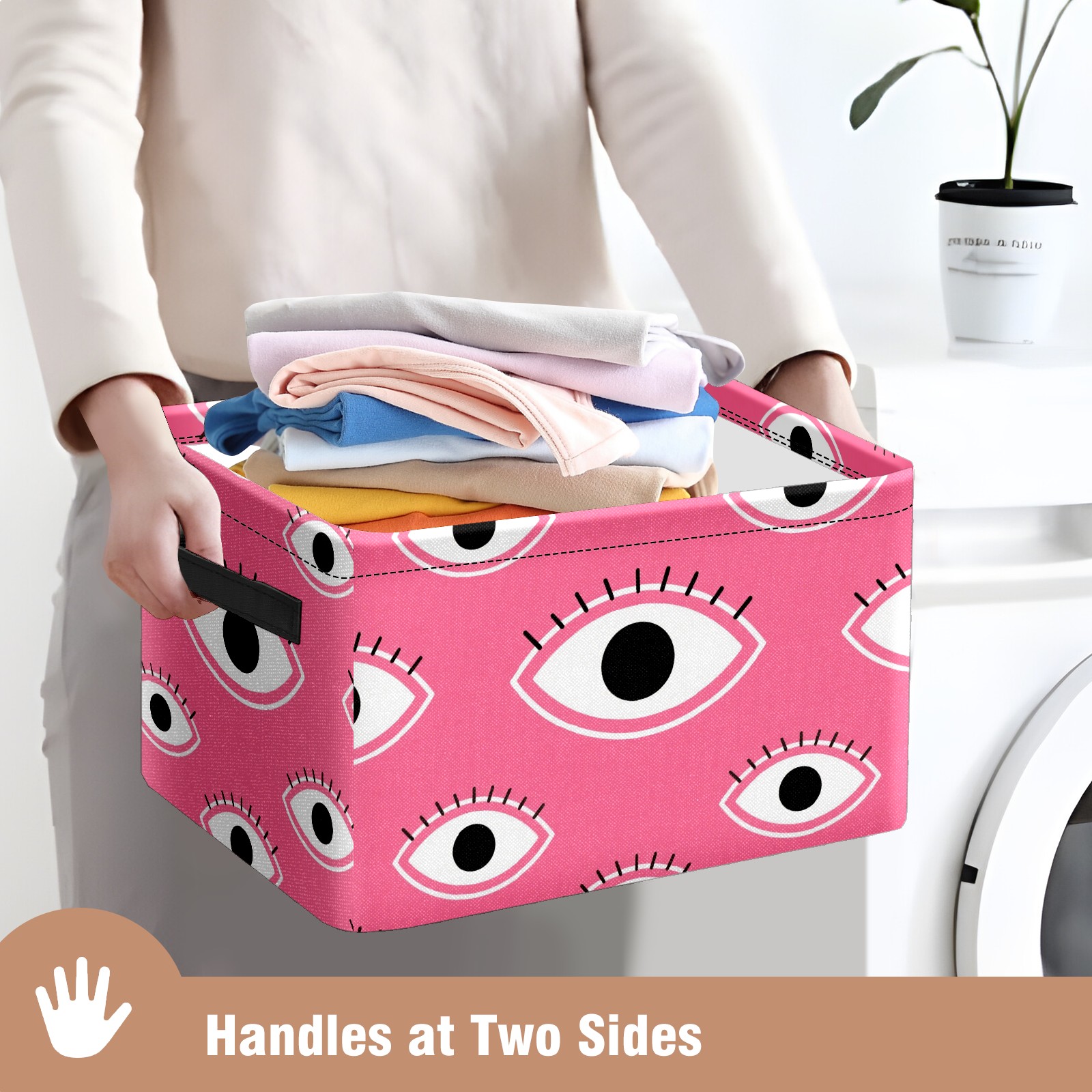 Foldable and Stackable Fabric Storage Basket for Home Organization with Handles, Decorative Closet Bins for Shelves and Laundry Storage( Pink Eyes)