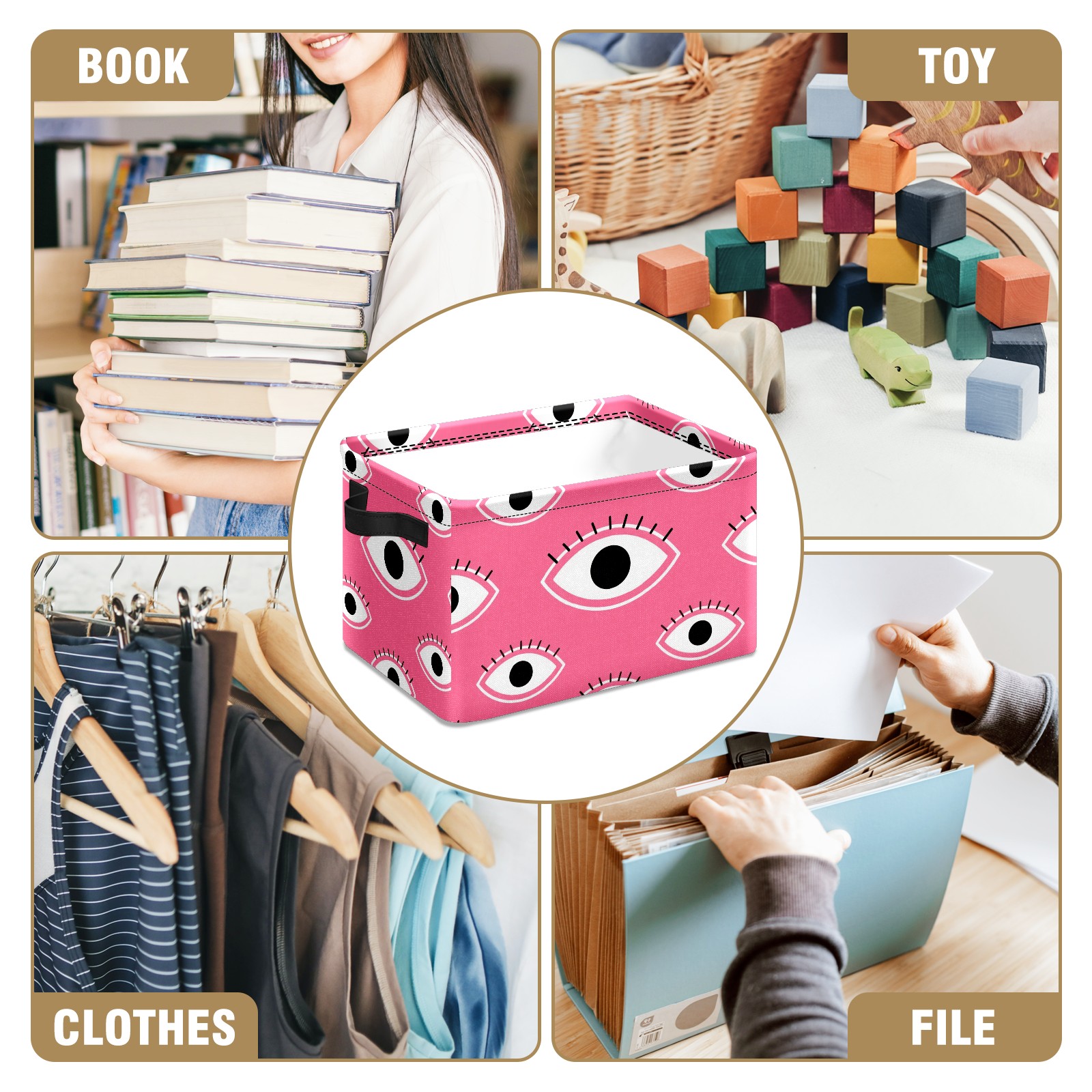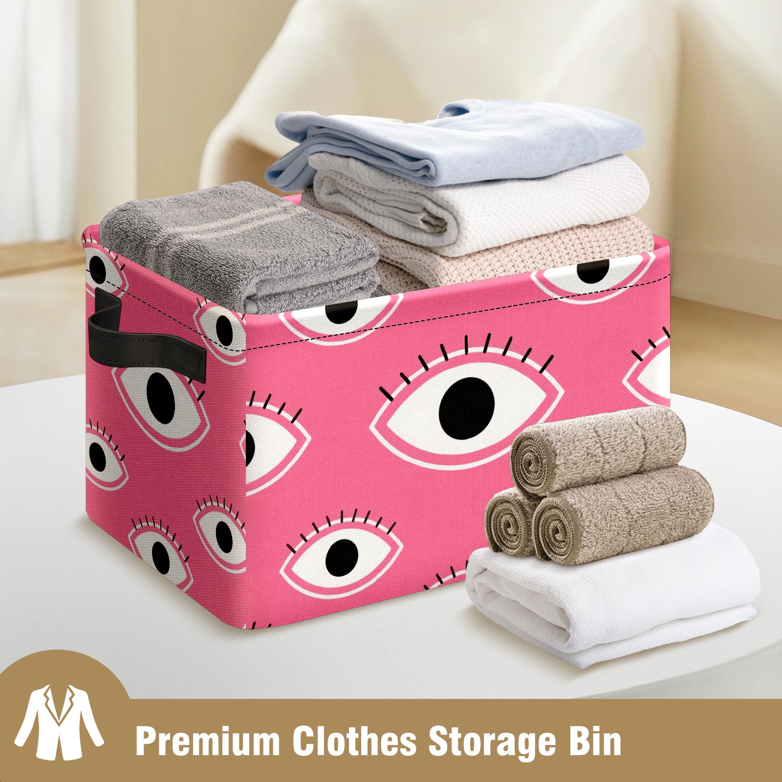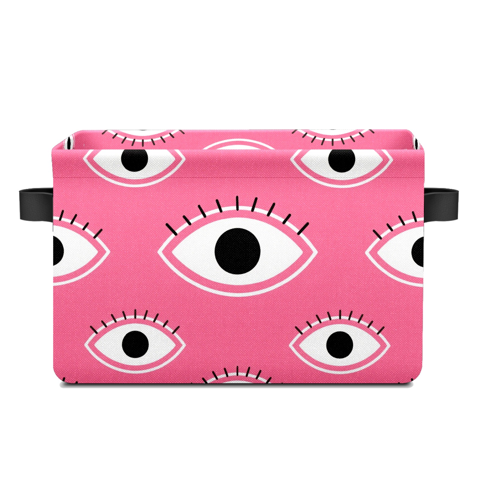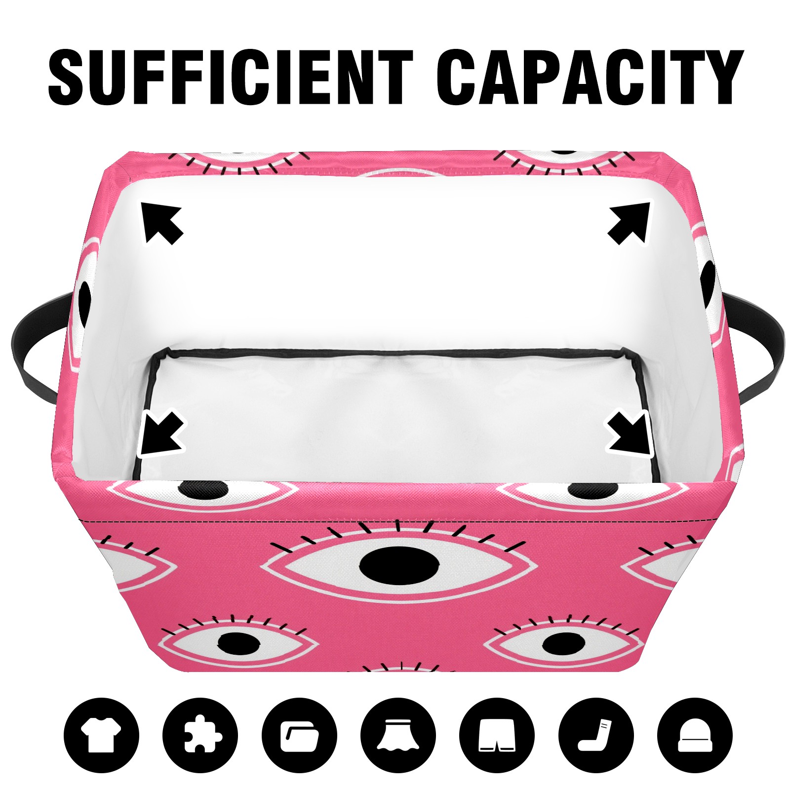 Foldable and Stackable Fabric Storage Basket for Home Organization with Handles, Decorative Closet Bins for Shelves and Laundry Storage( Pink Eyes)