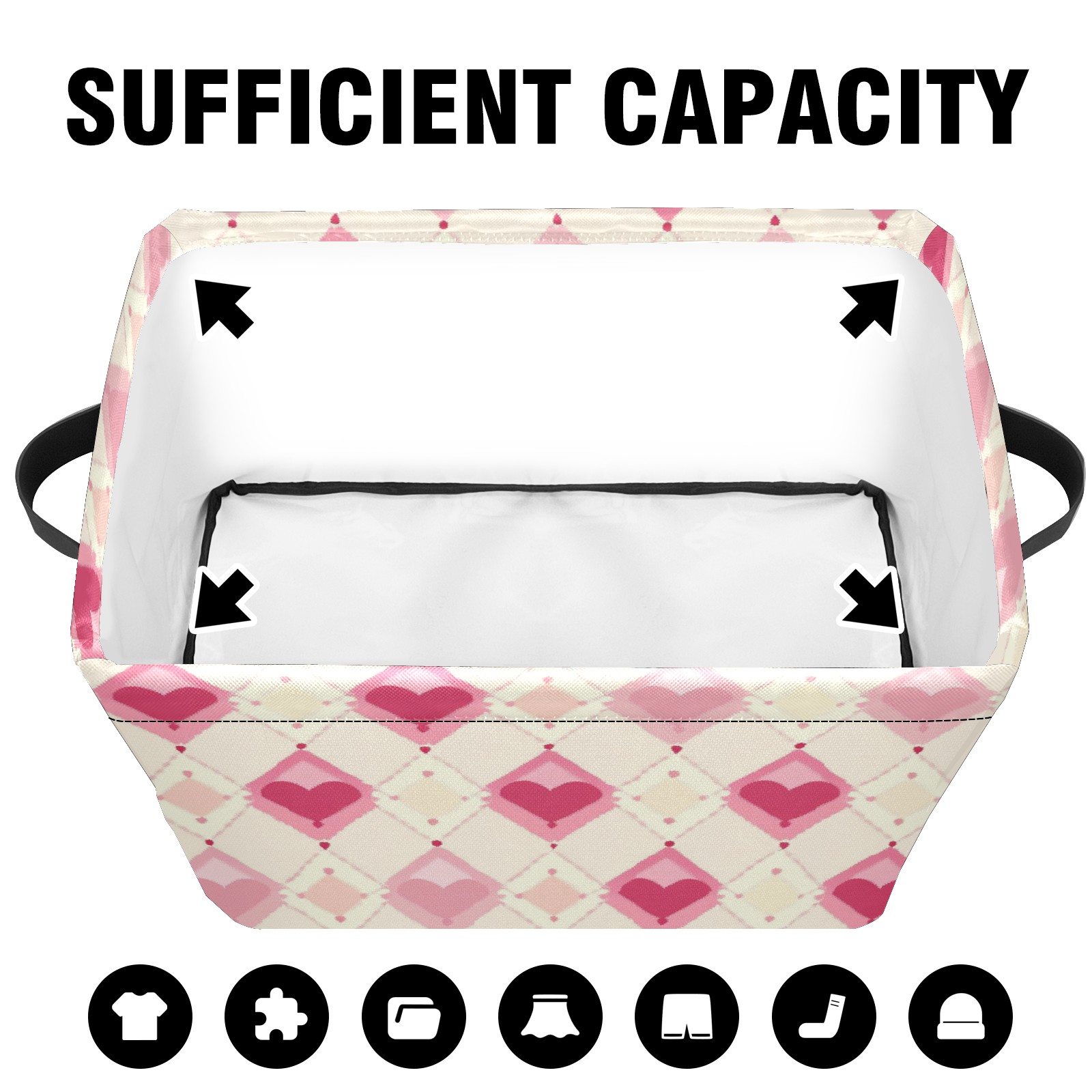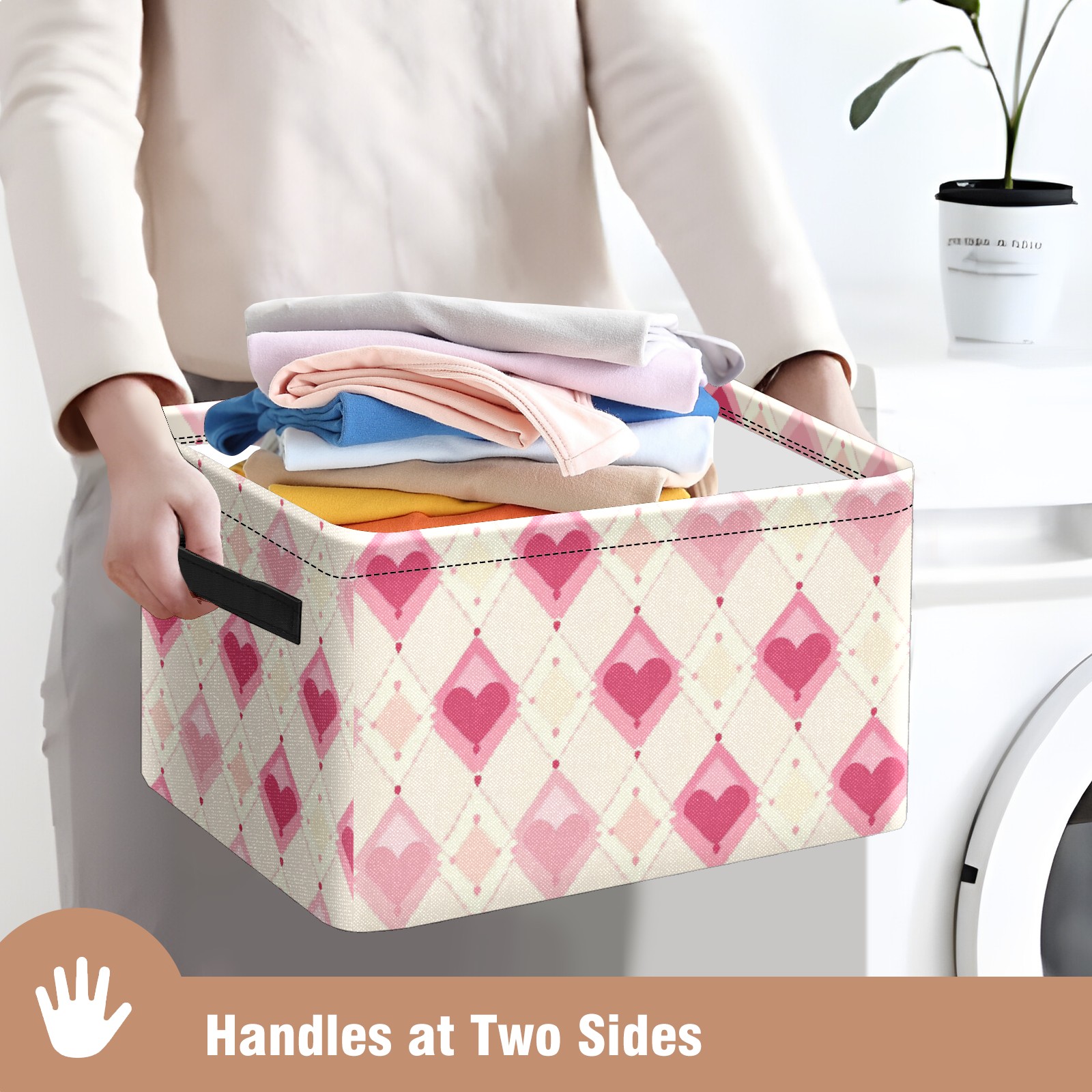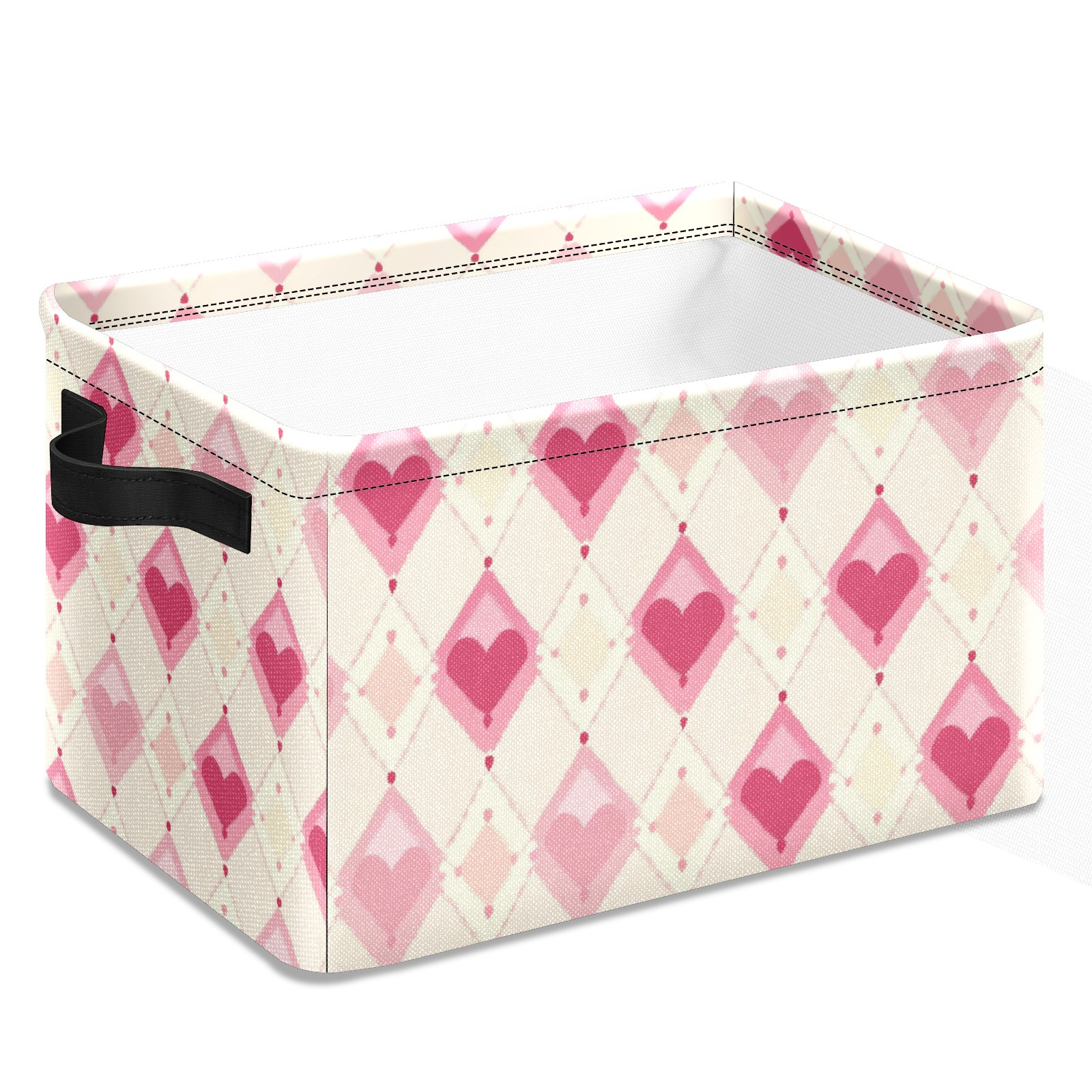 Foldable and Stackable Fabric Storage Basket for Home Organization with Handles, Decorative Closet Bins for Shelves and Laundry Storage( Pink And White Diamond)