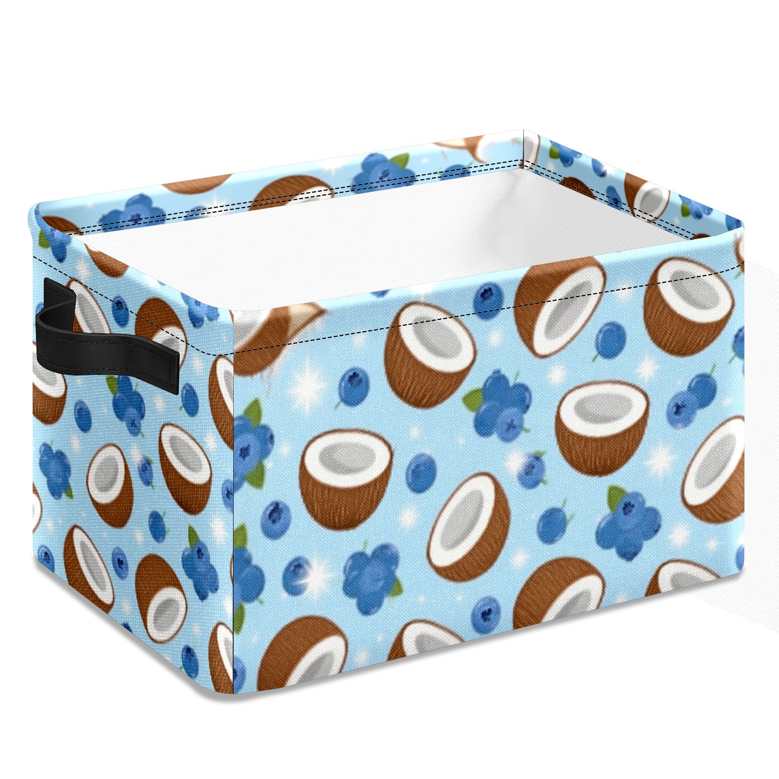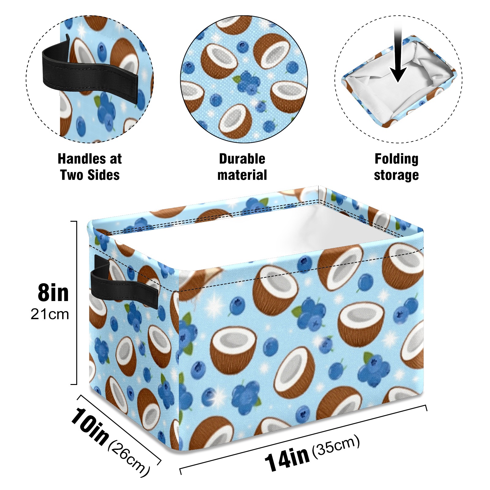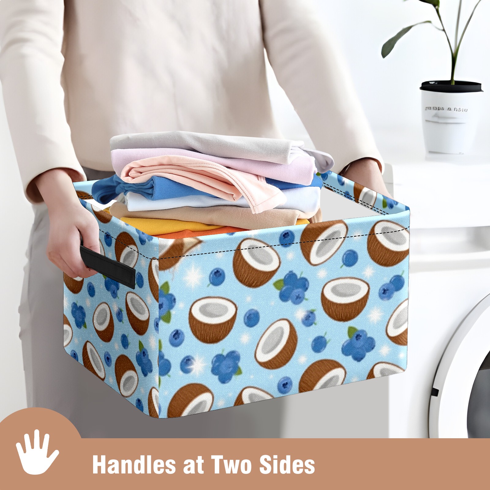 Foldable and Stackable Fabric Storage Basket for Home Organization with Handles, Decorative Closet Bins for Shelves and Laundry Storage( Coconut Blueberry)