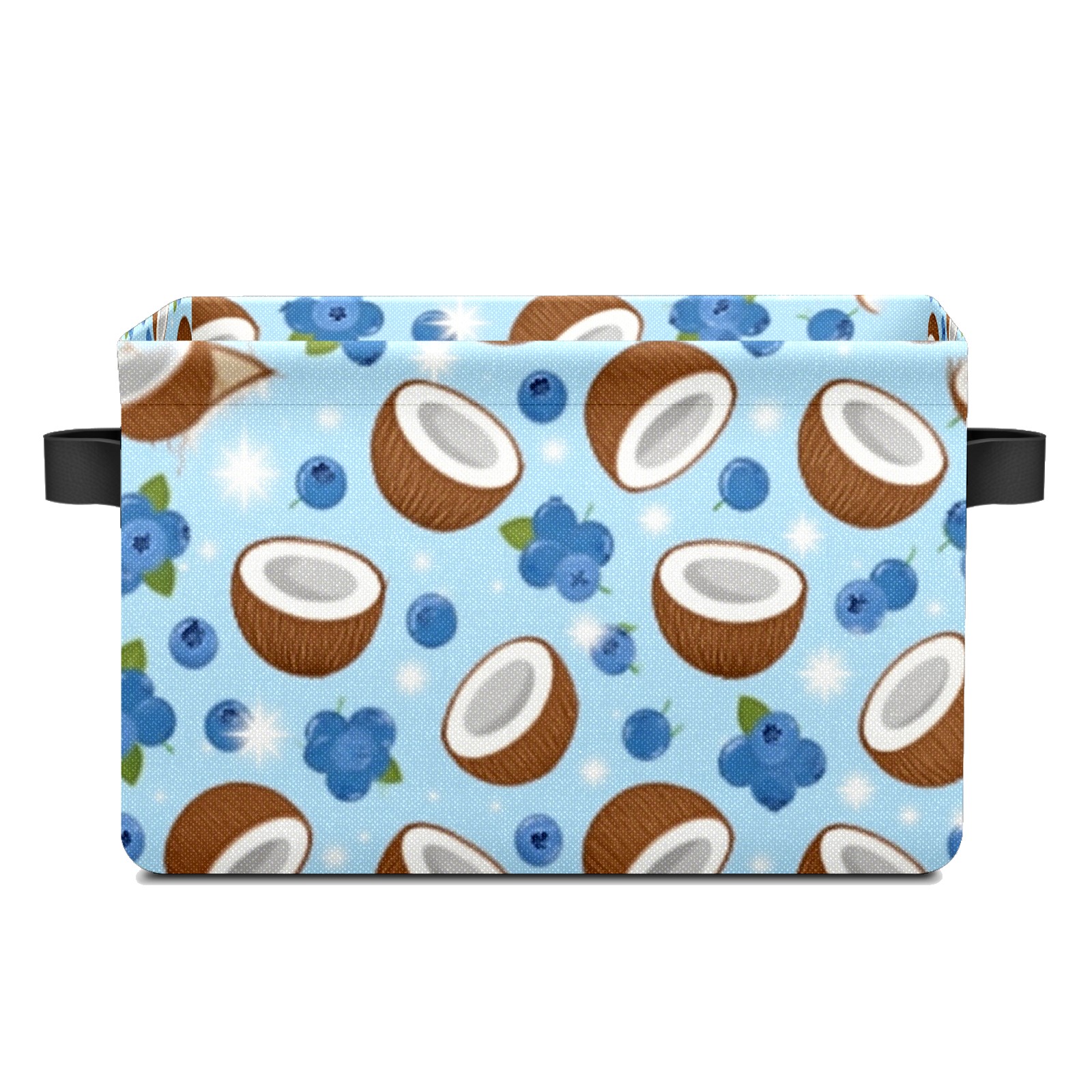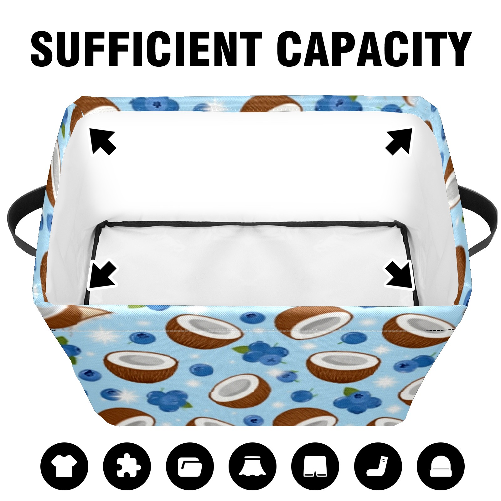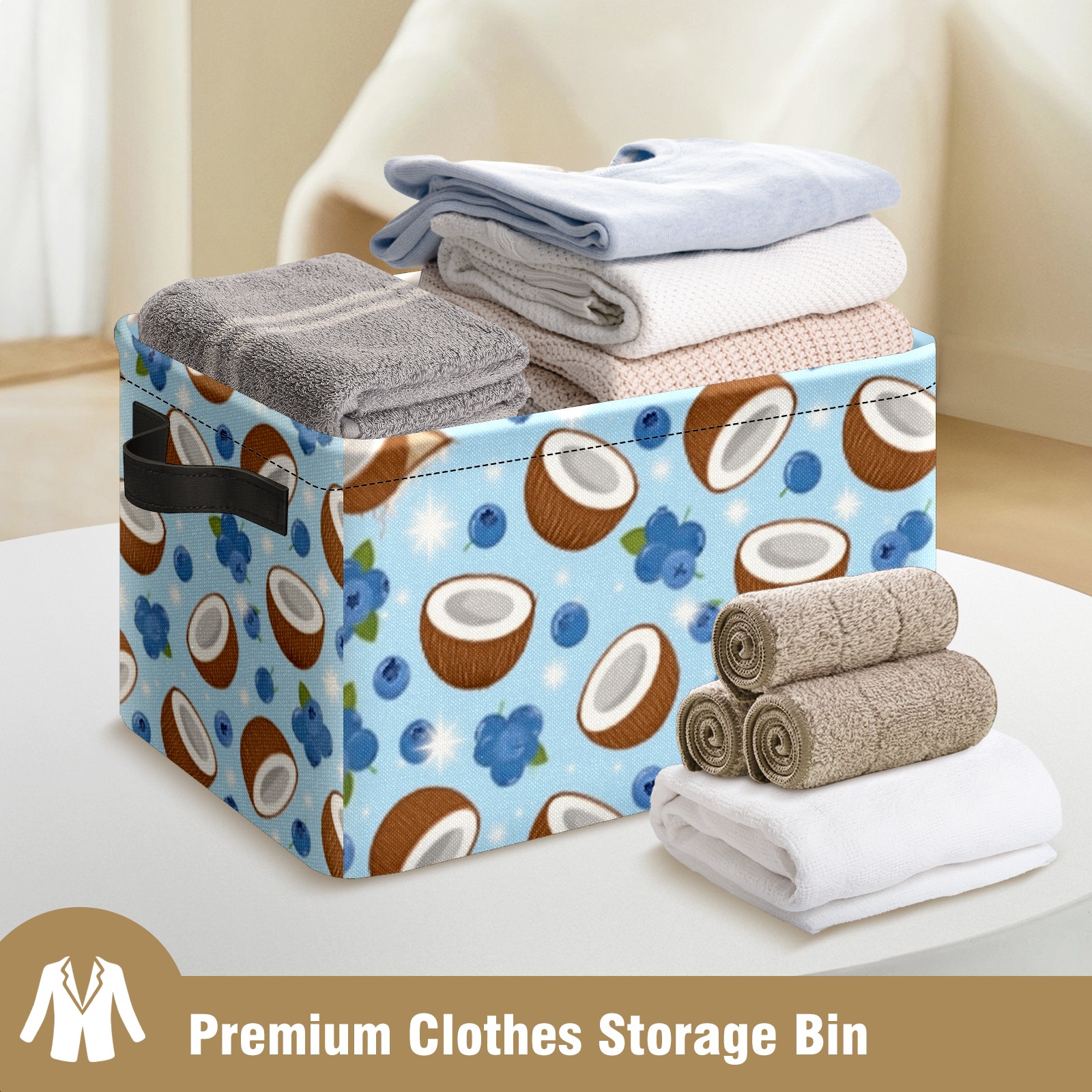 Foldable and Stackable Fabric Storage Basket for Home Organization with Handles, Decorative Closet Bins for Shelves and Laundry Storage( Coconut Blueberry)