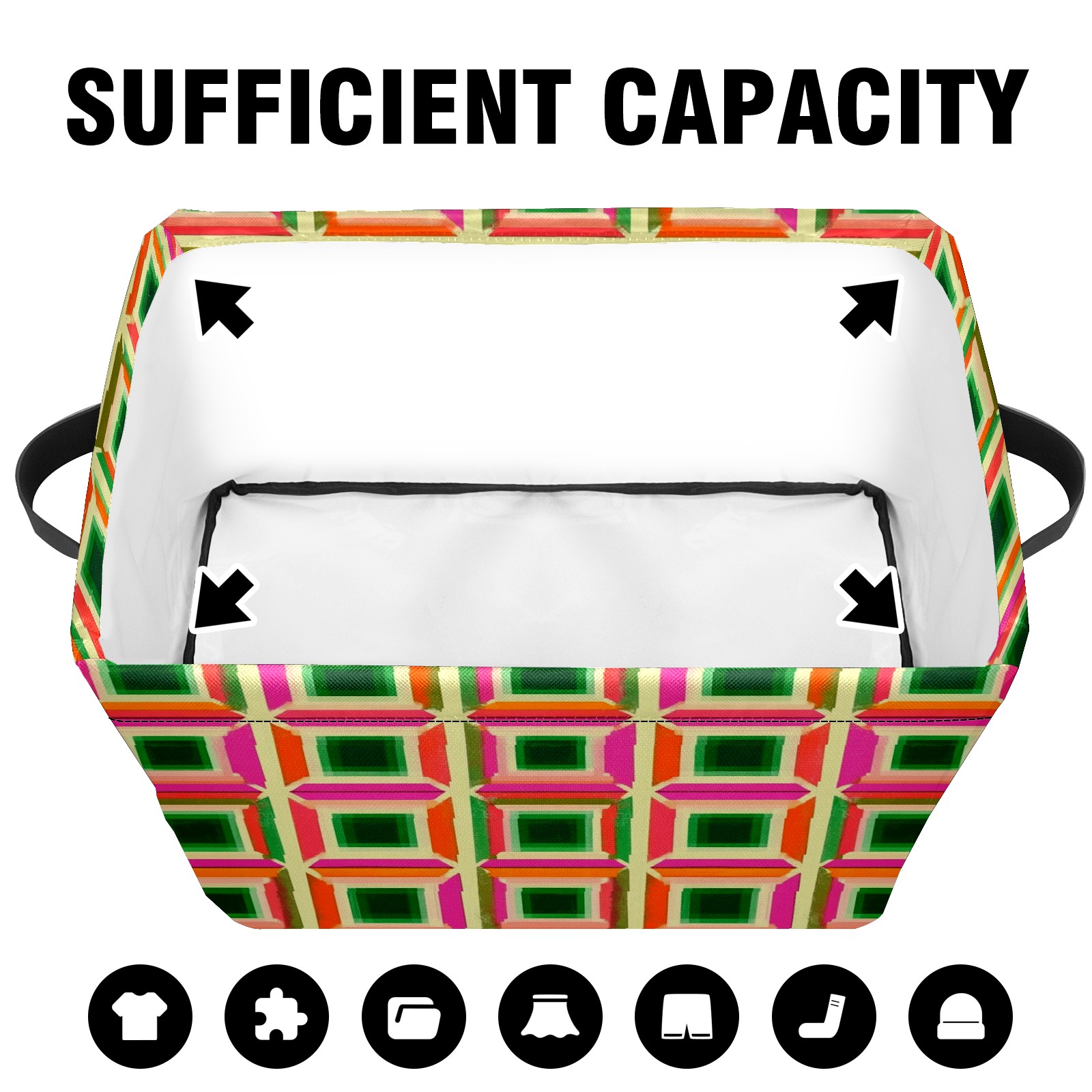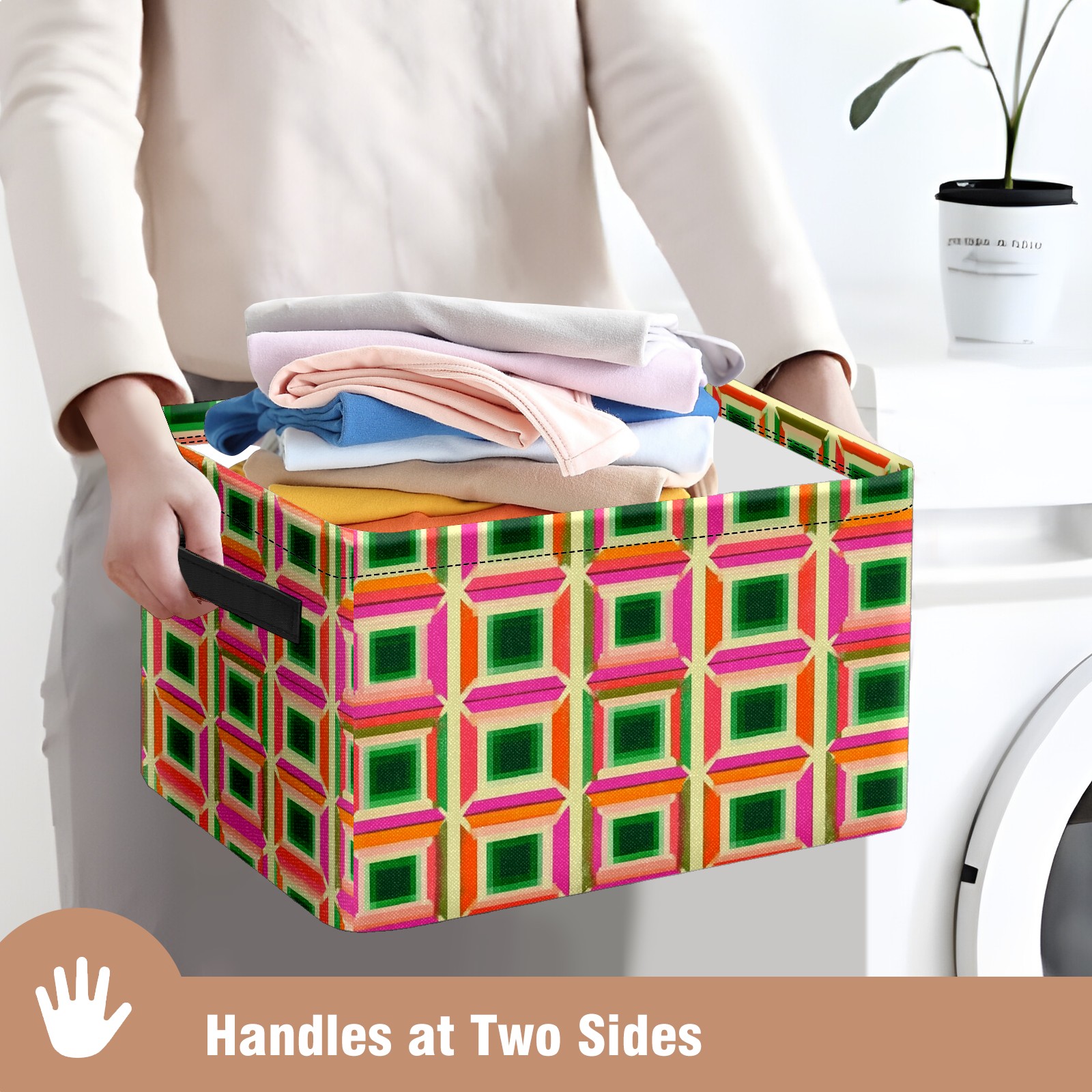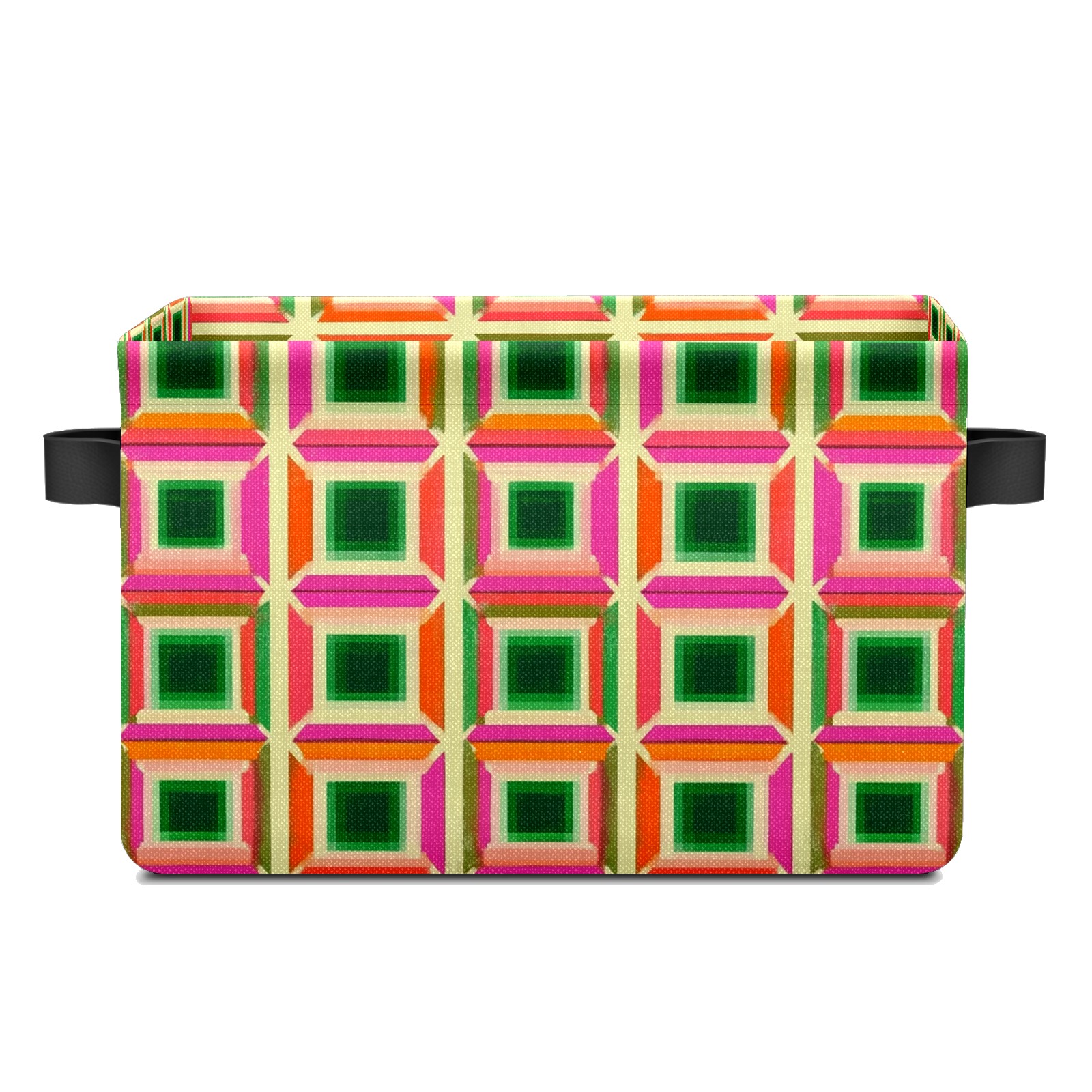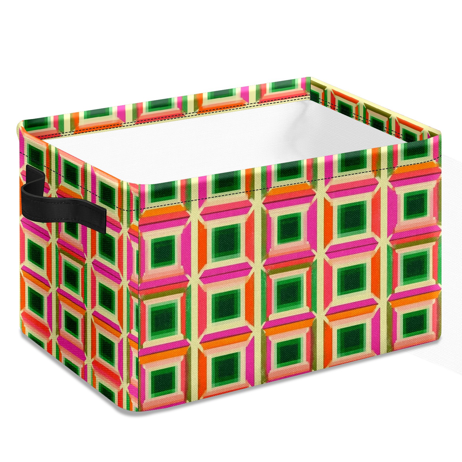 Foldable and Stackable Fabric Storage Basket for Home Organization with Handles, Decorative Closet Bins for Shelves and Laundry Storage( Green Pink And Orange Squares)