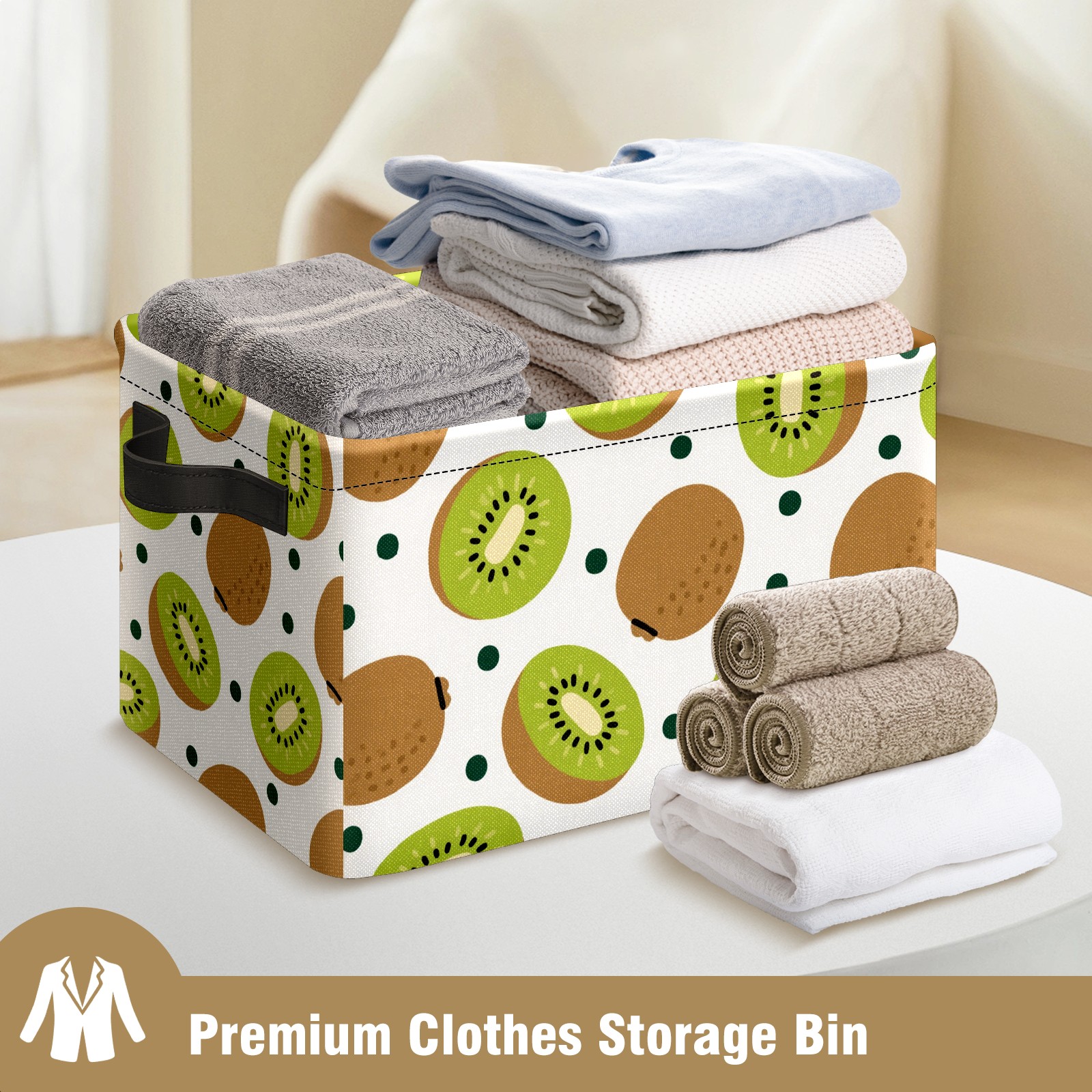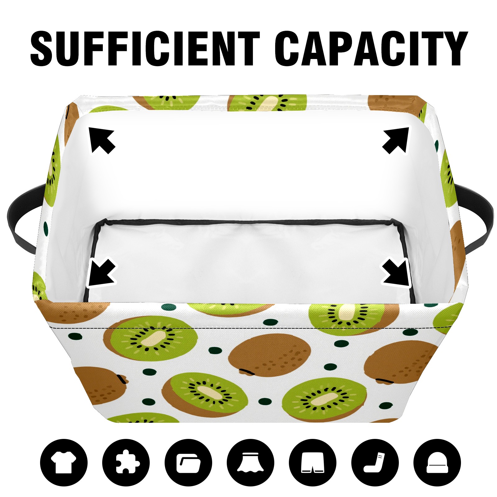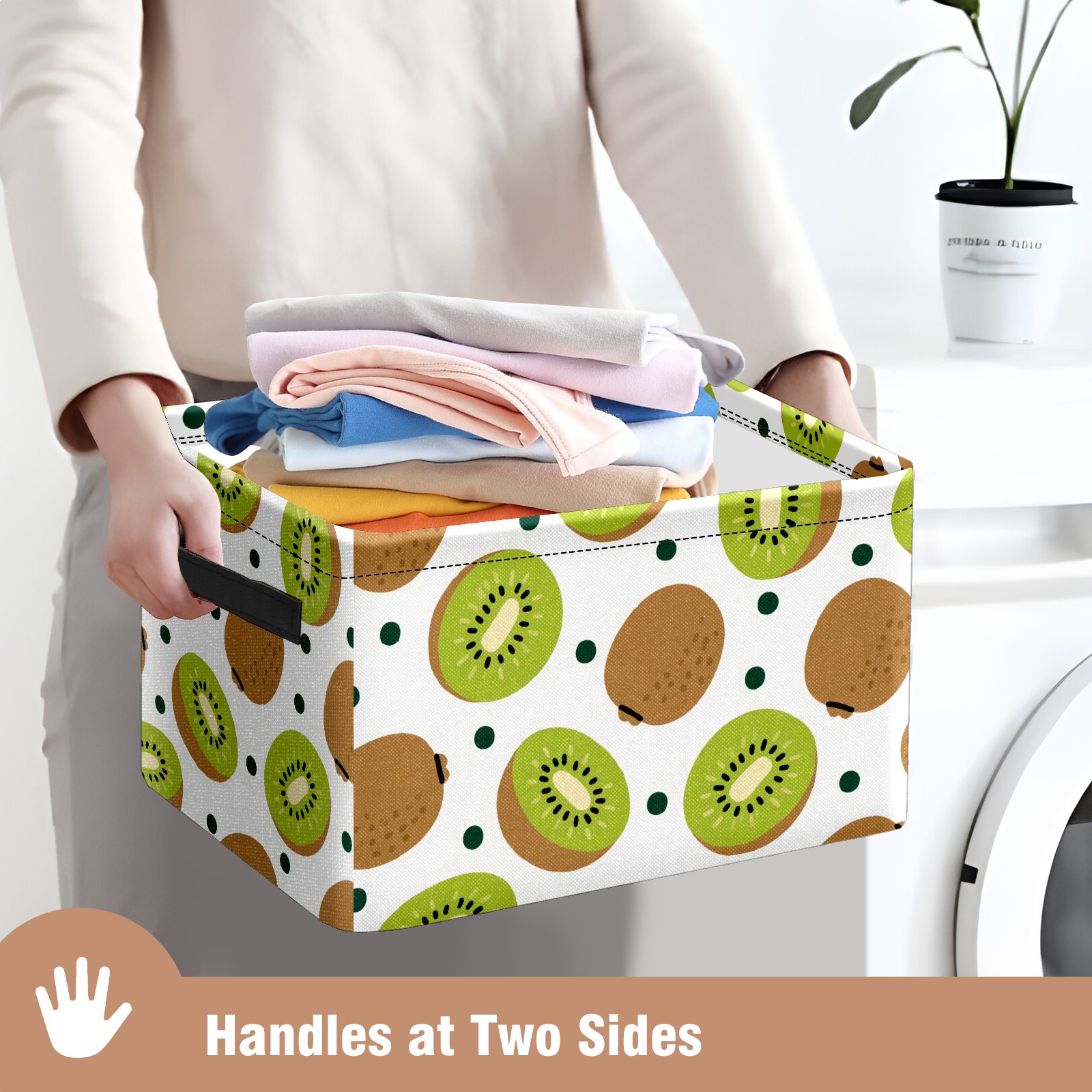 Foldable and Stackable Fabric Storage Basket for Home Organization with Handles, Decorative Closet Bins for Shelves and Laundry Storage( Kiwi)