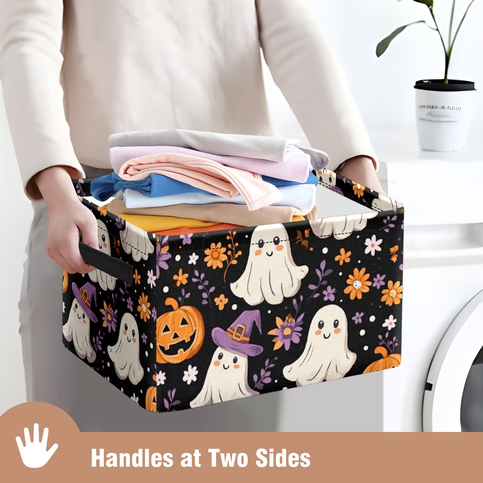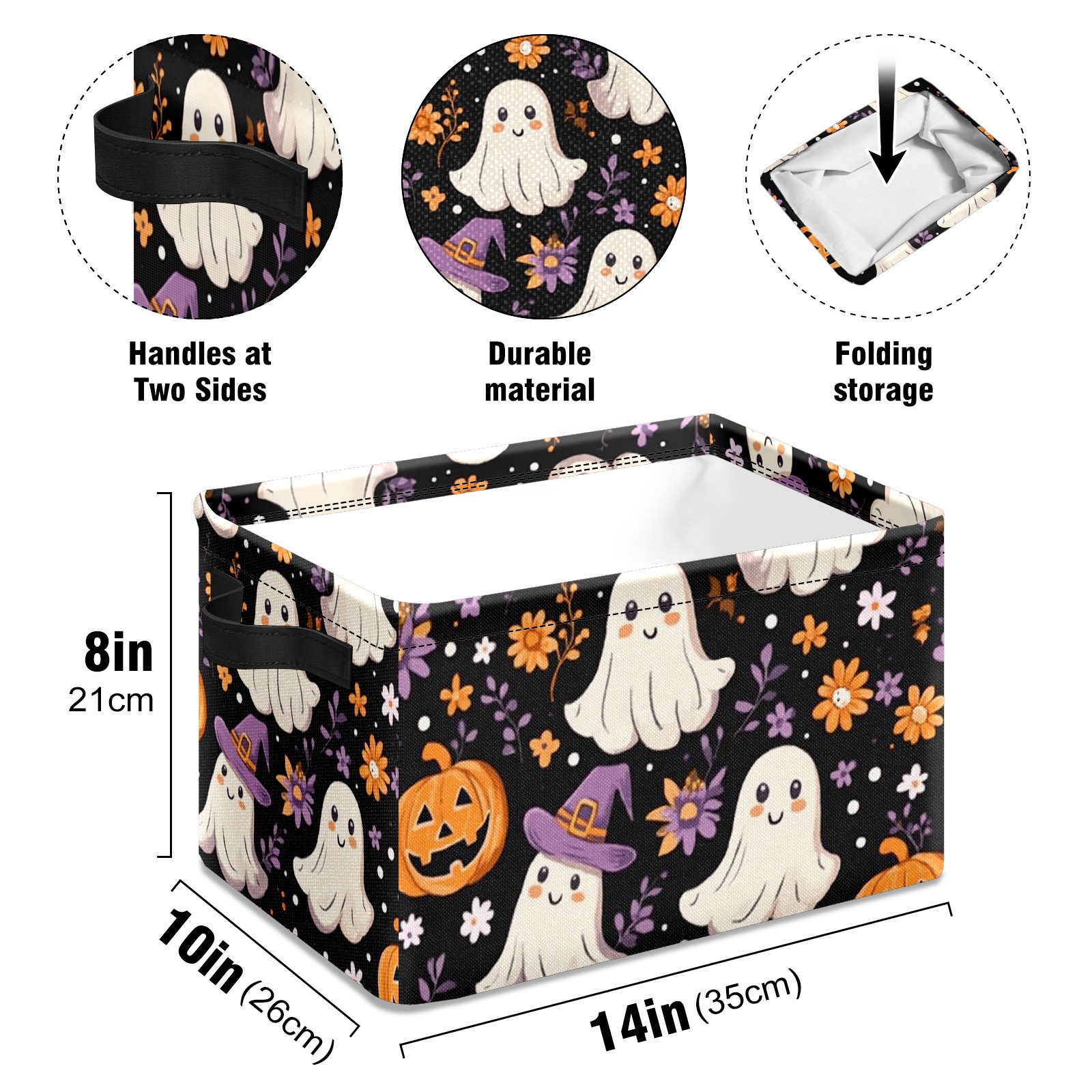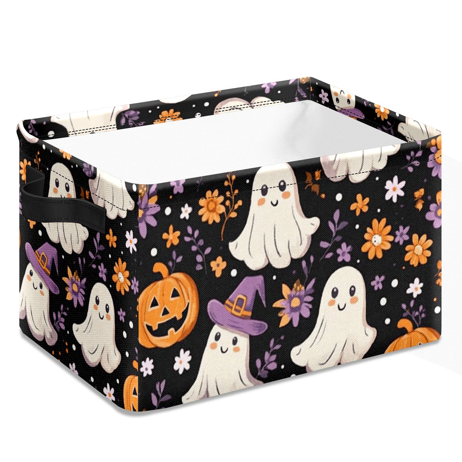 Foldable and Stackable Fabric Storage Basket for Home Organization with Handles, Decorative Closet Bins for Shelves and Laundry Storage( Ghosts And Pumpkins)