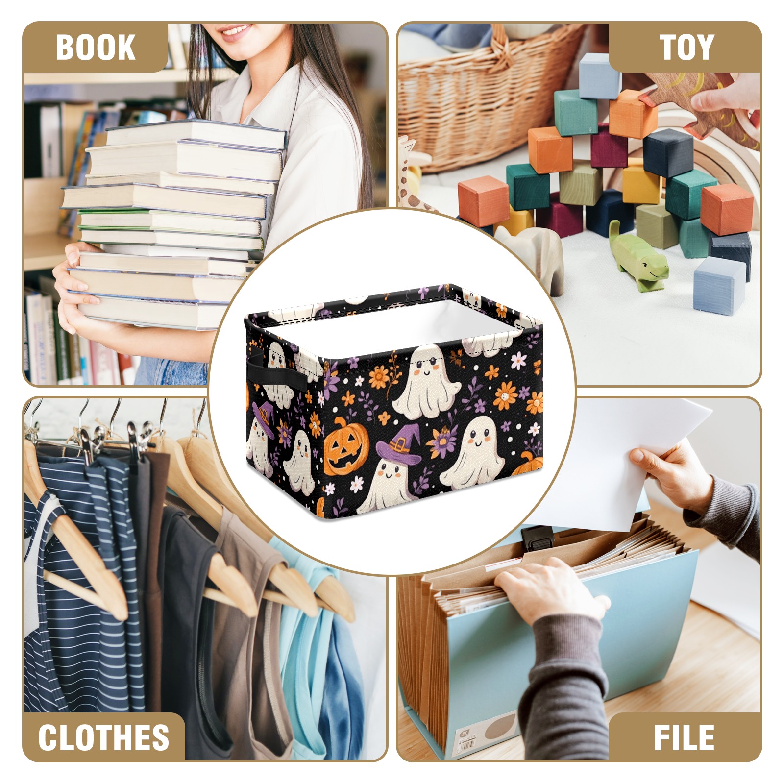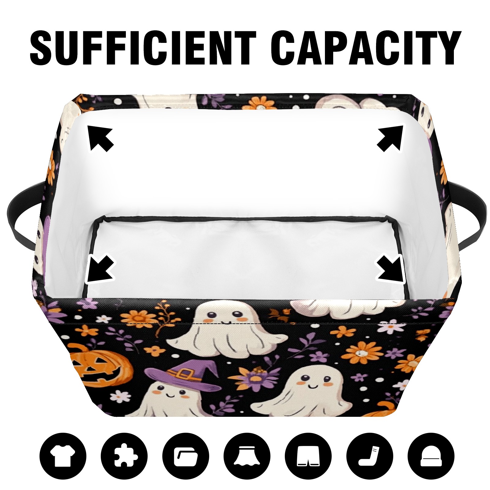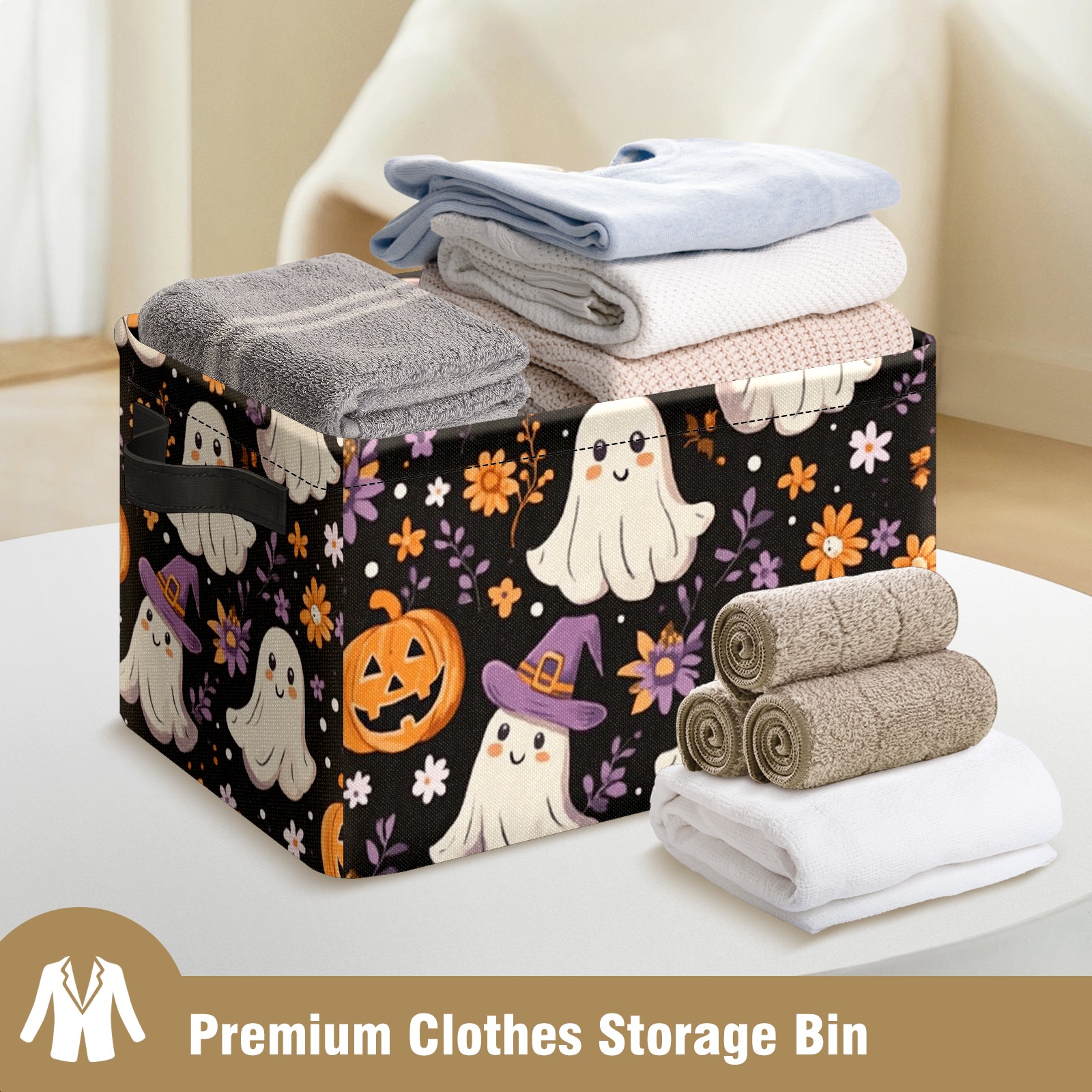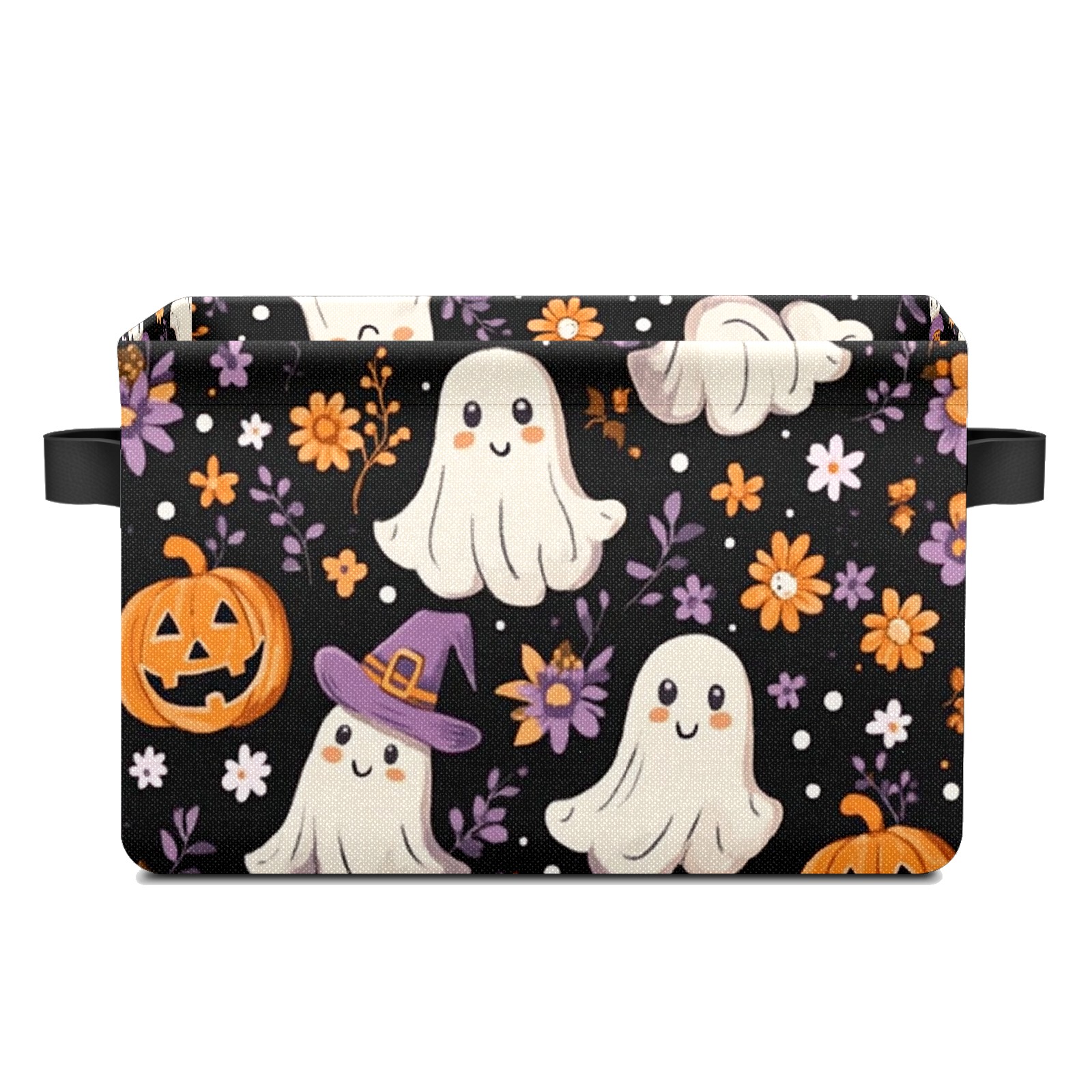 Foldable and Stackable Fabric Storage Basket for Home Organization with Handles, Decorative Closet Bins for Shelves and Laundry Storage( Ghosts And Pumpkins)