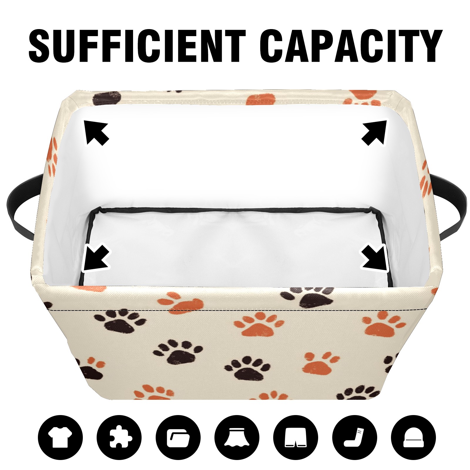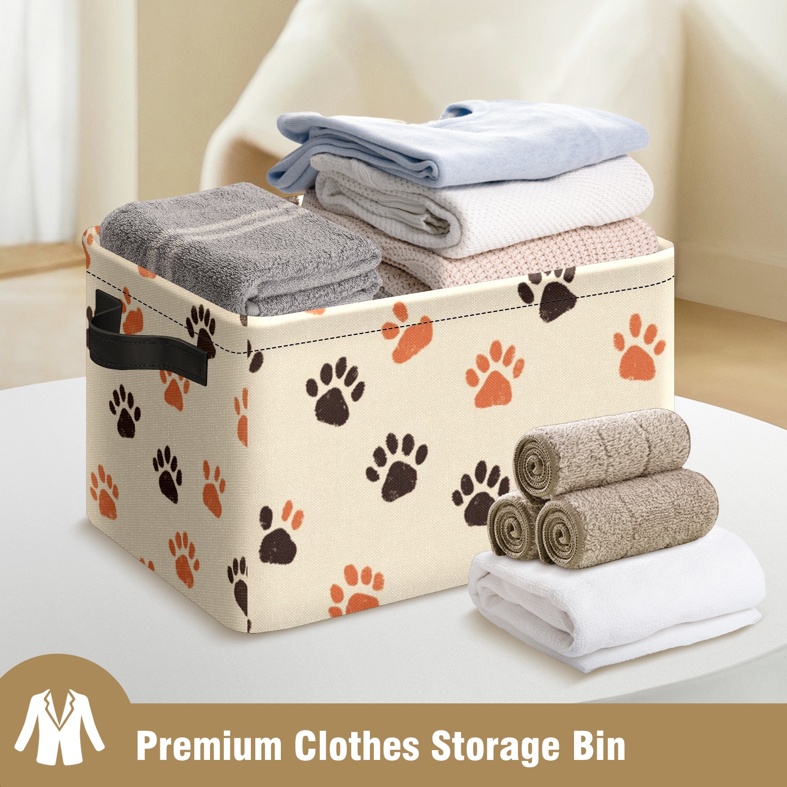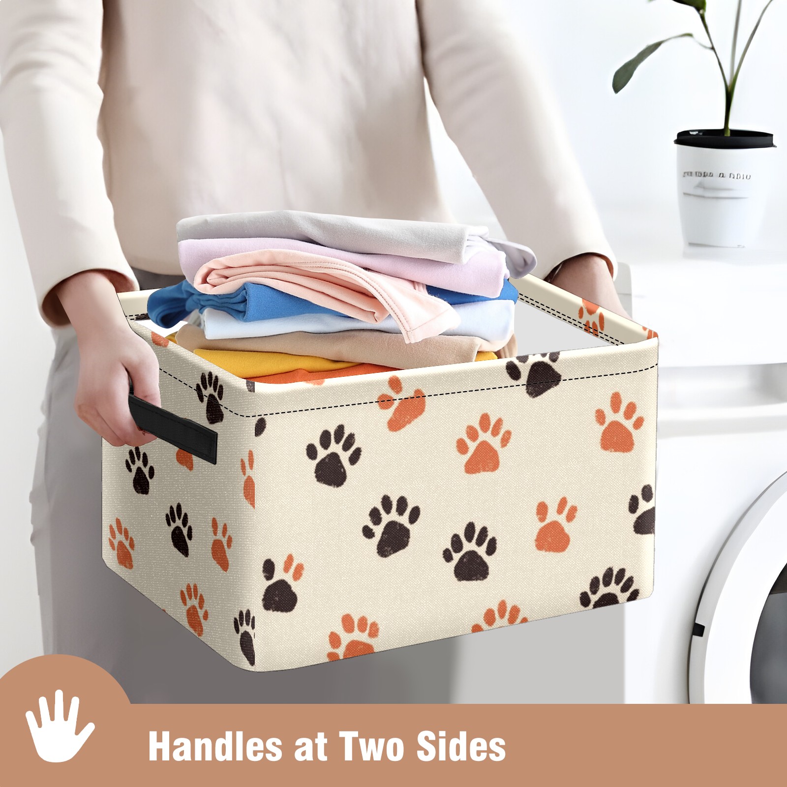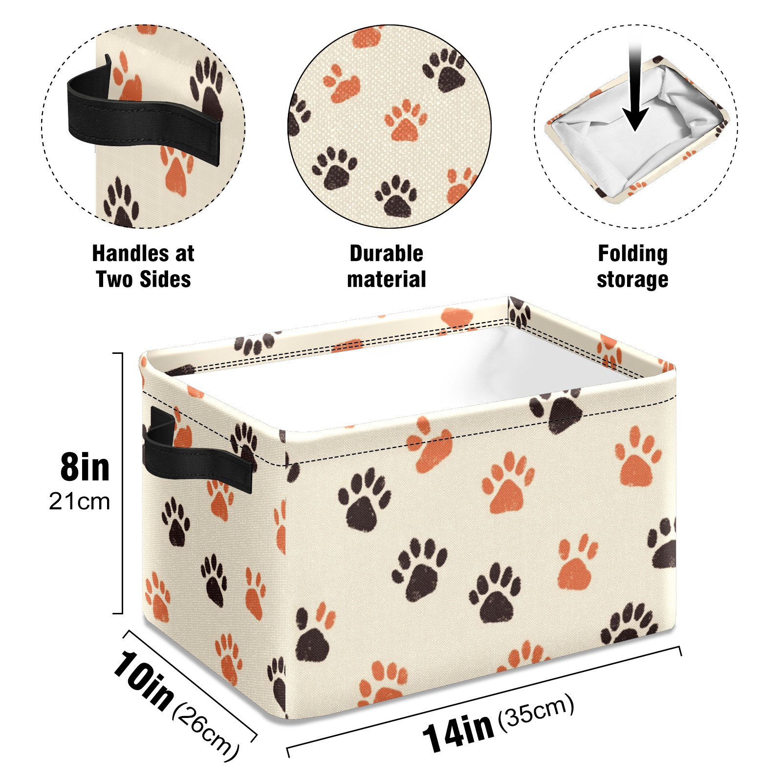 Foldable and Stackable Fabric Storage Basket for Home Organization with Handles, Decorative Closet Bins for Shelves and Laundry Storage( Cute Paw Prints)