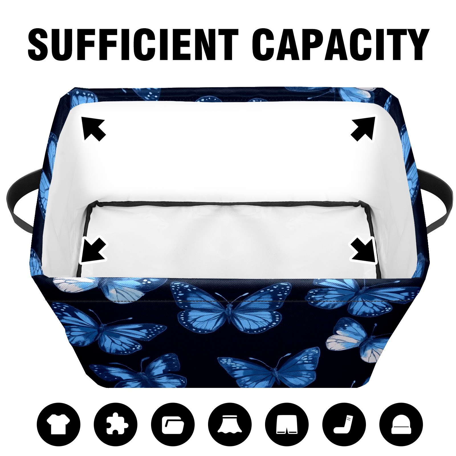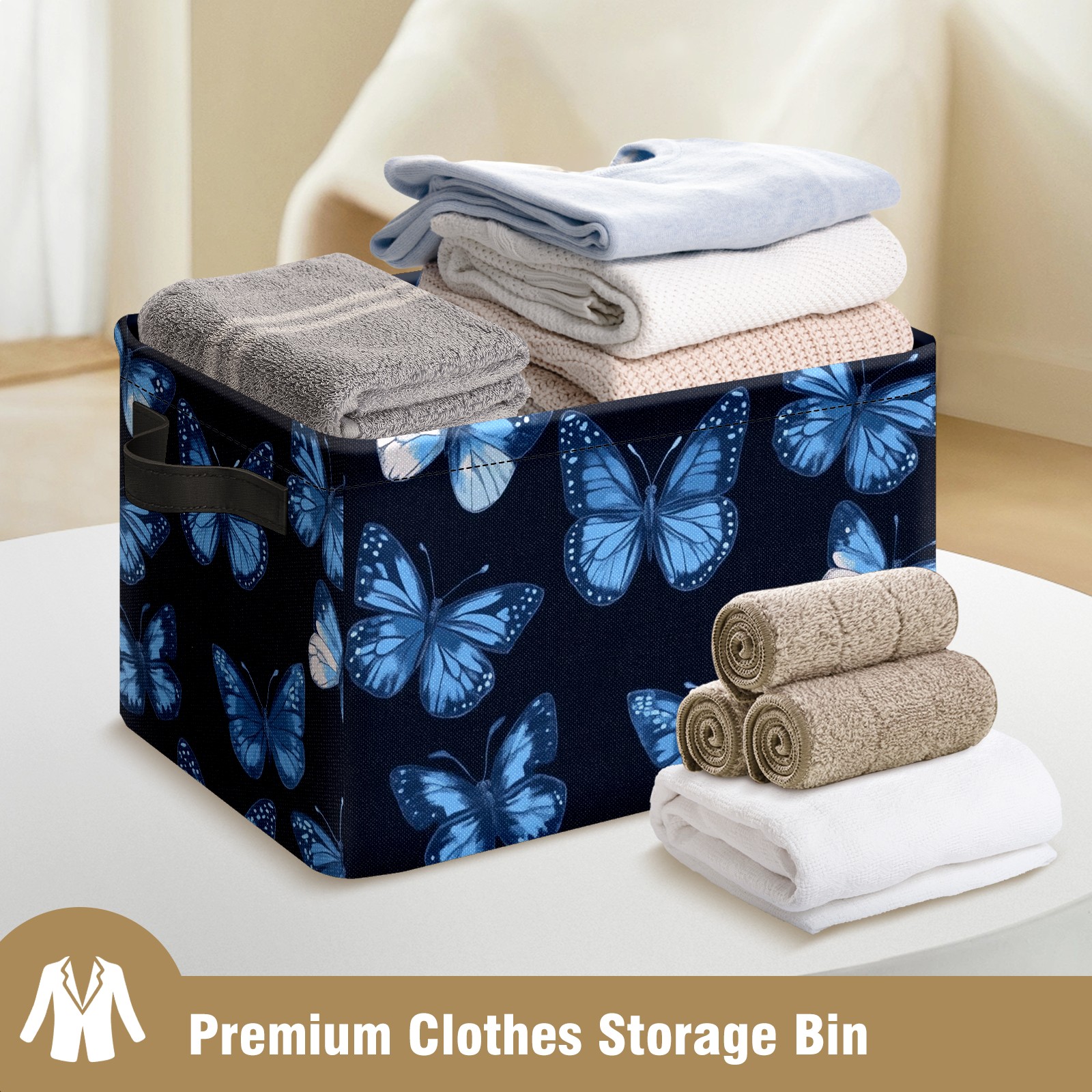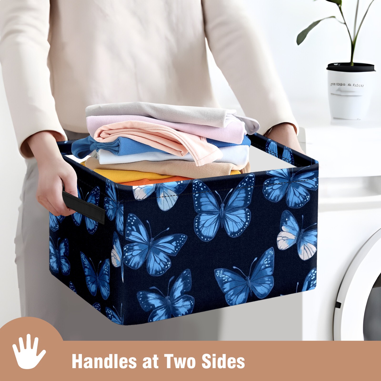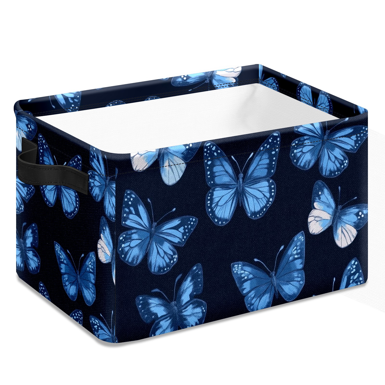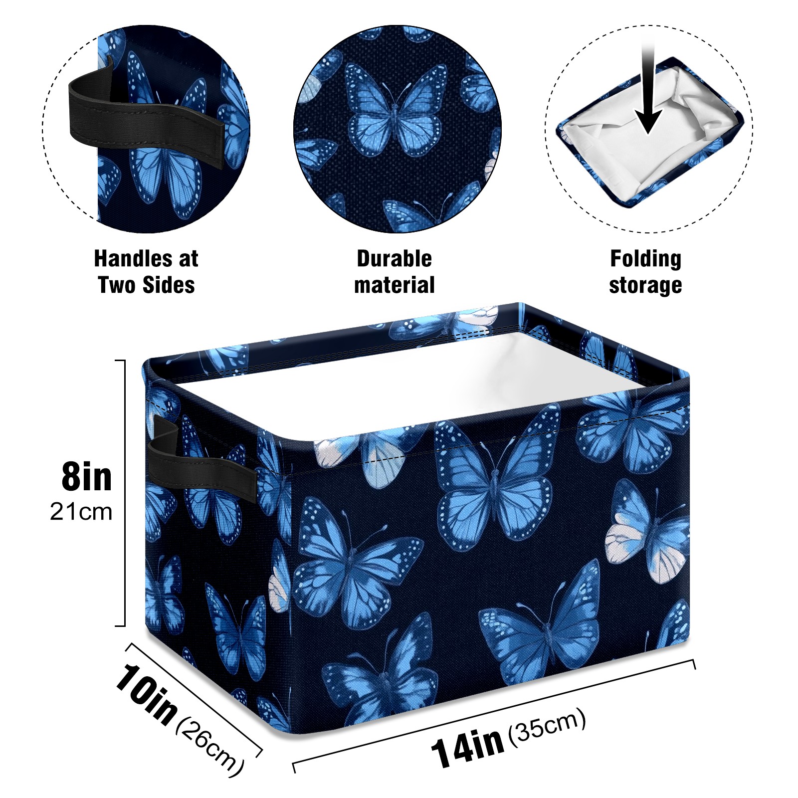 Foldable and Stackable Fabric Storage Basket for Home Organization with Handles, Decorative Closet Bins for Shelves and Laundry Storage( Blue Butterflies)