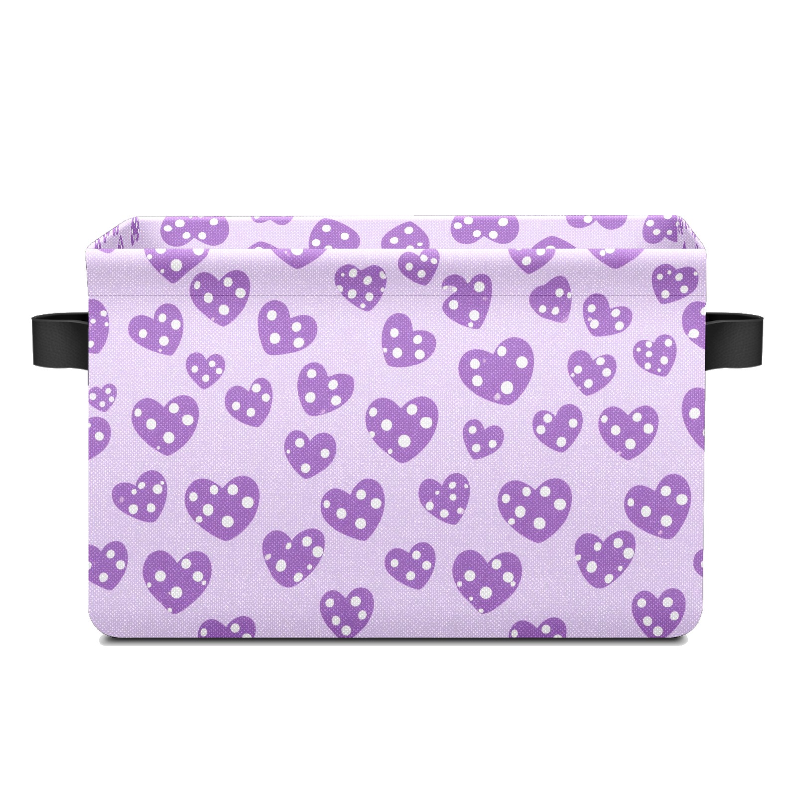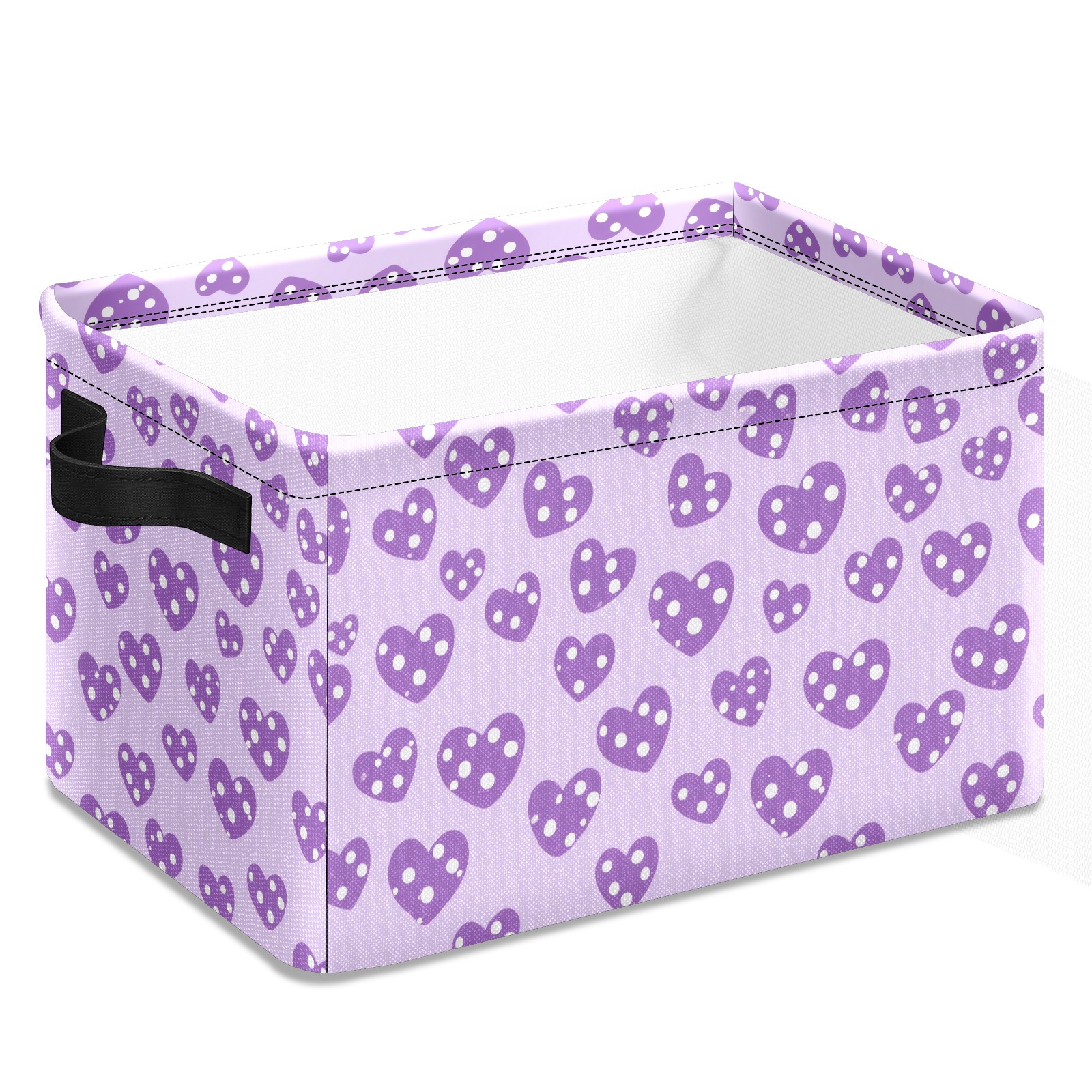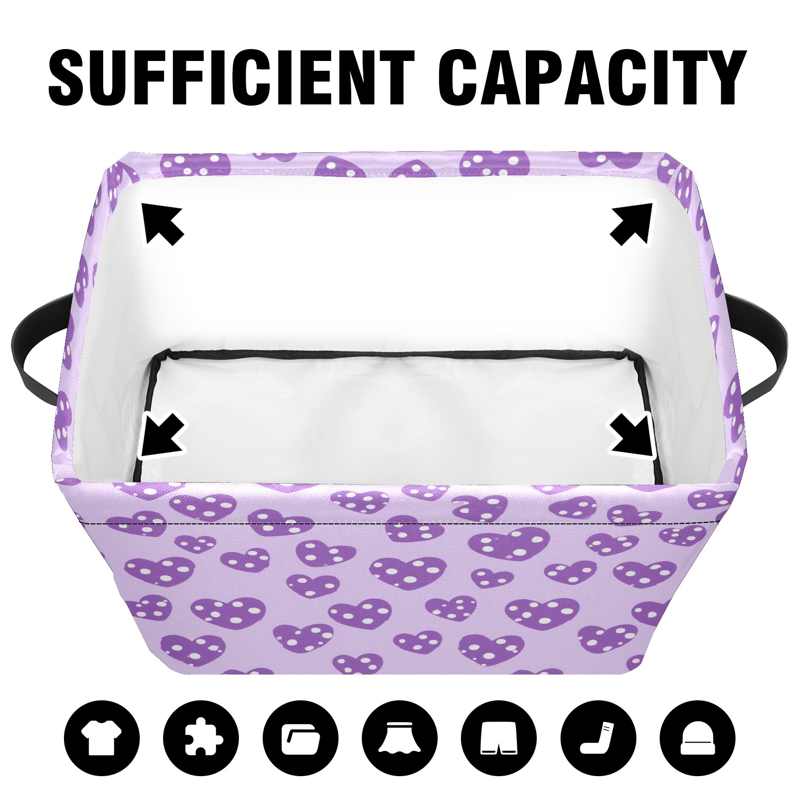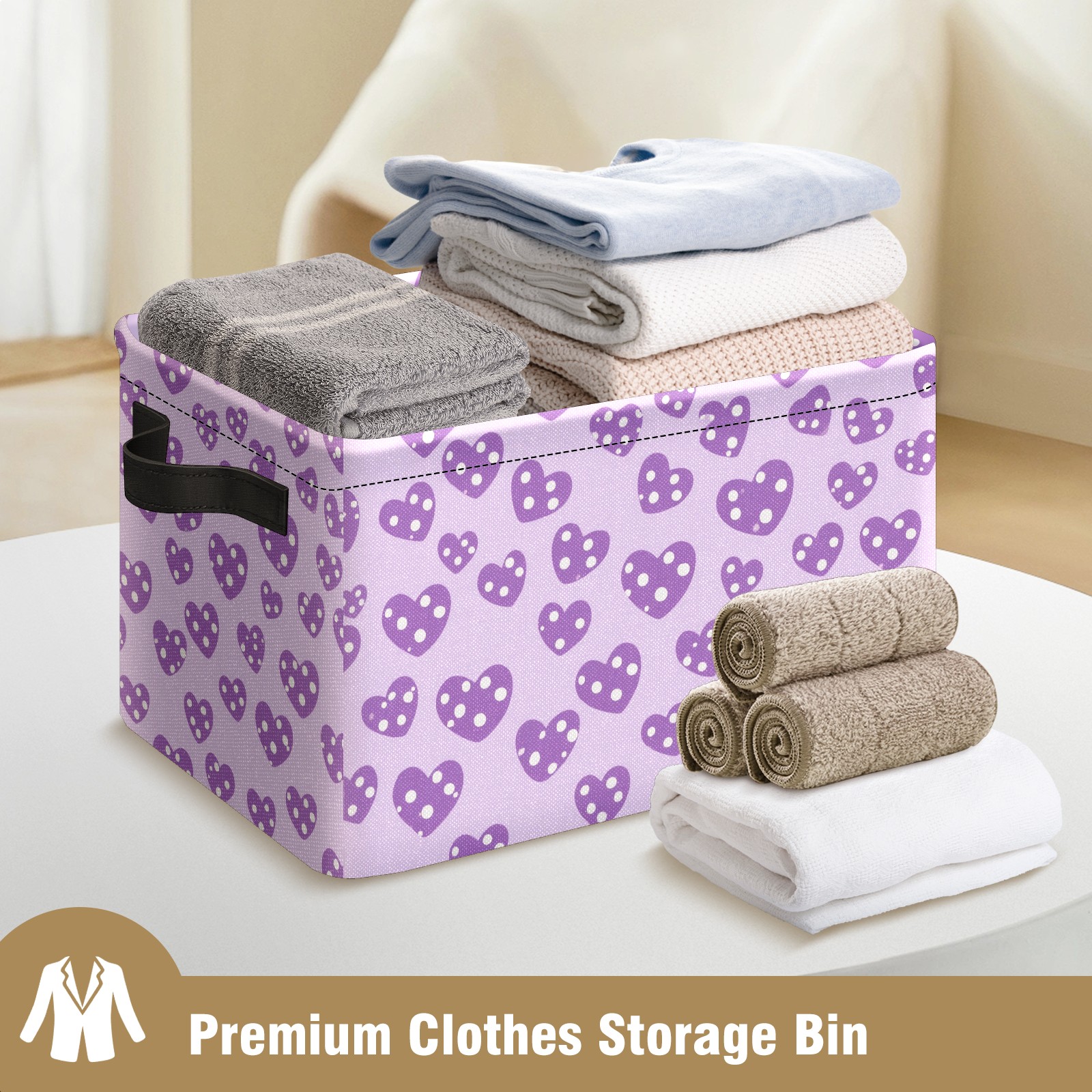 Foldable and Stackable Fabric Storage Basket for Home Organization with Handles, Decorative Closet Bins for Shelves and Laundry Storage( Purple Hearts)