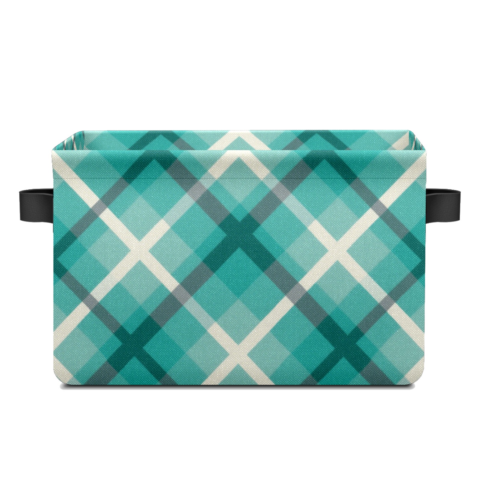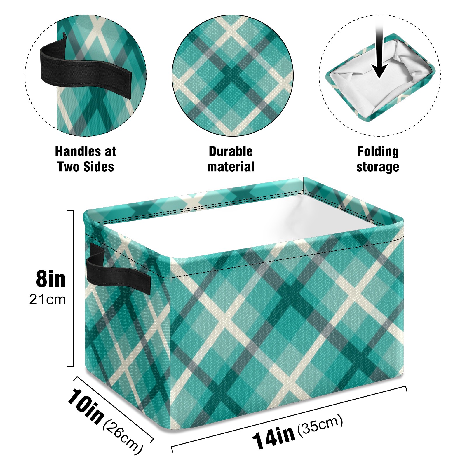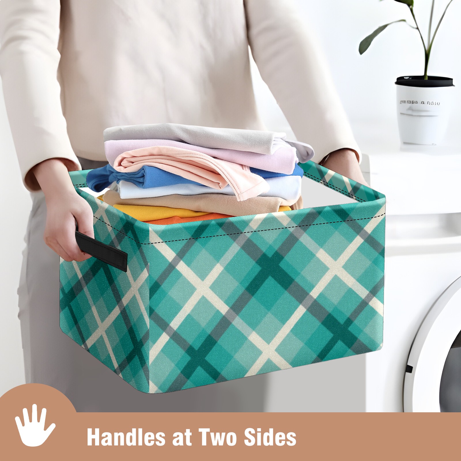 Foldable and Stackable Fabric Storage Basket for Home Organization with Handles, Decorative Closet Bins for Shelves and Laundry Storage( Blue Checkered)