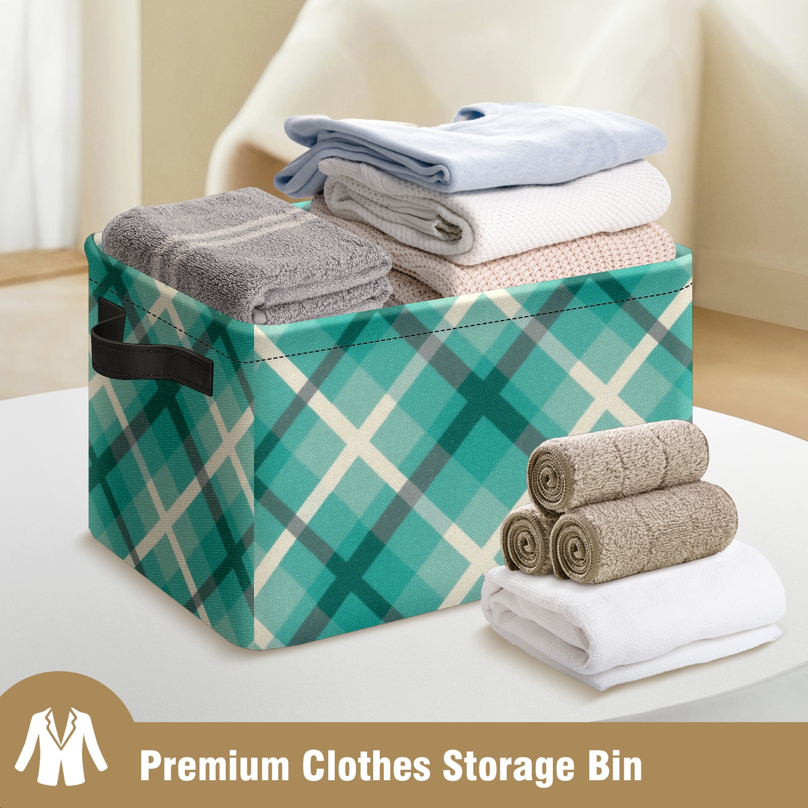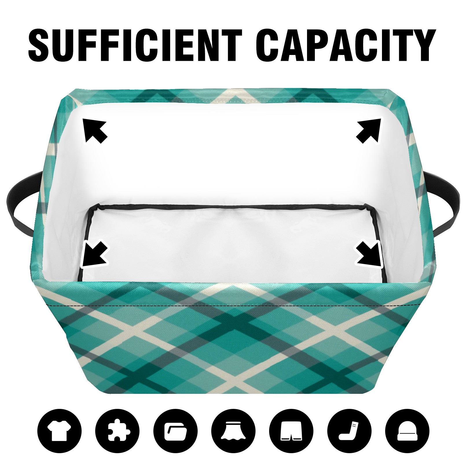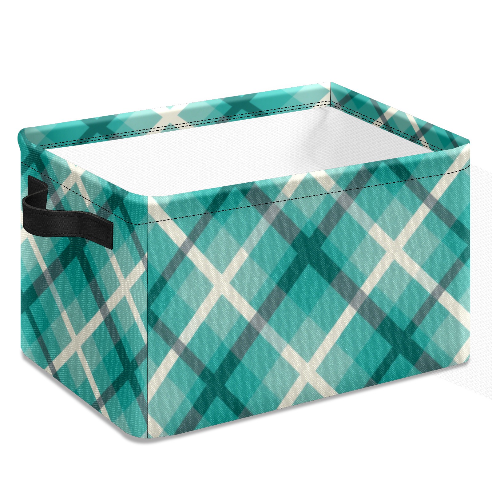Foldable and Stackable Fabric Storage Basket for Home Organization with Handles, Decorative Closet Bins for Shelves and Laundry Storage( Blue Checkered)