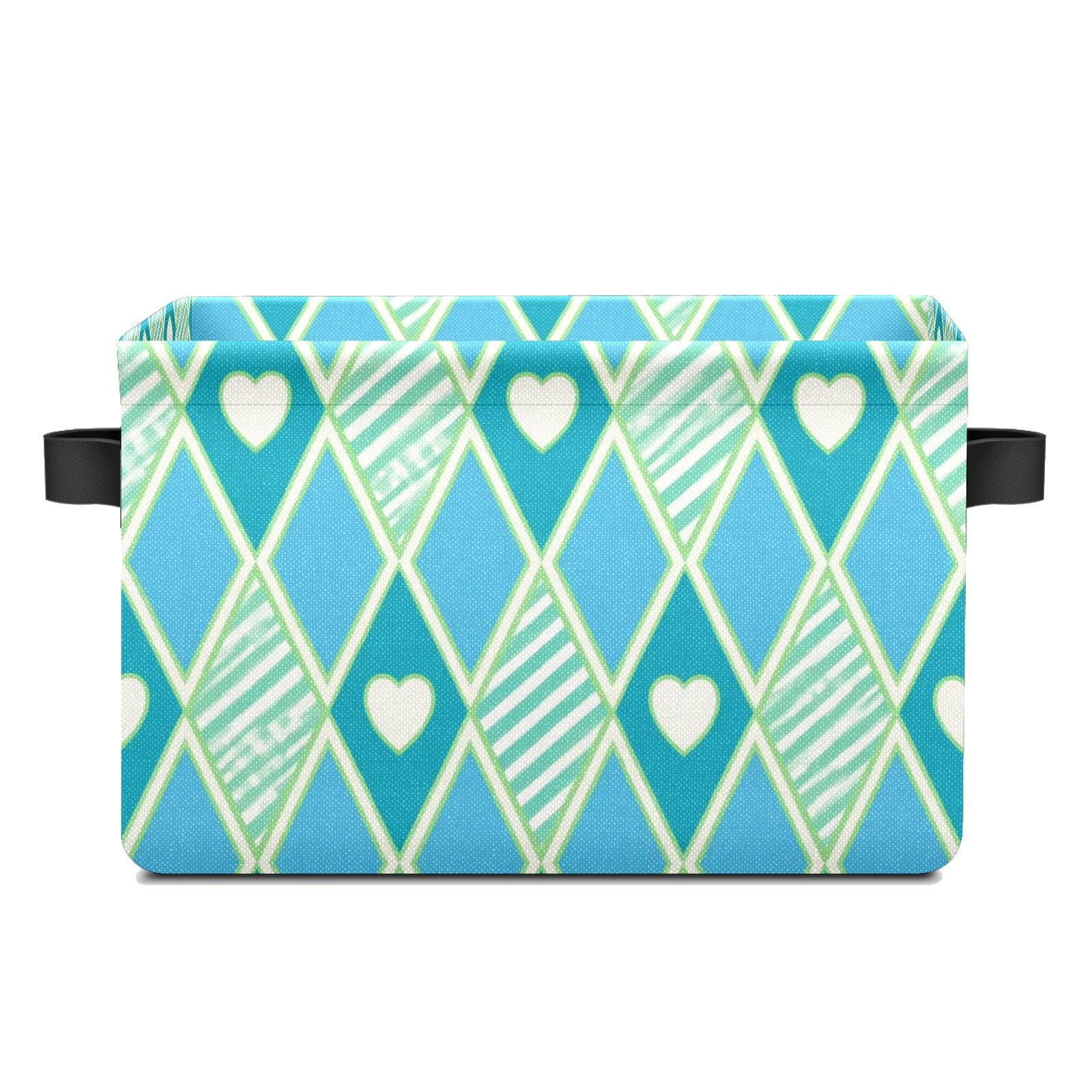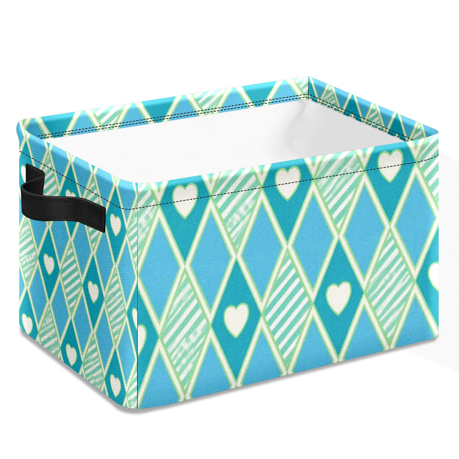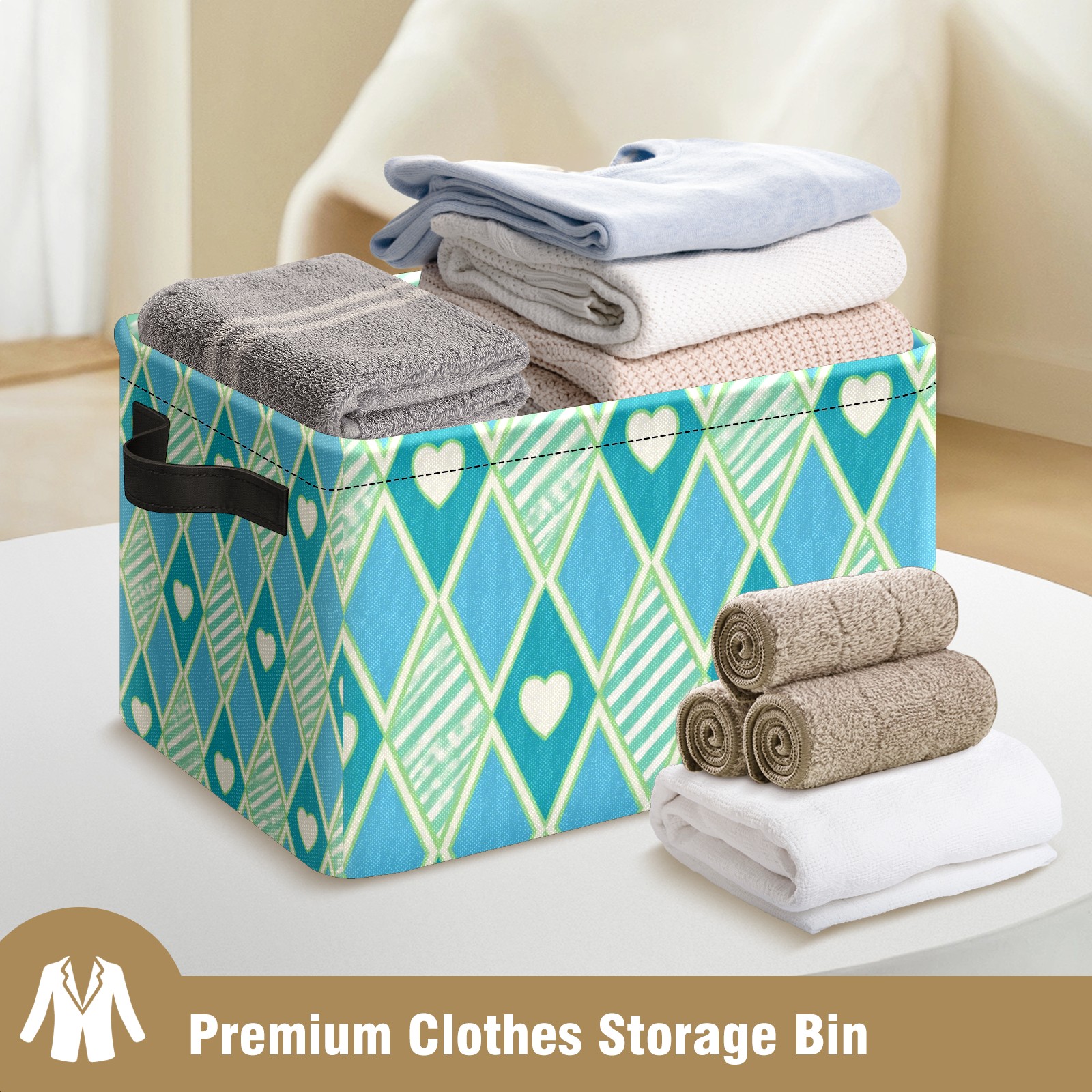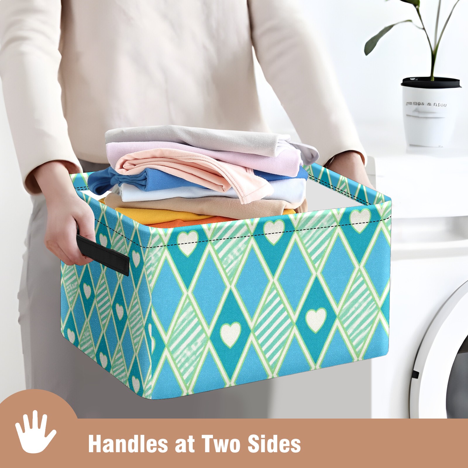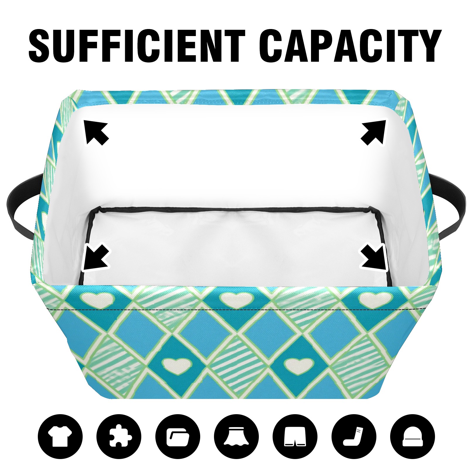 Foldable and Stackable Fabric Storage Basket for Home Organization with Handles, Decorative Closet Bins for Shelves and Laundry Storage( Blue Green Checkered)