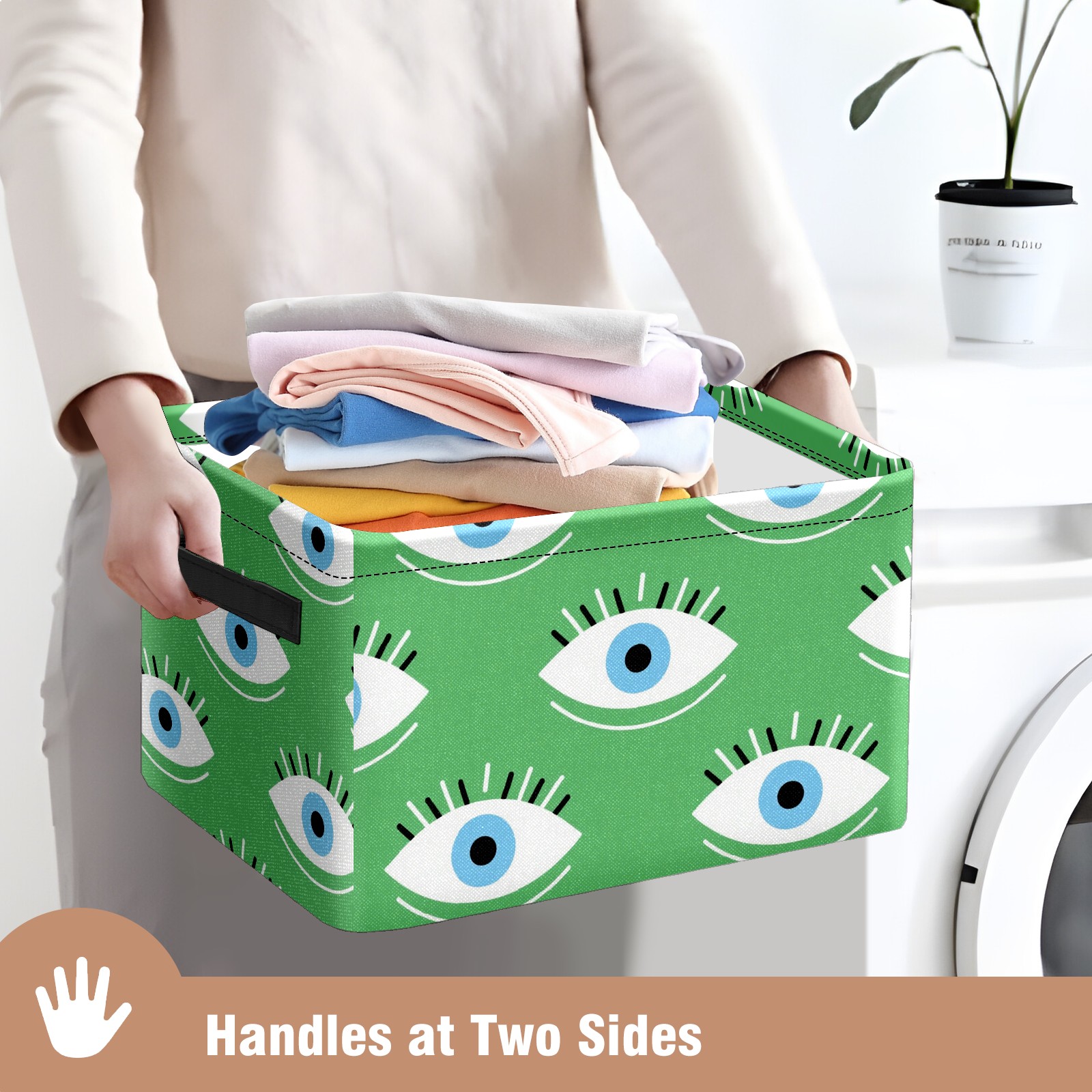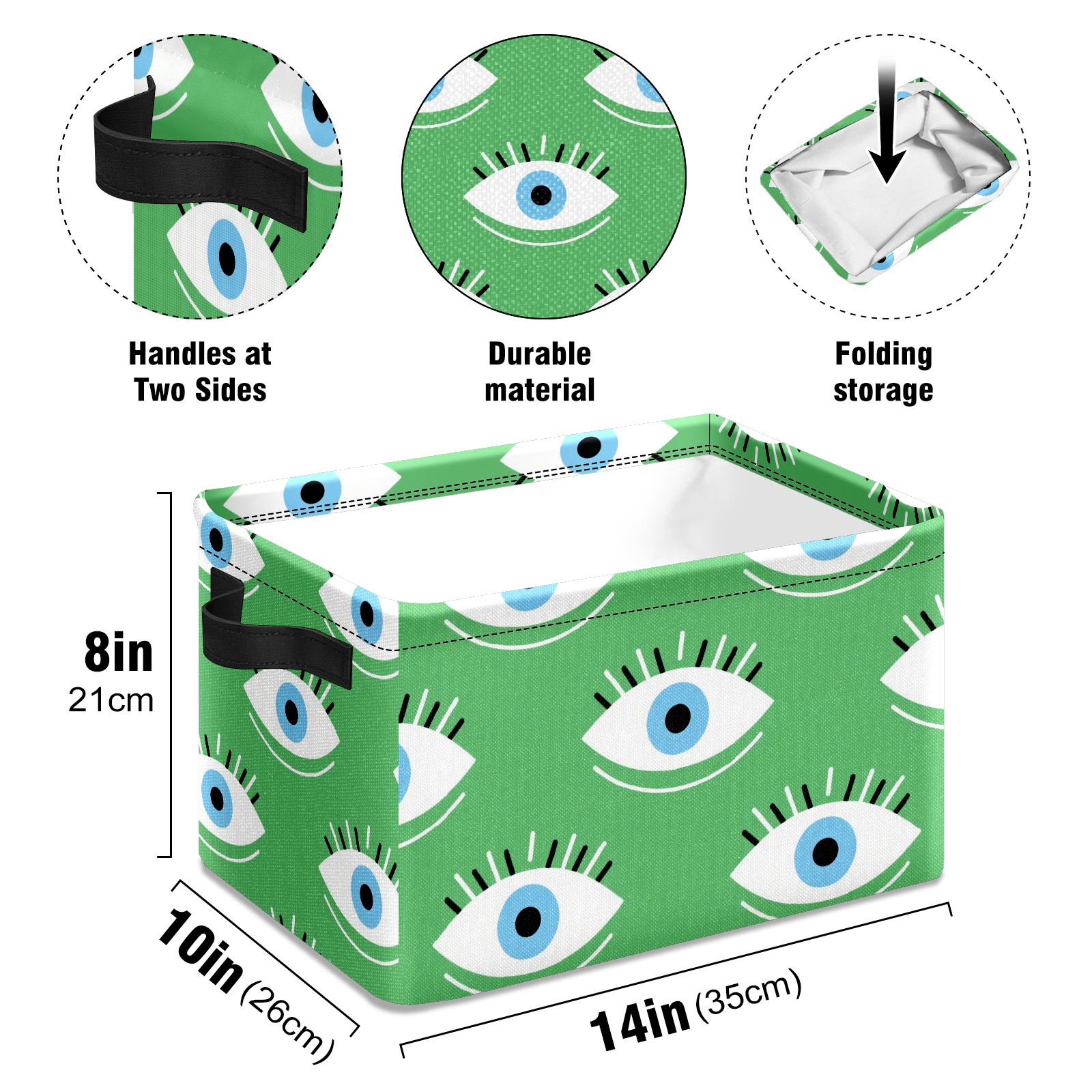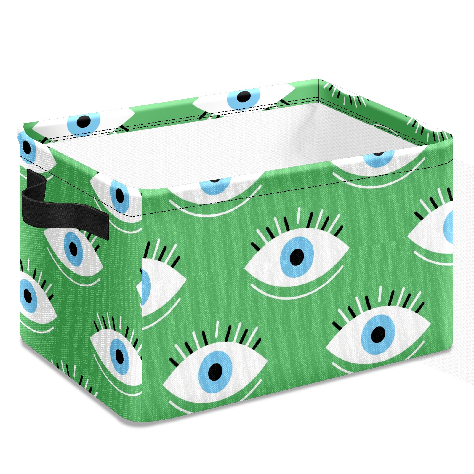Foldable and Stackable Fabric Storage Basket for Home Organization with Handles, Decorative Closet Bins for Shelves and Laundry Storage( Green Eyes)
