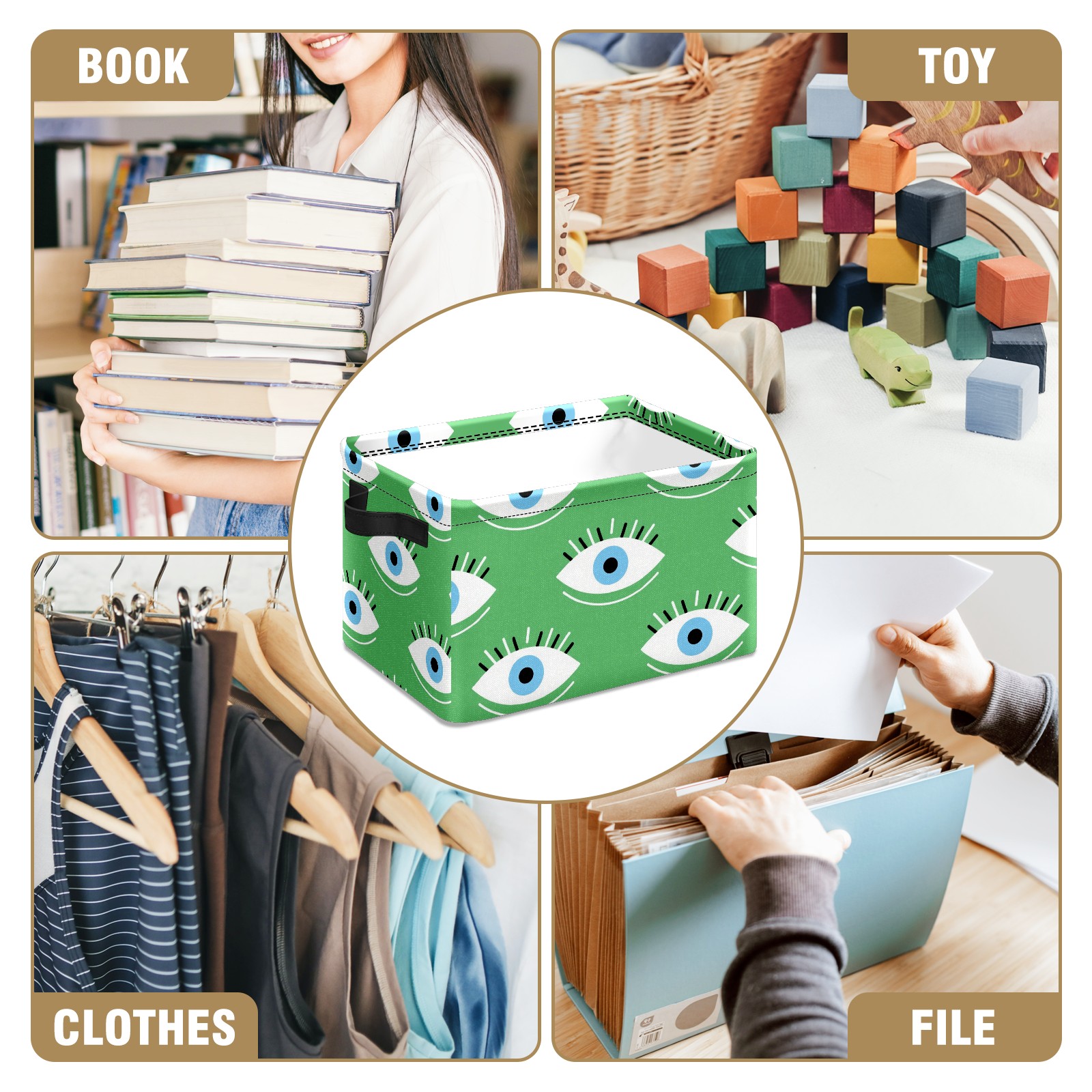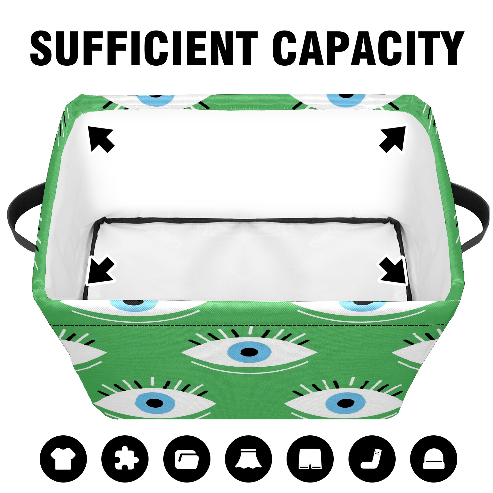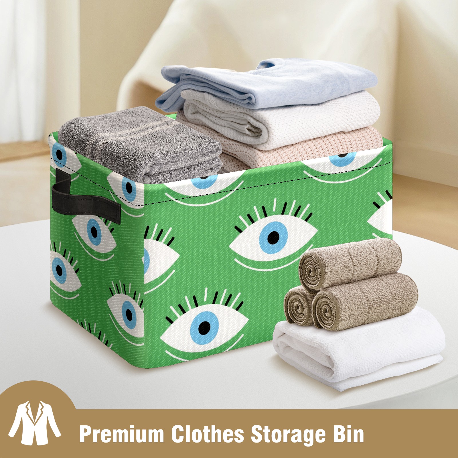 Foldable and Stackable Fabric Storage Basket for Home Organization with Handles, Decorative Closet Bins for Shelves and Laundry Storage( Green Eyes)