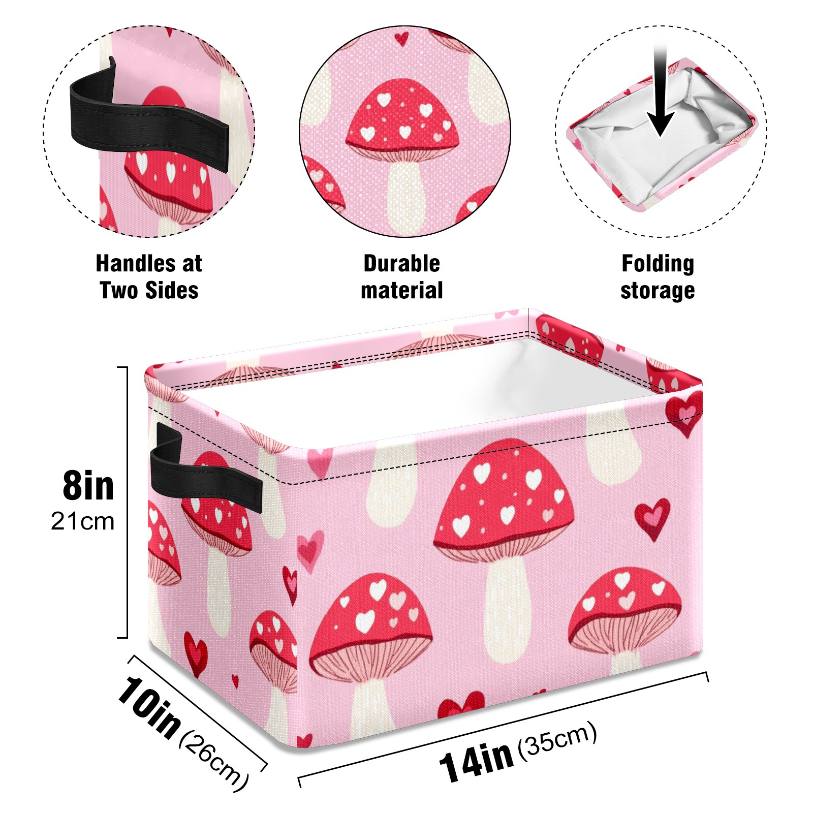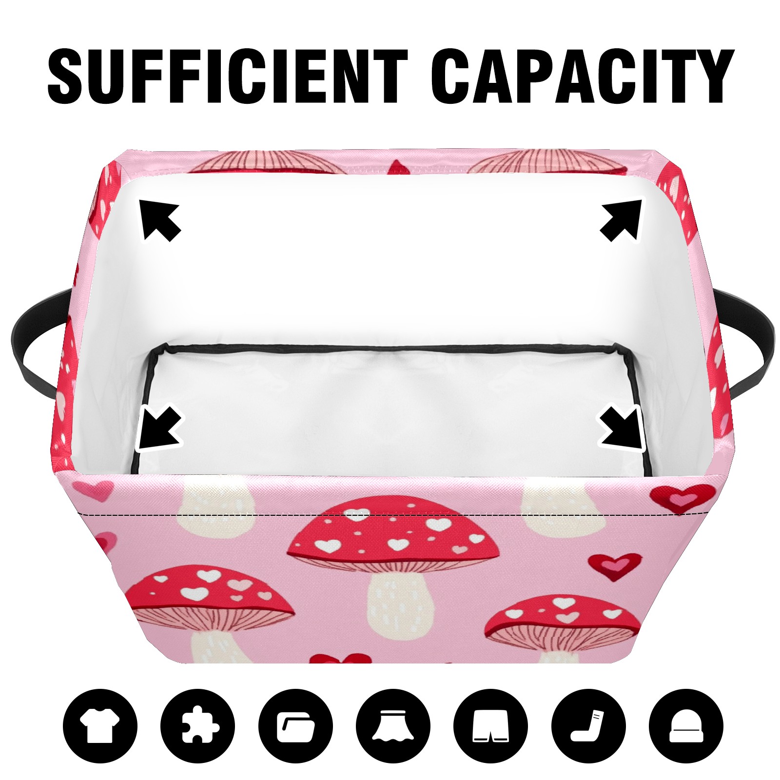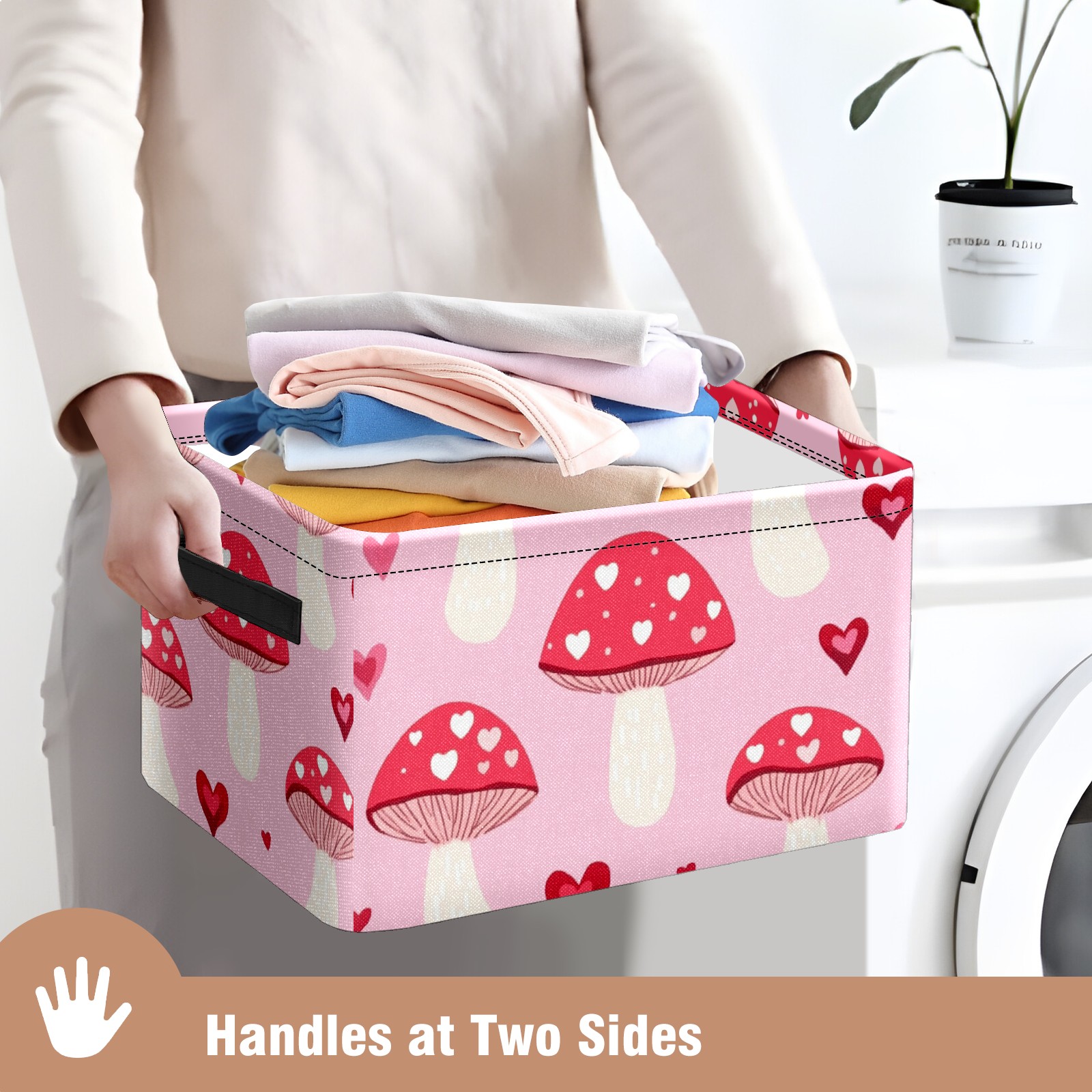 Foldable and Stackable Fabric Storage Basket for Home Organization with Handles, Decorative Closet Bins for Shelves and Laundry Storage( Pink Mushrooms)