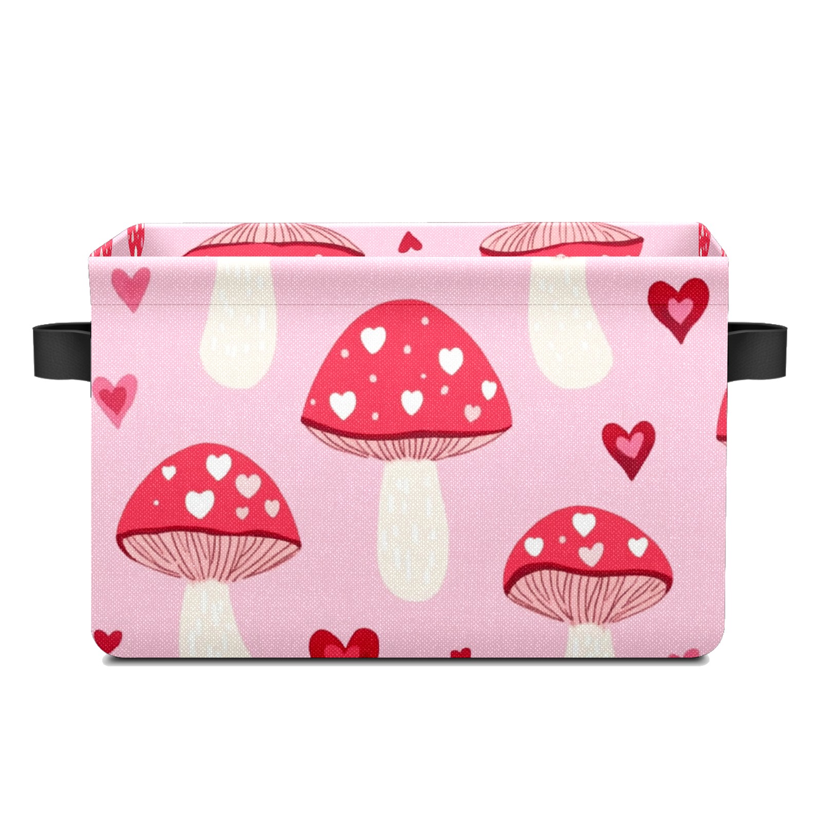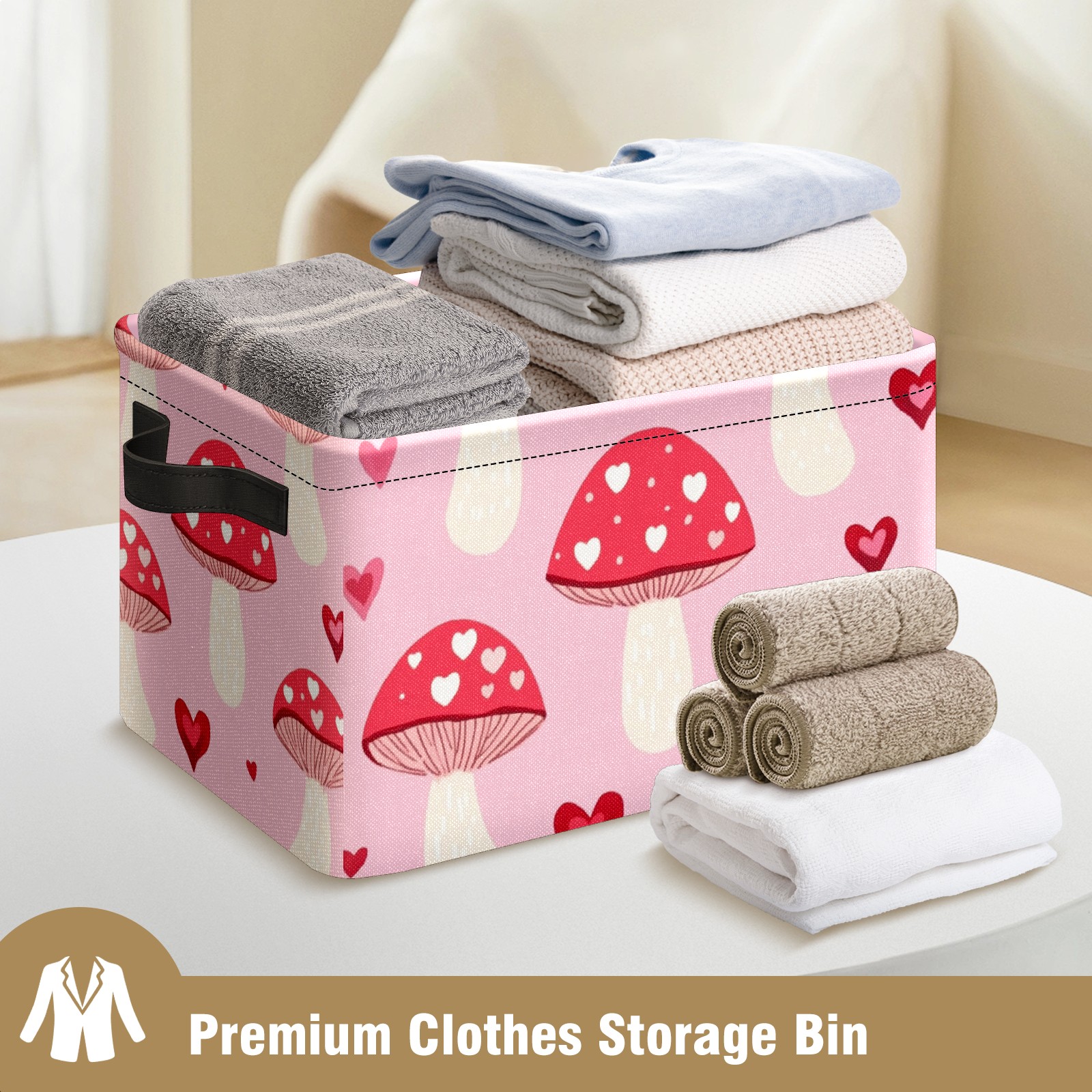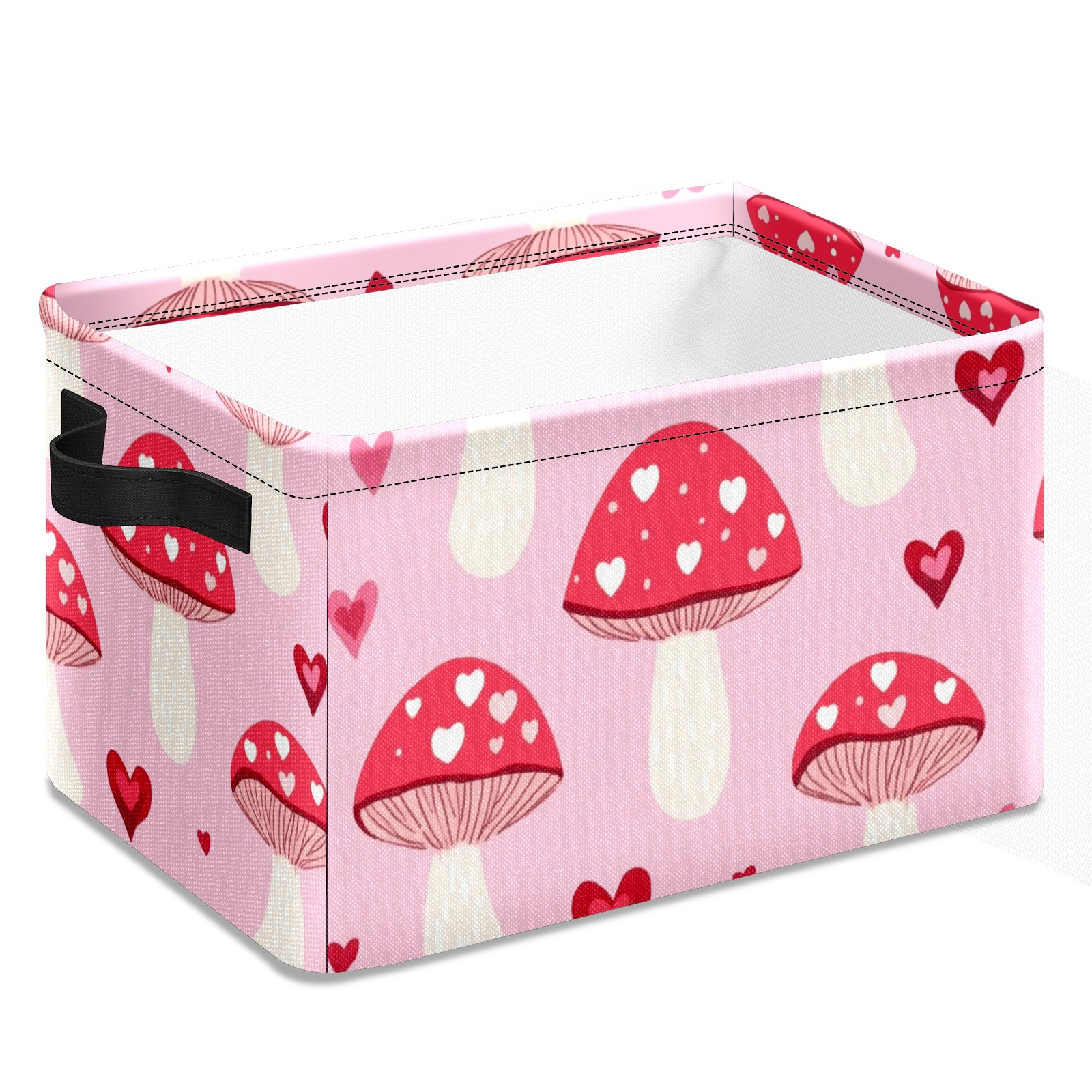 Foldable and Stackable Fabric Storage Basket for Home Organization with Handles, Decorative Closet Bins for Shelves and Laundry Storage( Pink Mushrooms)