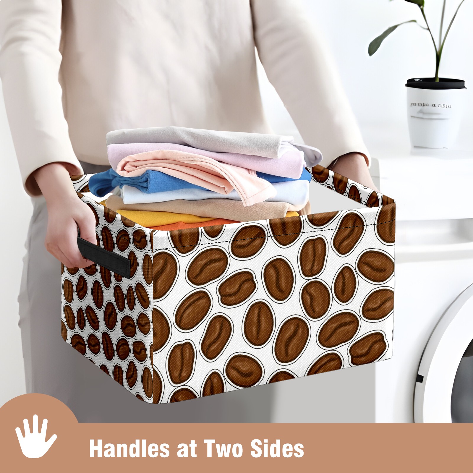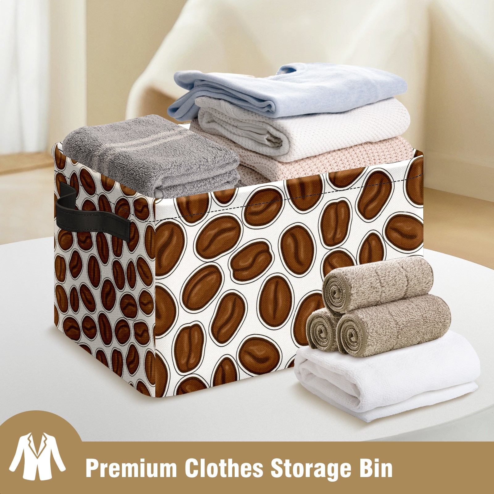 Foldable and Stackable Fabric Storage Basket for Home Organization with Handles, Decorative Closet Bins for Shelves and Laundry Storage( Coffee Bean)