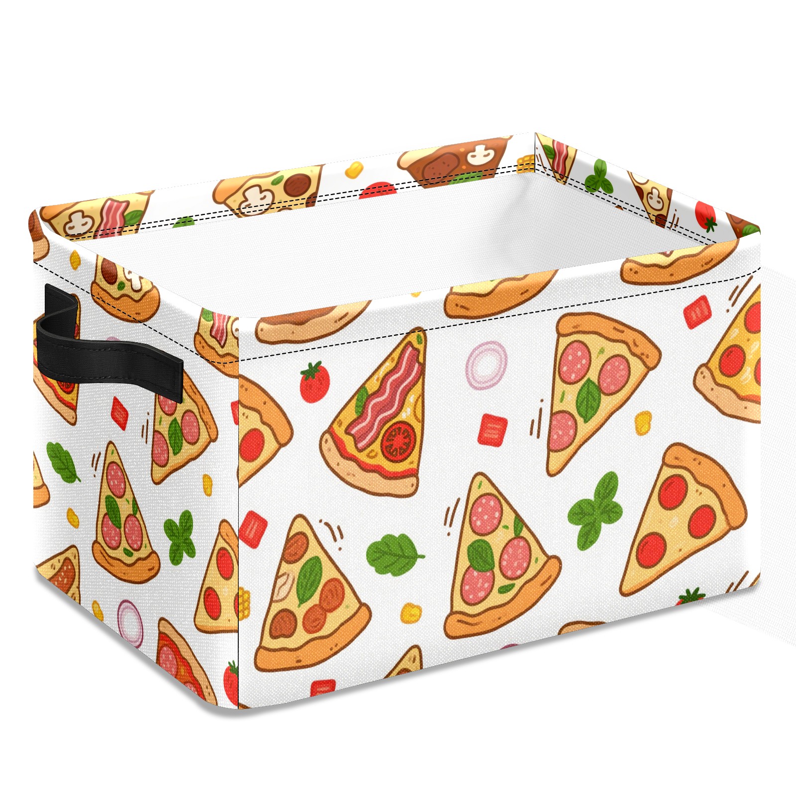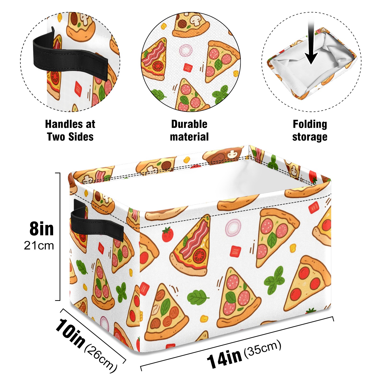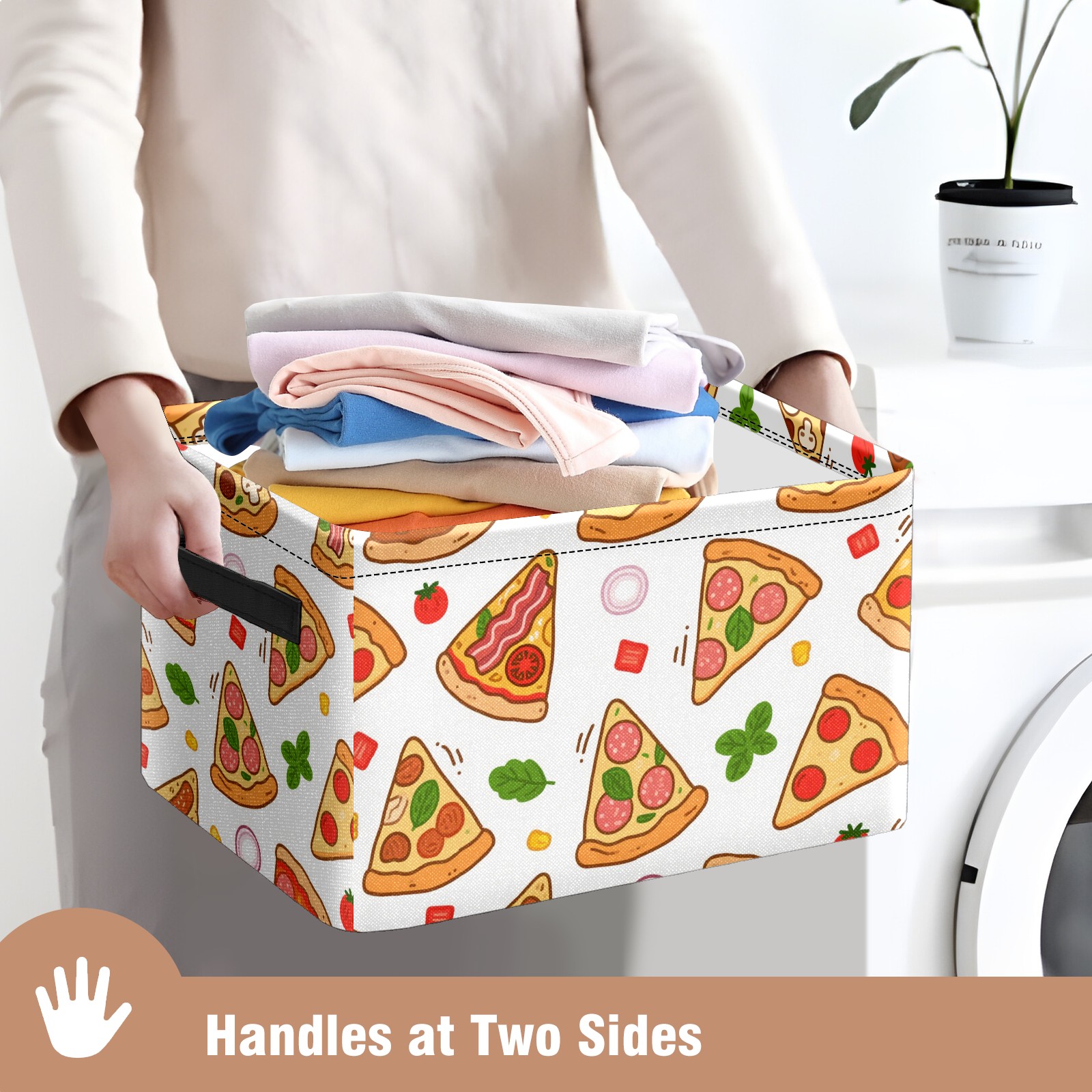 Foldable and Stackable Fabric Storage Basket for Home Organization with Handles, Decorative Closet Bins for Shelves and Laundry Storage( Pizza)