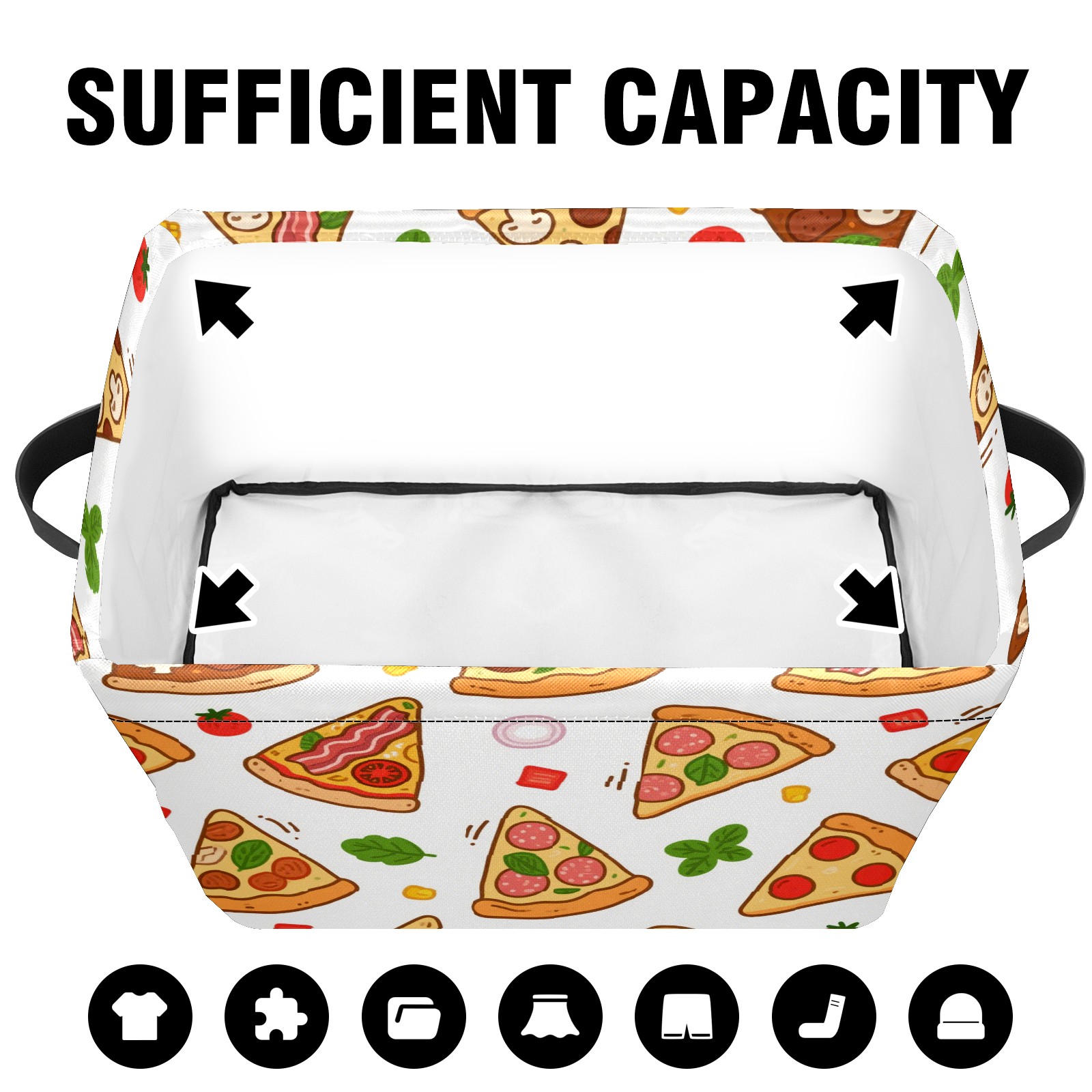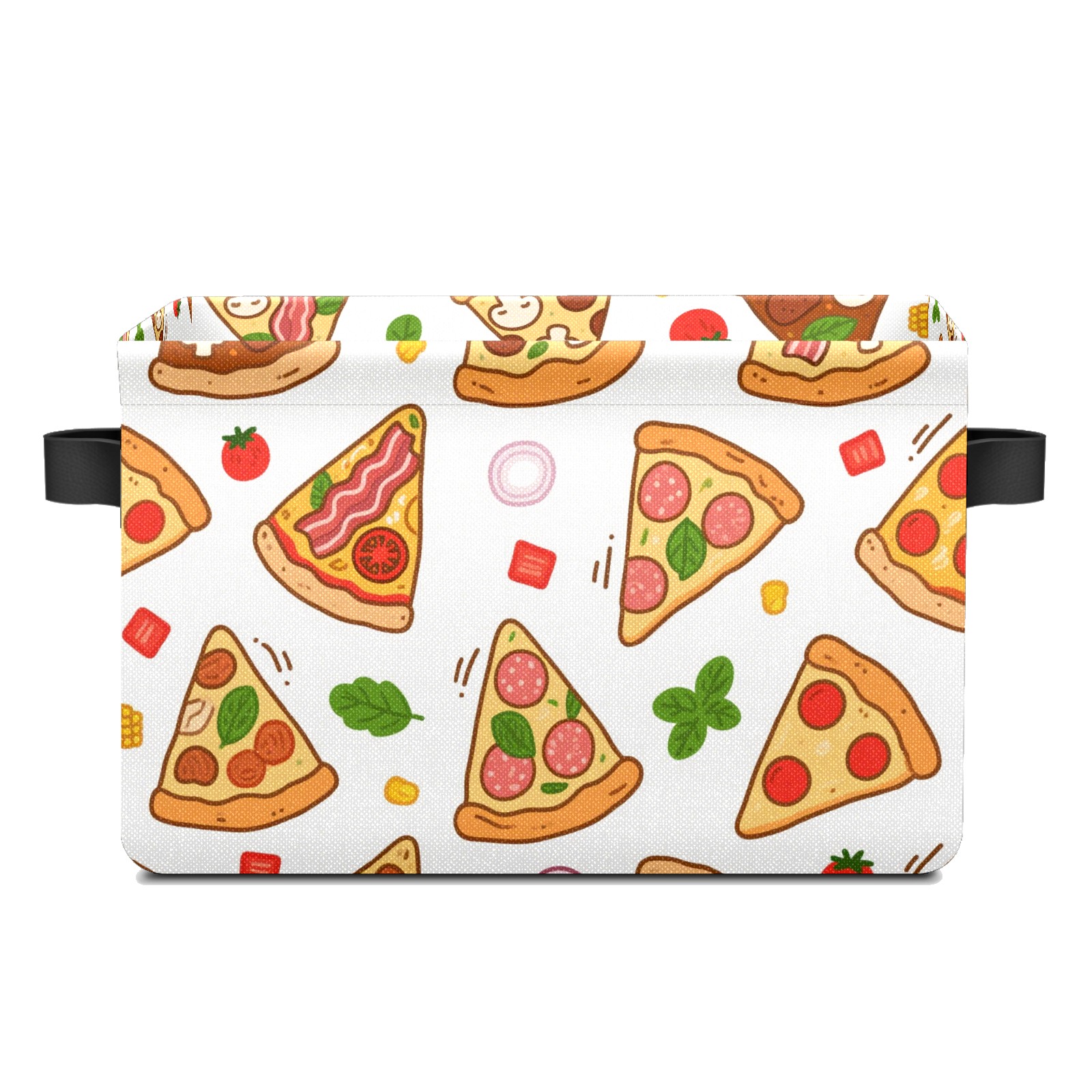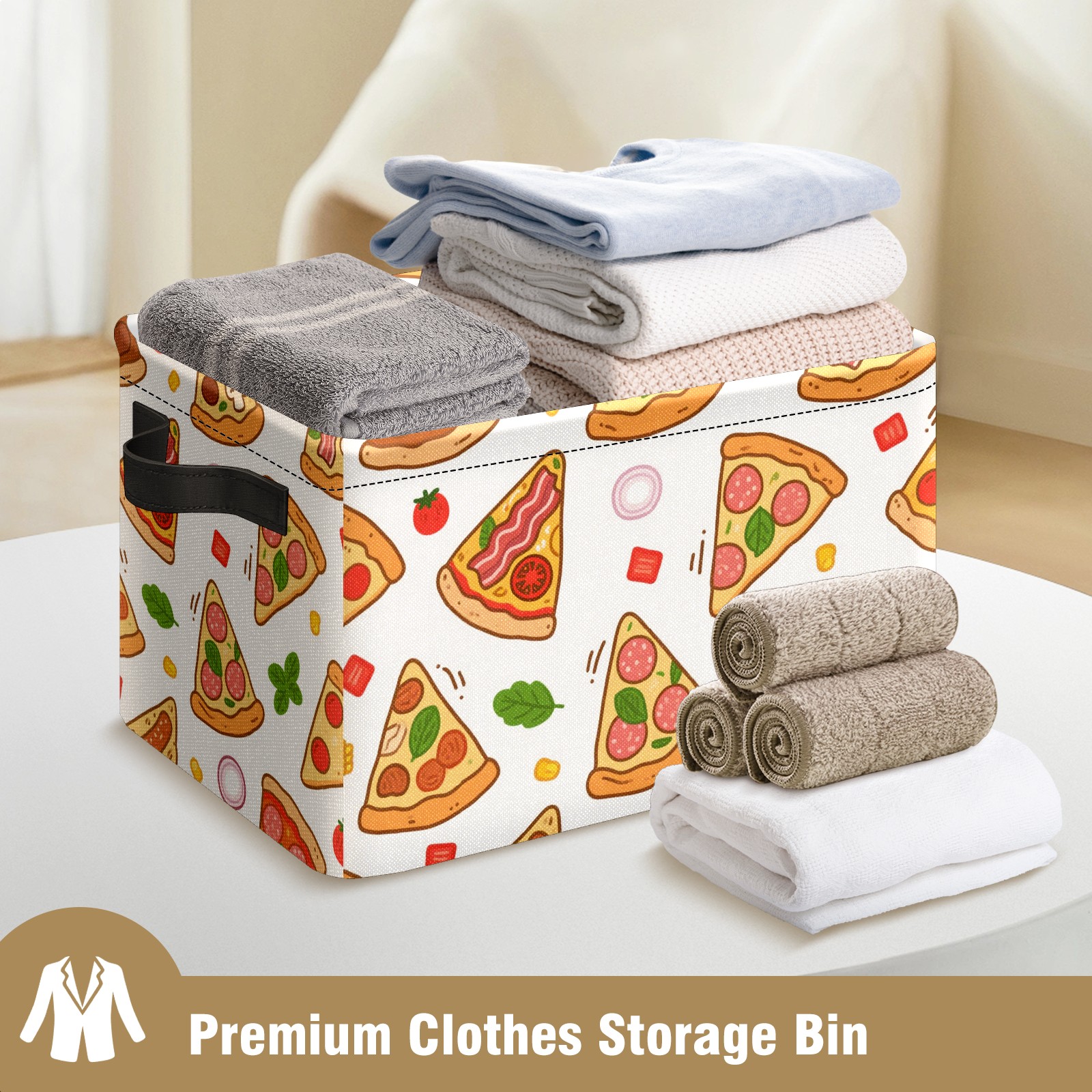 Foldable and Stackable Fabric Storage Basket for Home Organization with Handles, Decorative Closet Bins for Shelves and Laundry Storage( Pizza)