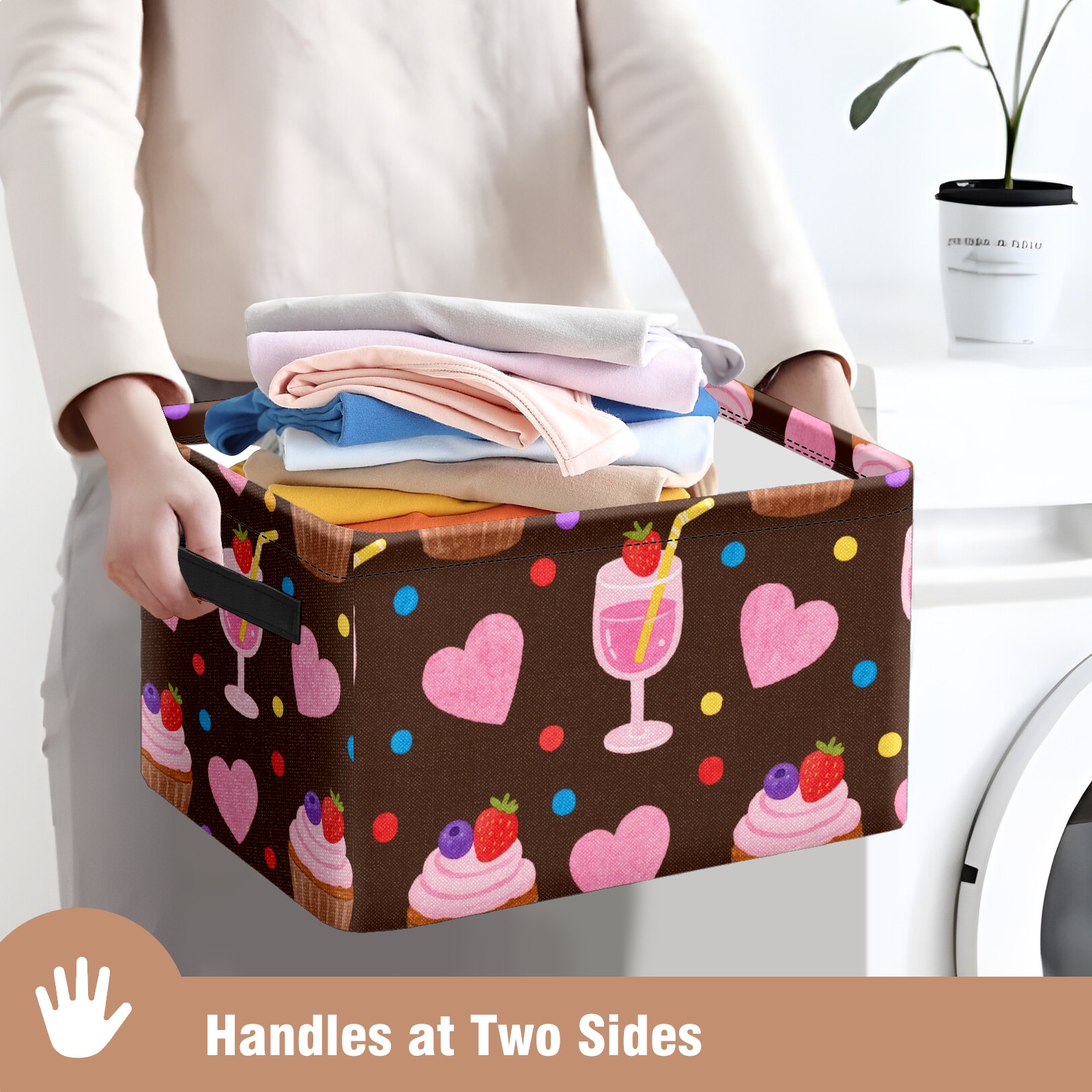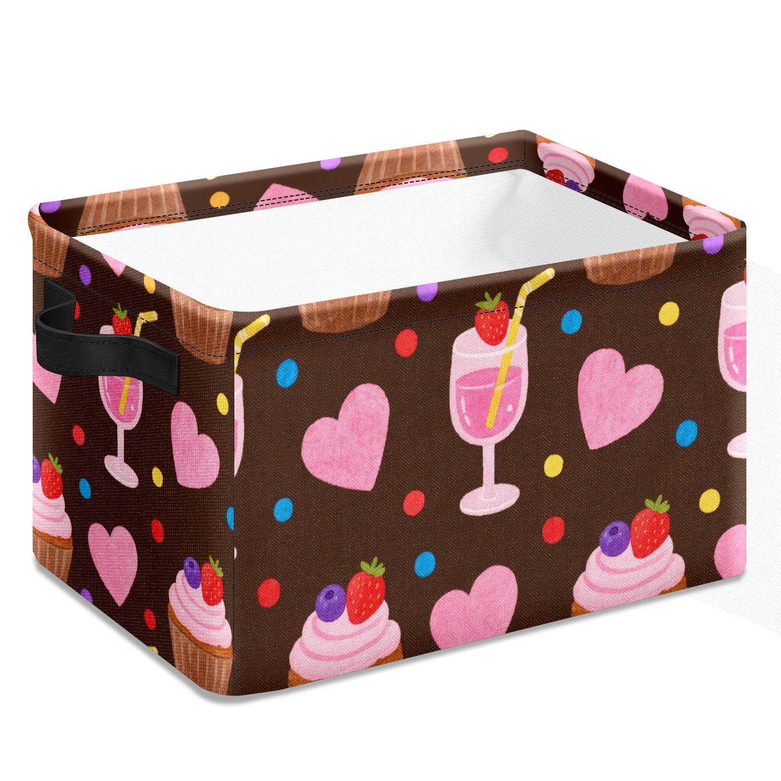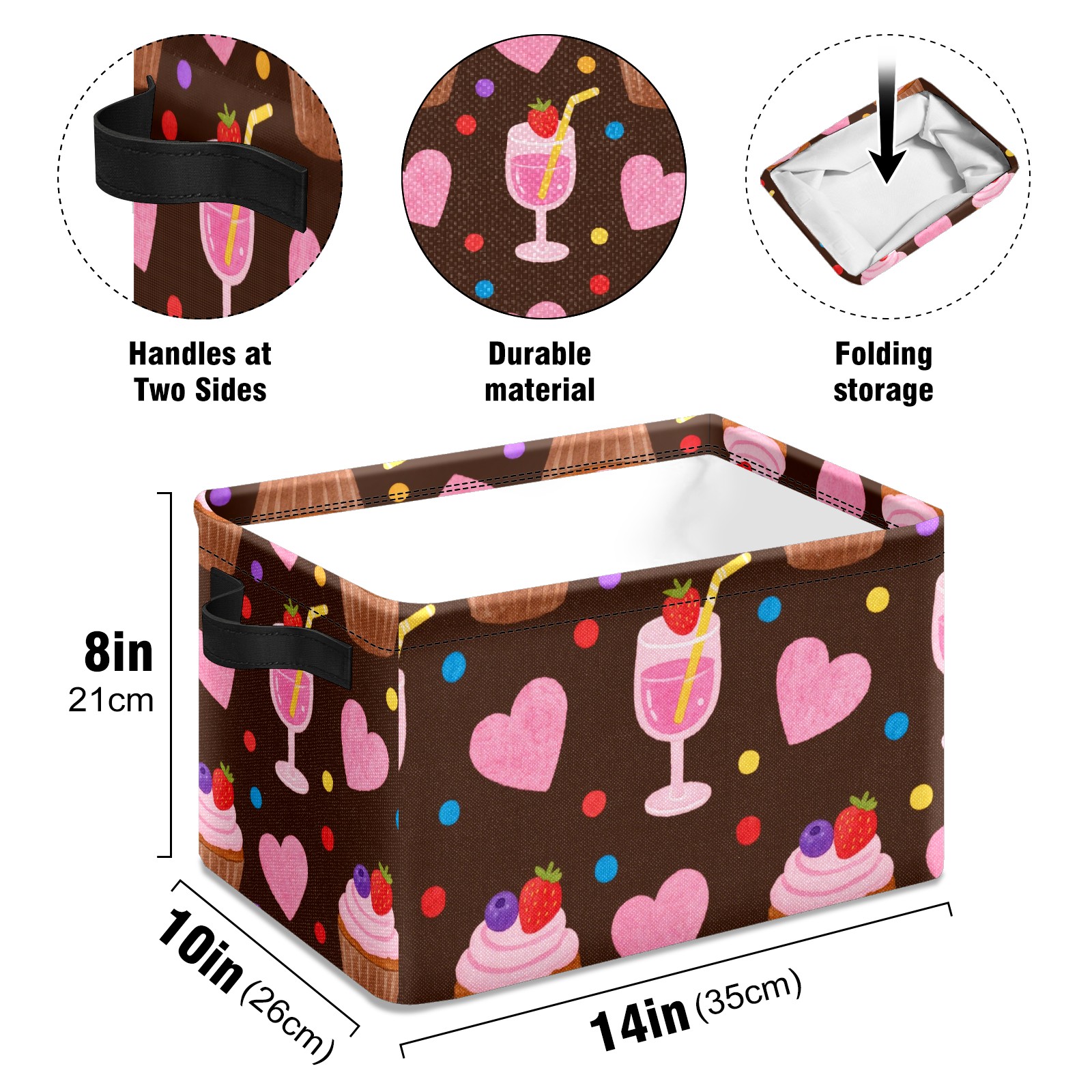 Foldable and Stackable Fabric Storage Basket for Home Organization with Handles, Decorative Closet Bins for Shelves and Laundry Storage( Cupcake And Juice)