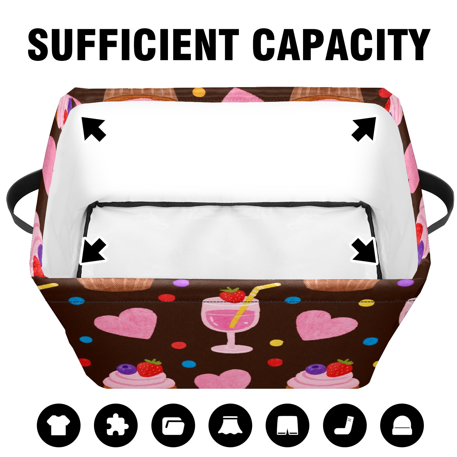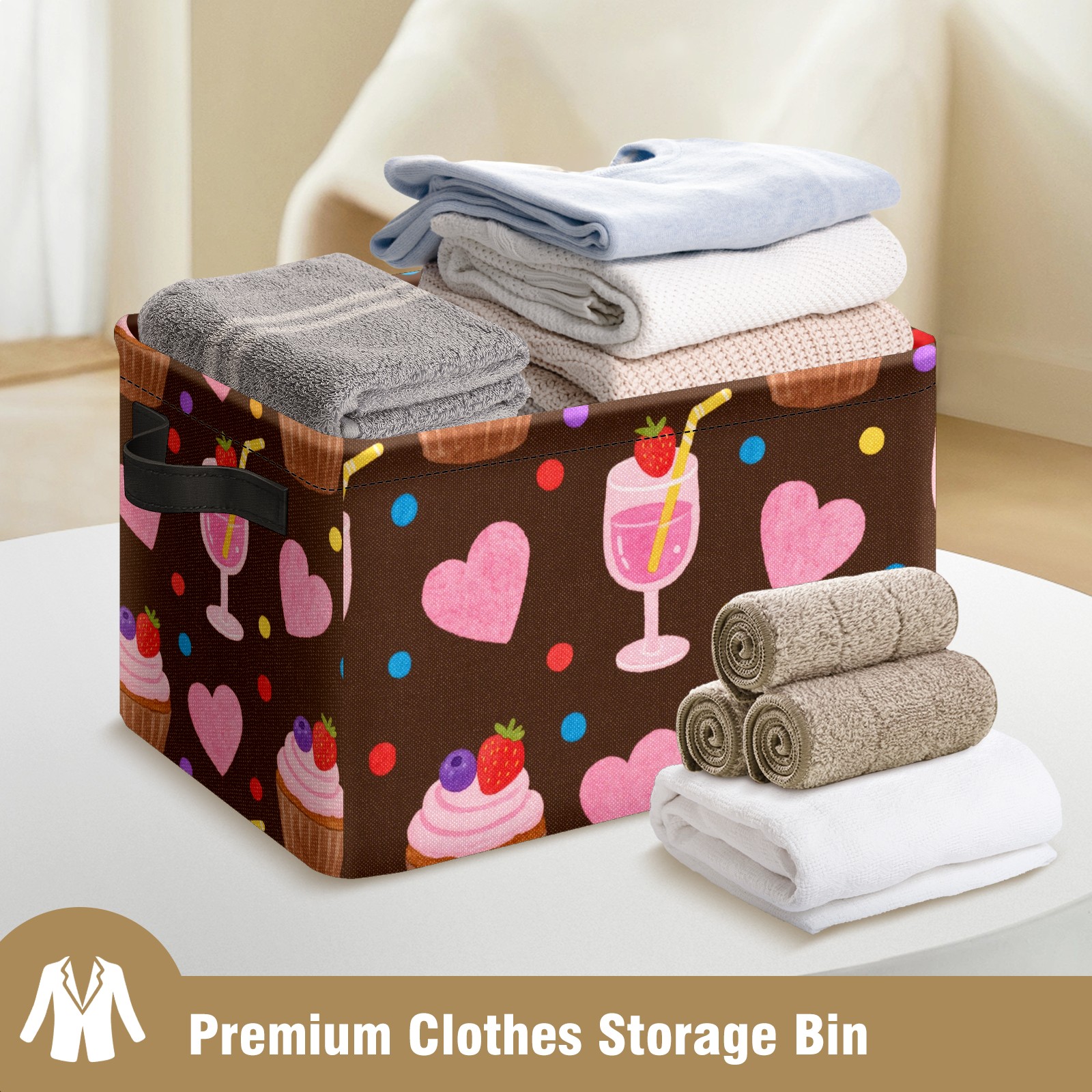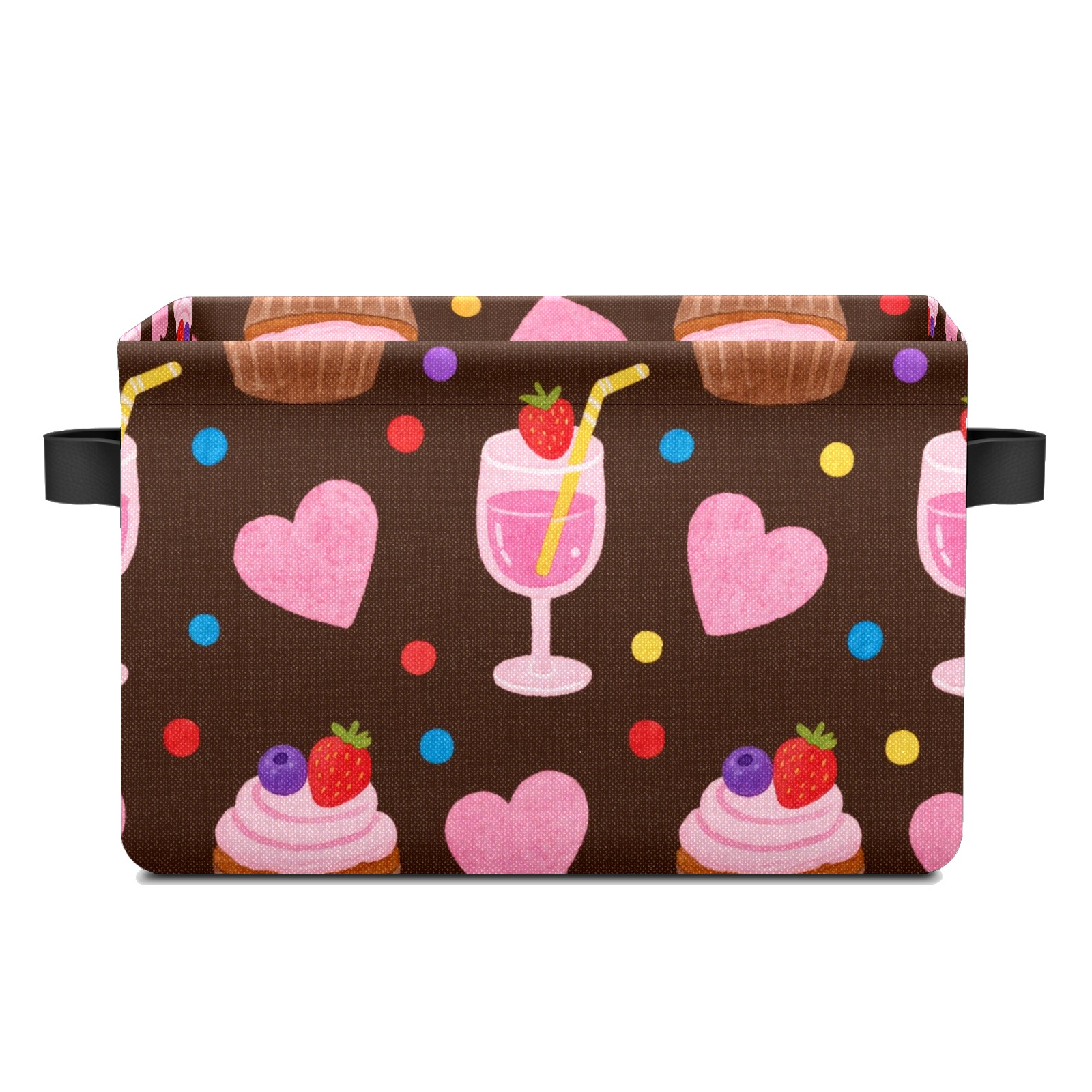 Foldable and Stackable Fabric Storage Basket for Home Organization with Handles, Decorative Closet Bins for Shelves and Laundry Storage( Cupcake And Juice)