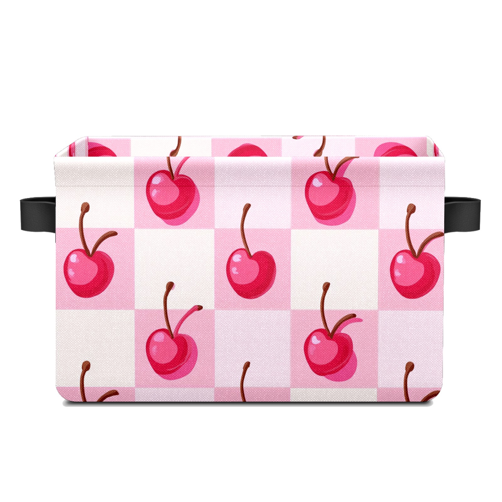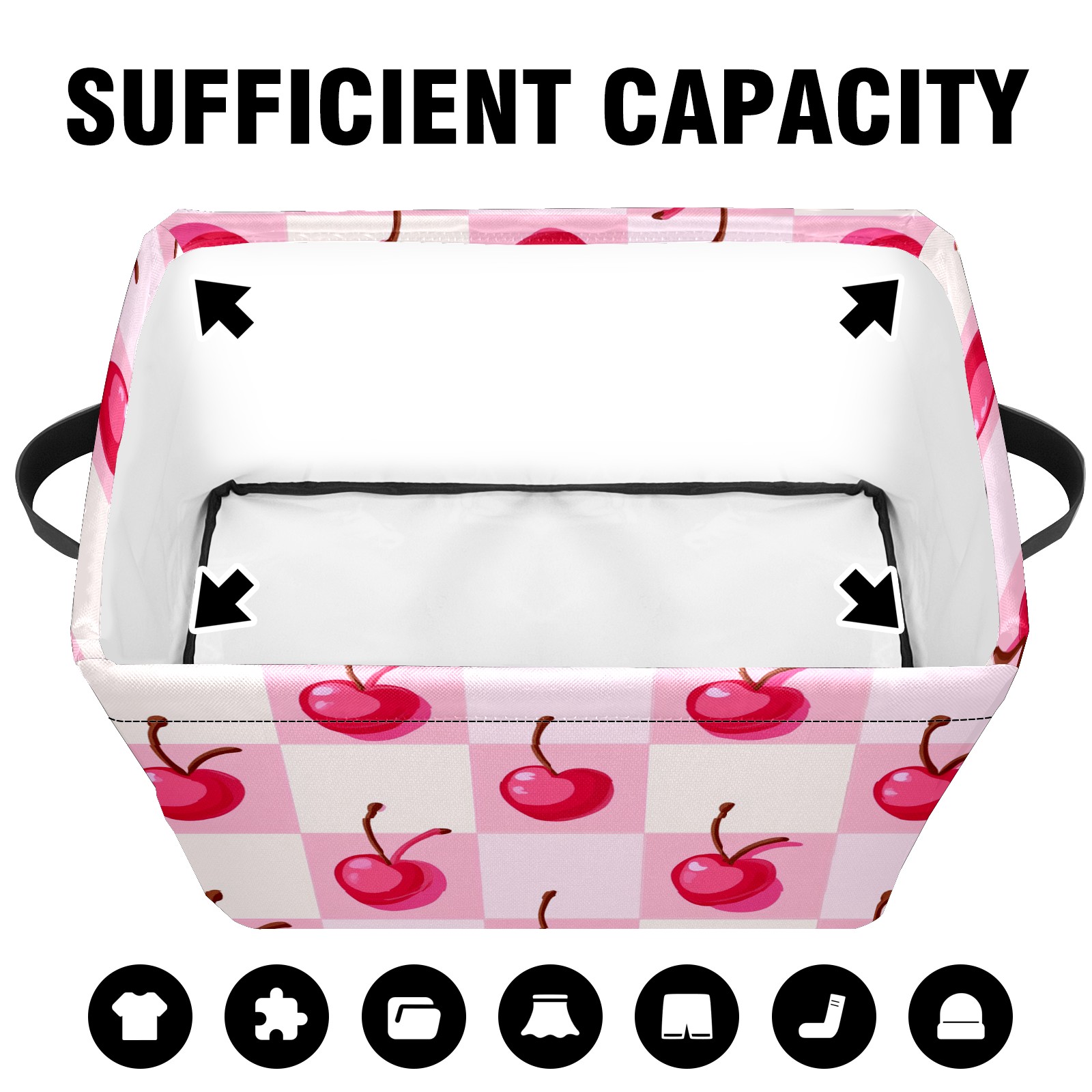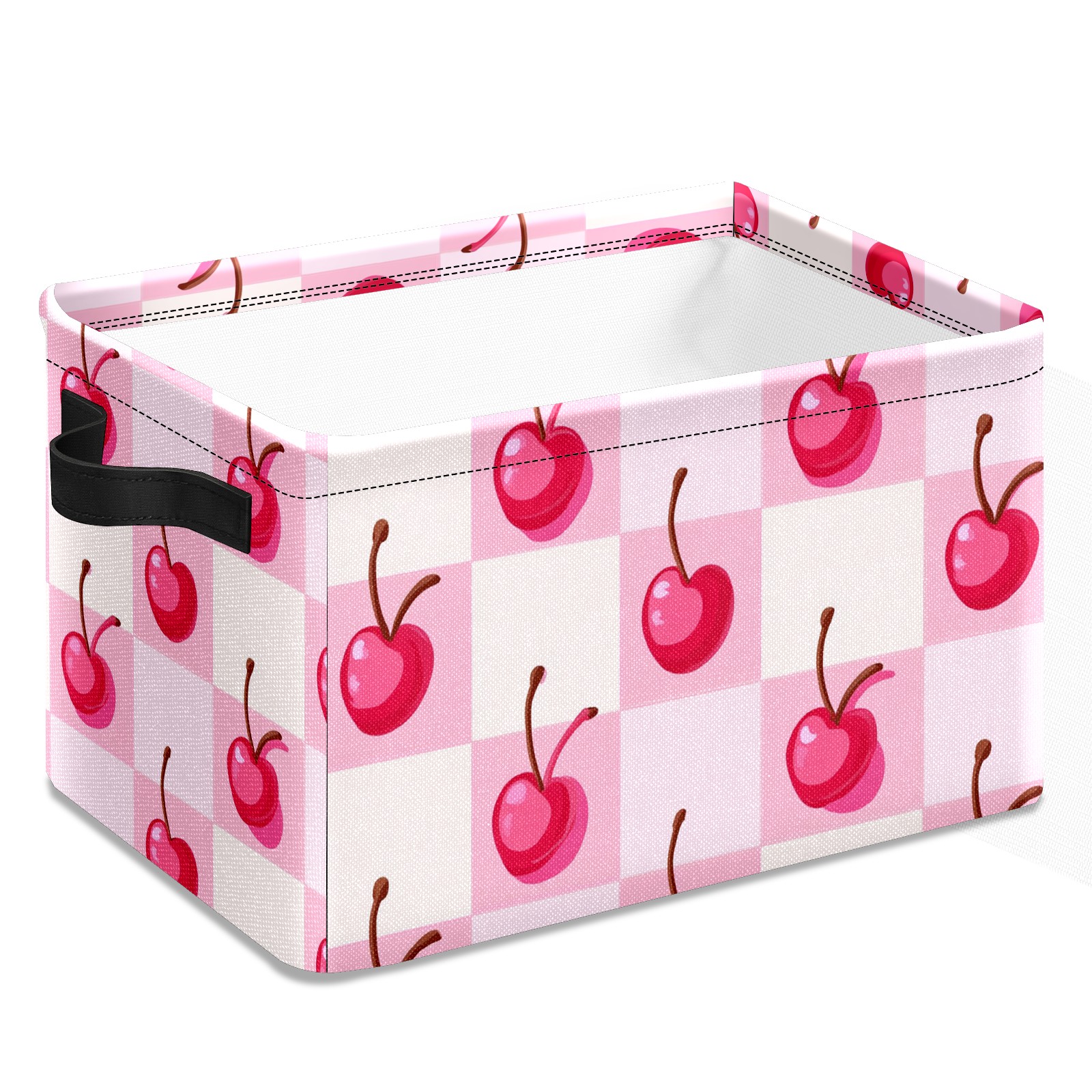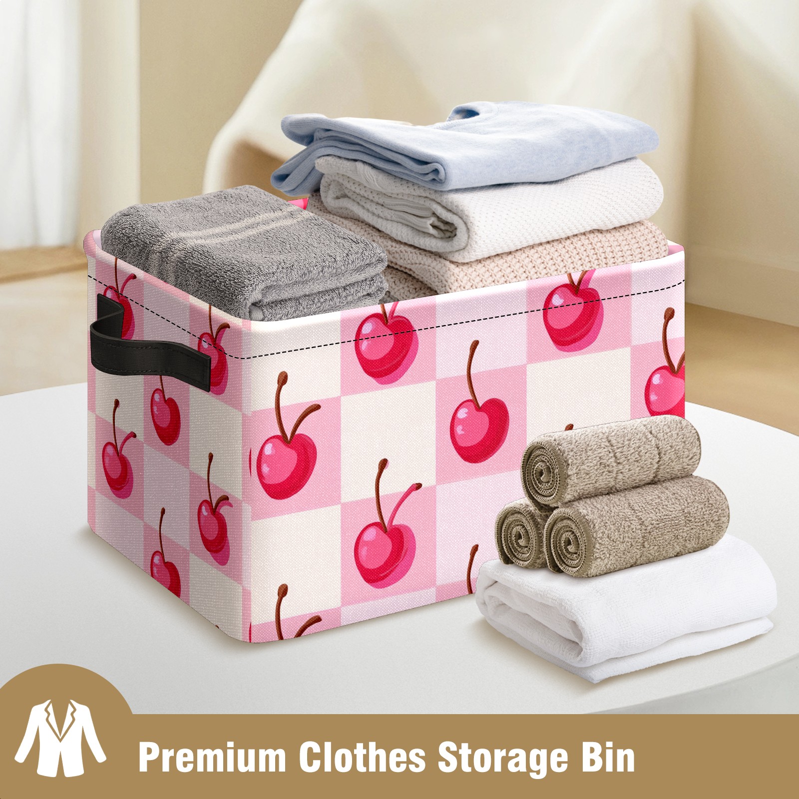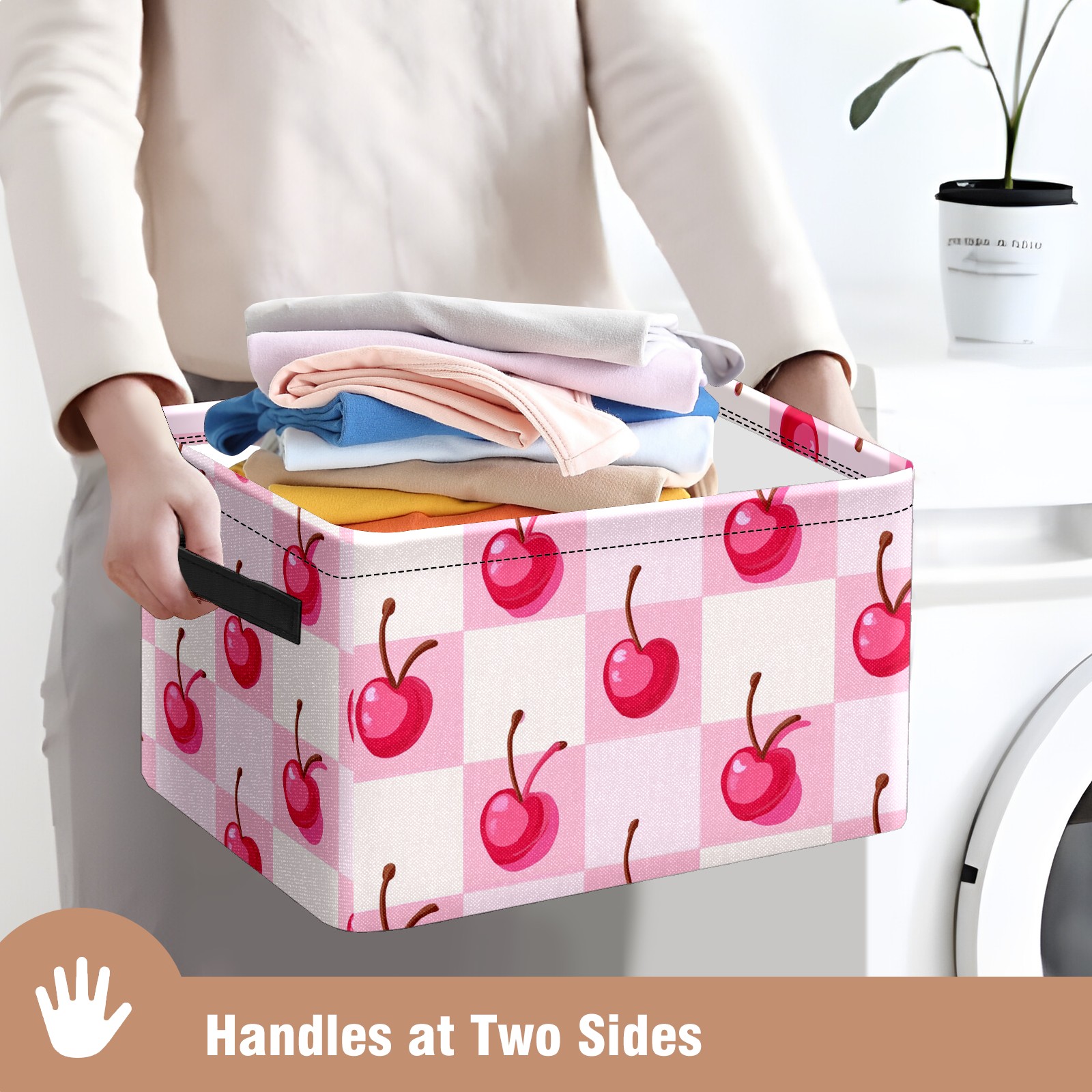 Foldable and Stackable Fabric Storage Basket for Home Organization with Handles, Decorative Closet Bins for Shelves and Laundry Storage( Pink Cherry)