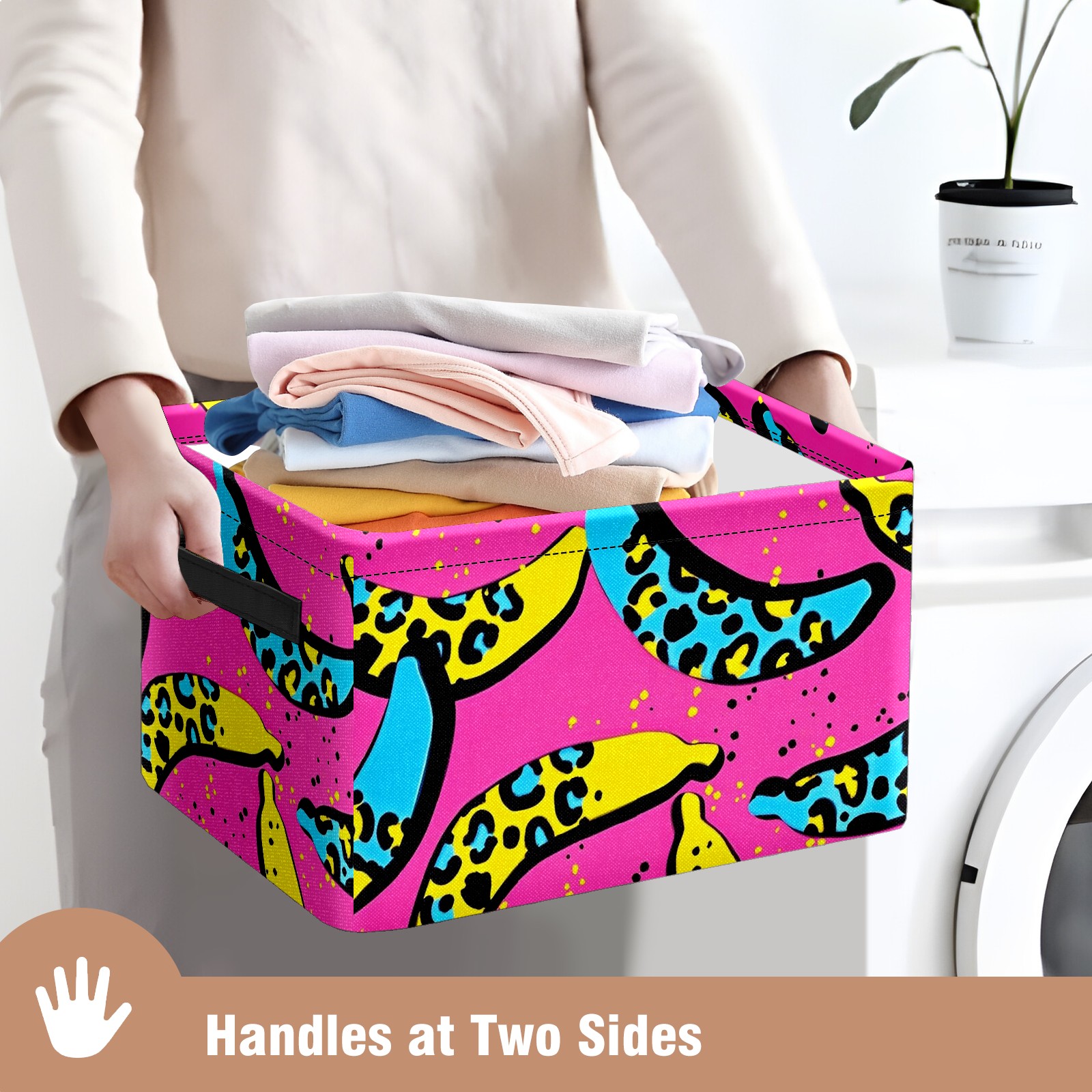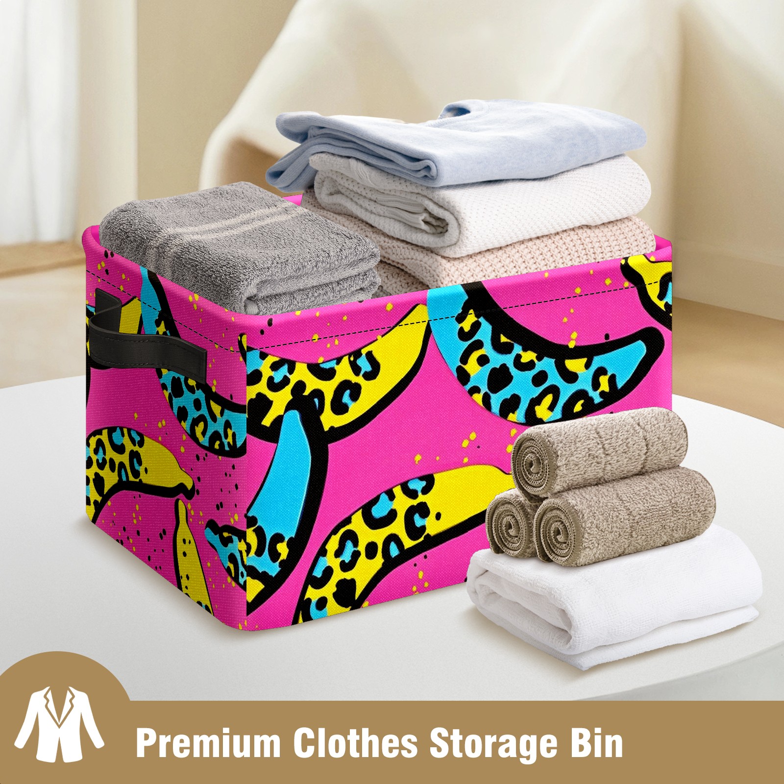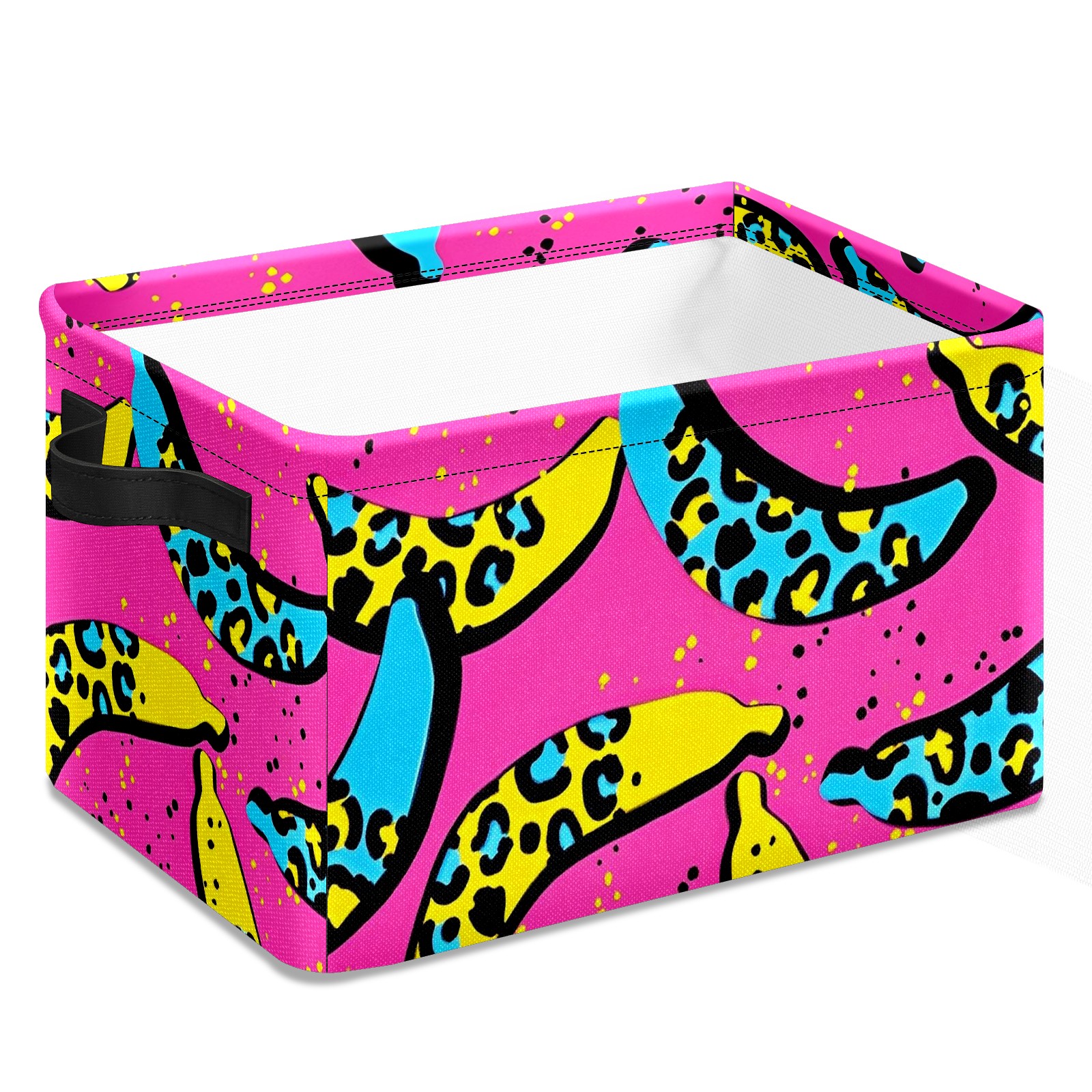 Foldable and Stackable Fabric Storage Basket for Home Organization with Handles, Decorative Closet Bins for Shelves and Laundry Storage( Leopard Banana)
