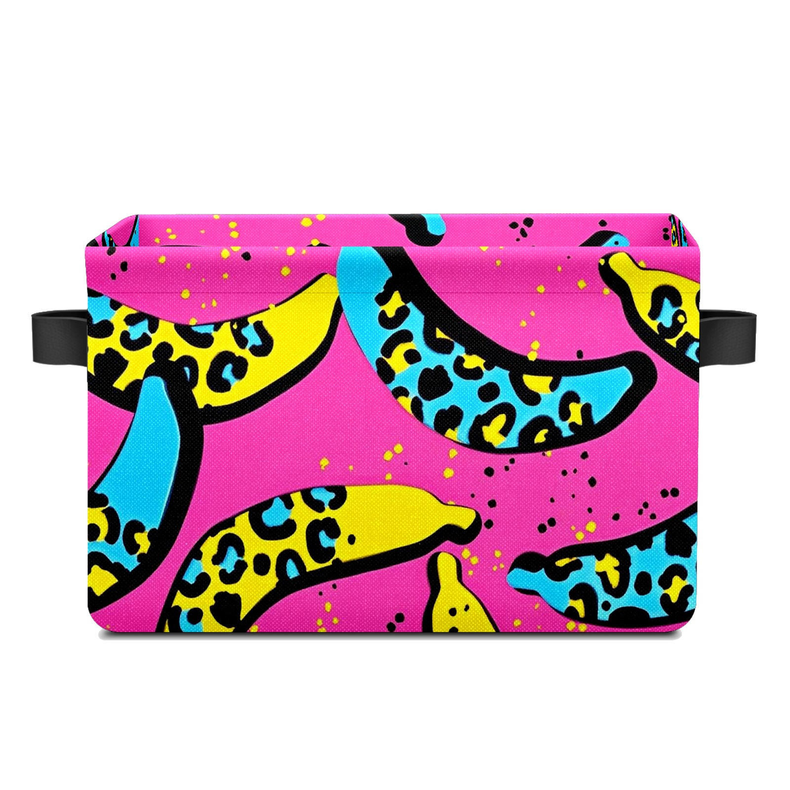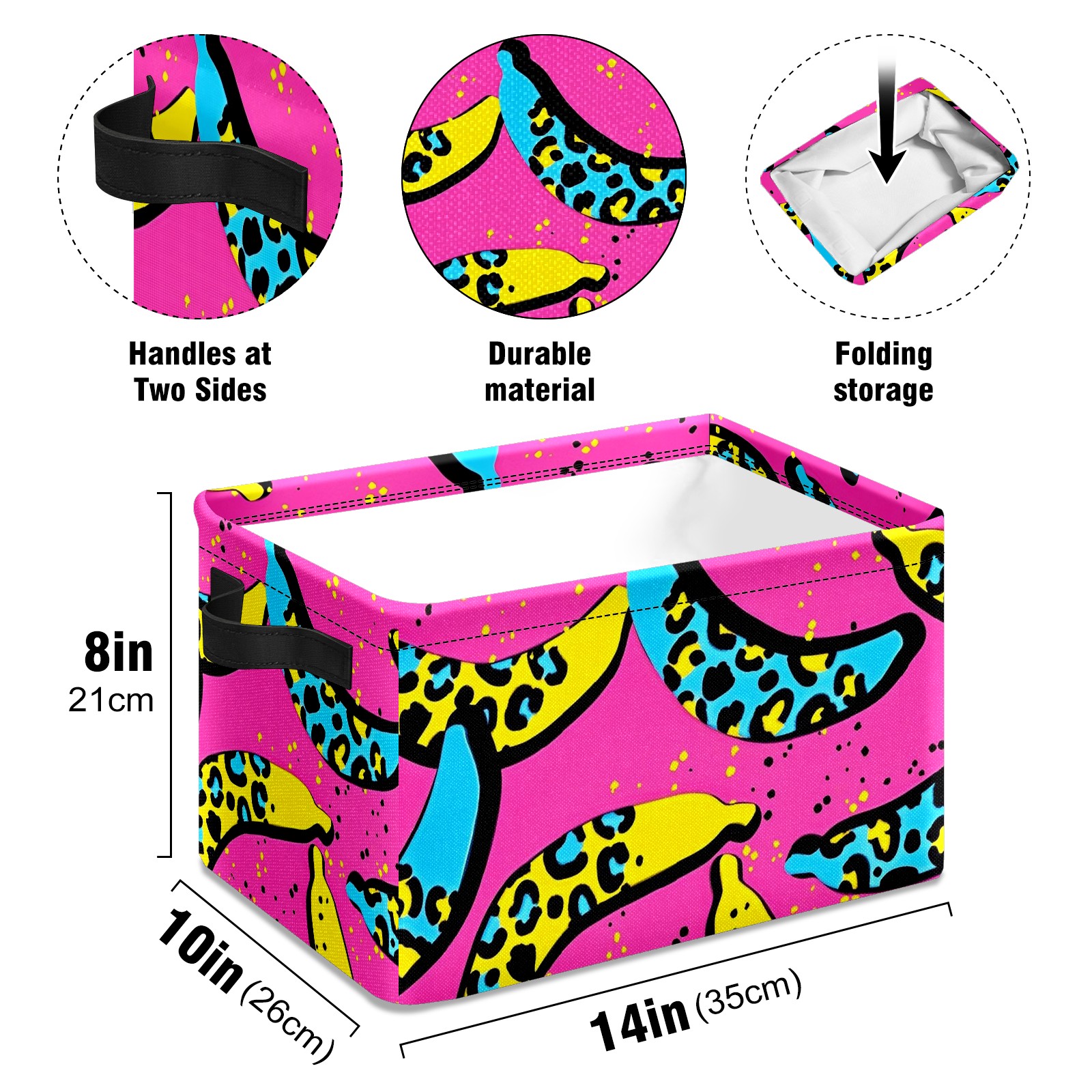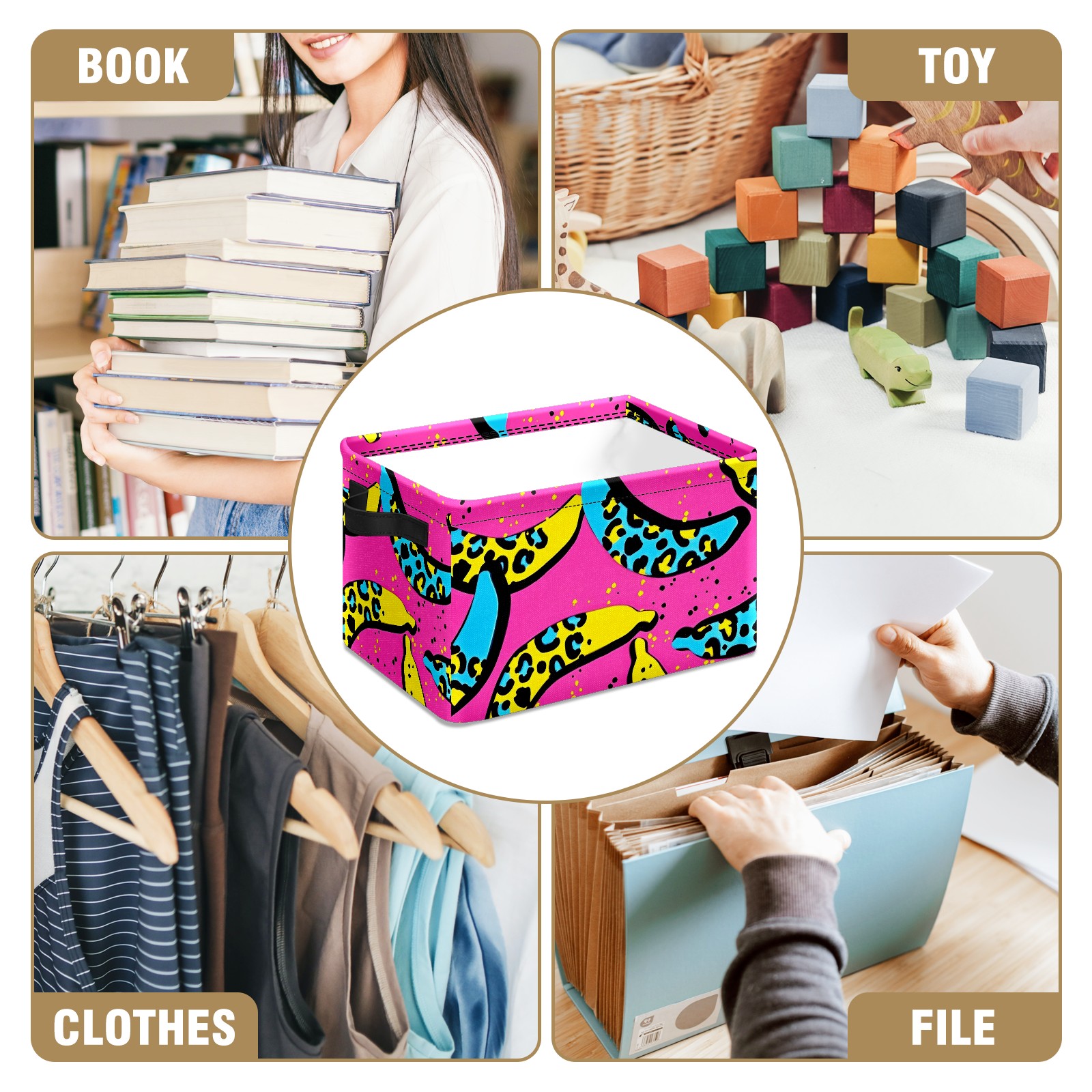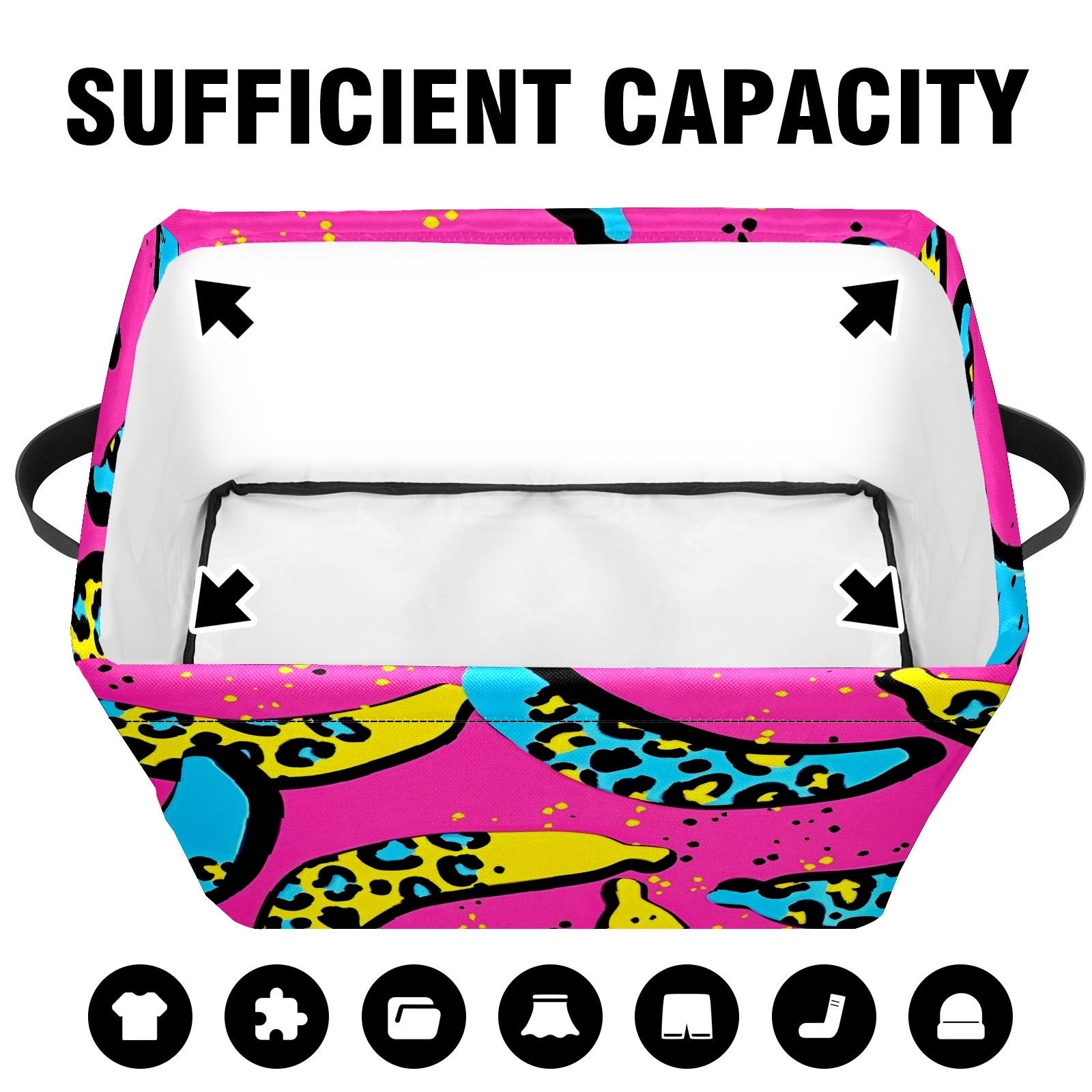 Foldable and Stackable Fabric Storage Basket for Home Organization with Handles, Decorative Closet Bins for Shelves and Laundry Storage( Leopard Banana)