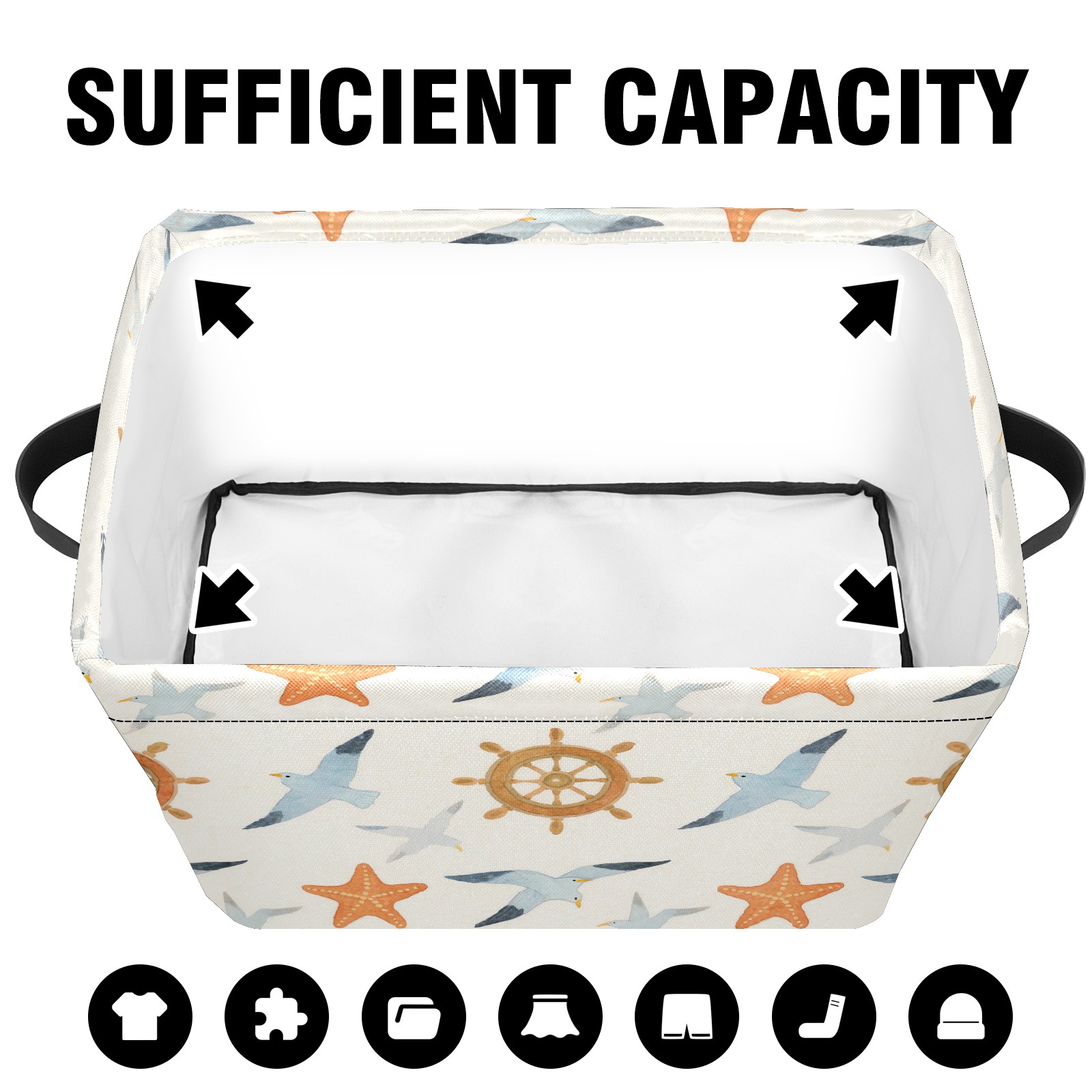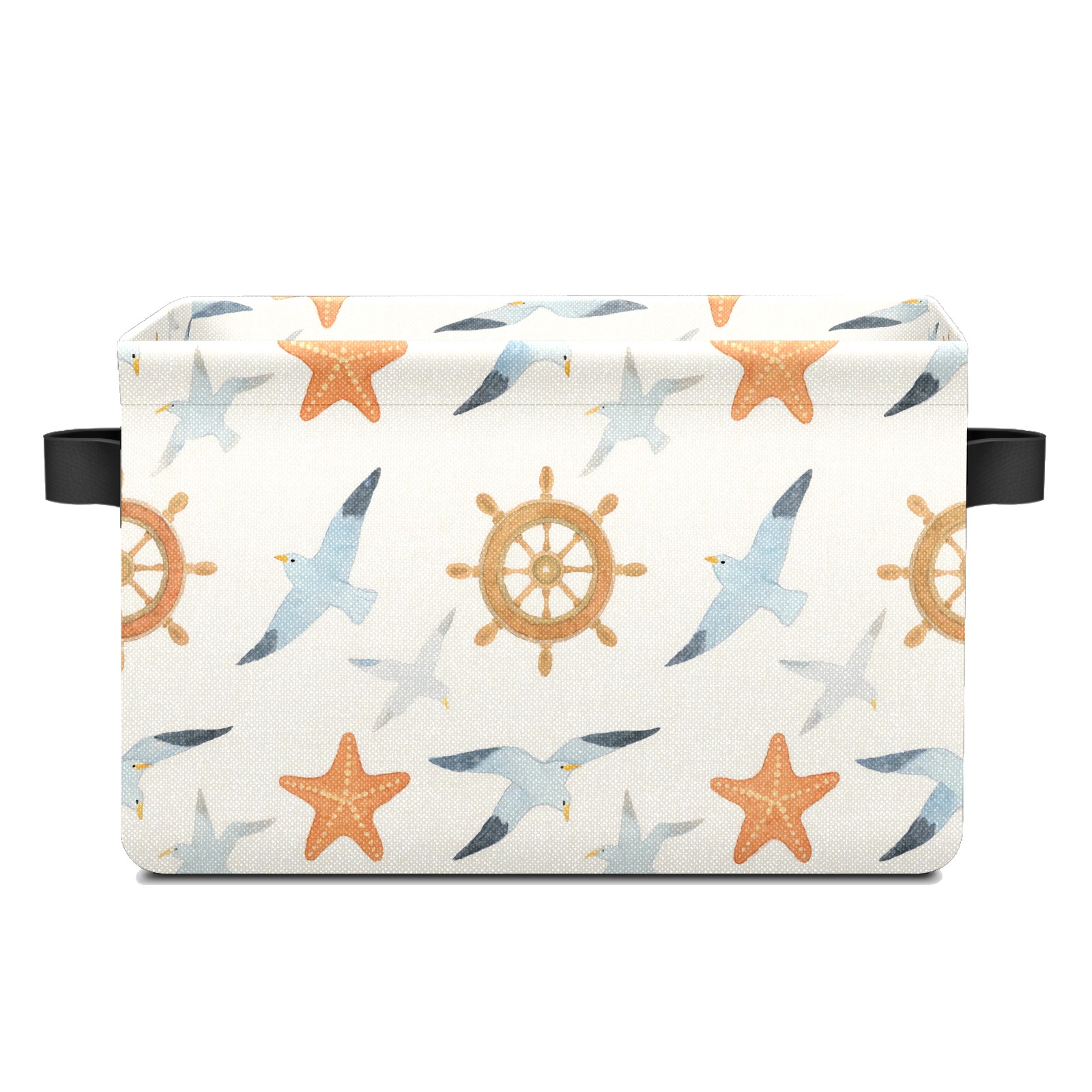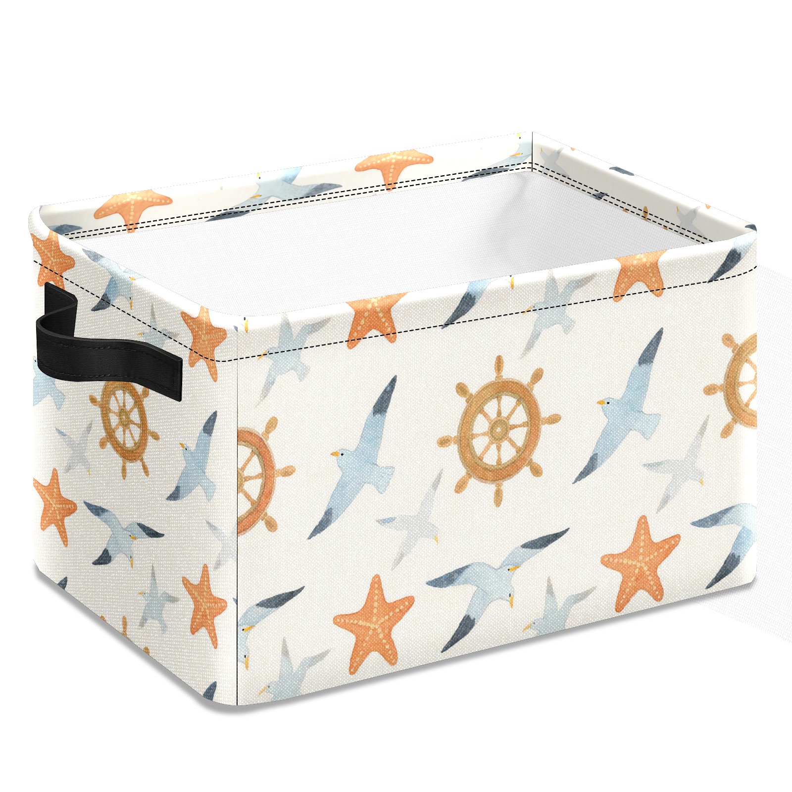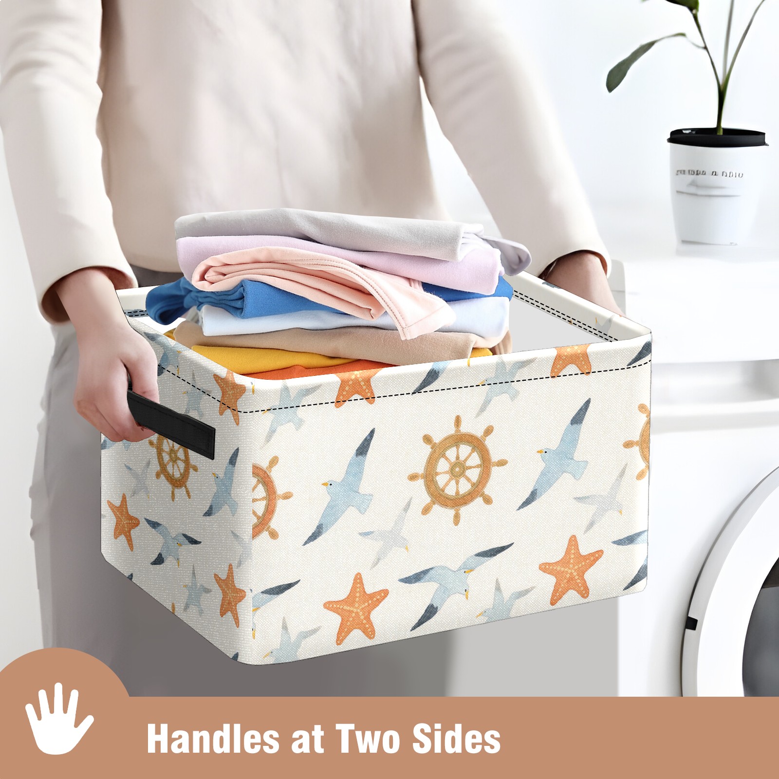 Foldable and Stackable Fabric Storage Basket for Home Organization with Handles, Decorative Closet Bins for Shelves and Laundry Storage( Seagull And Starfish)