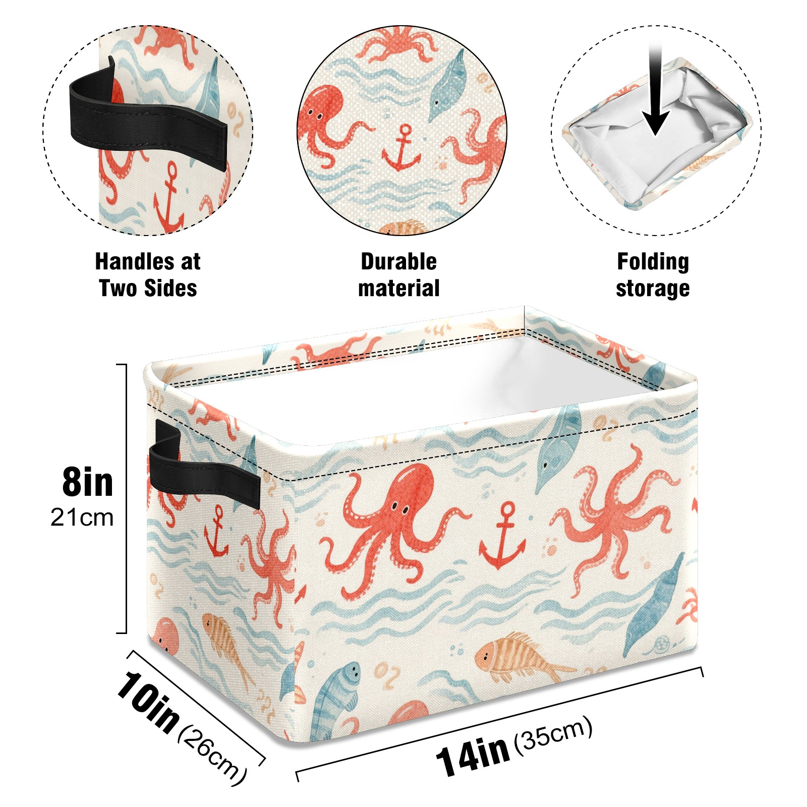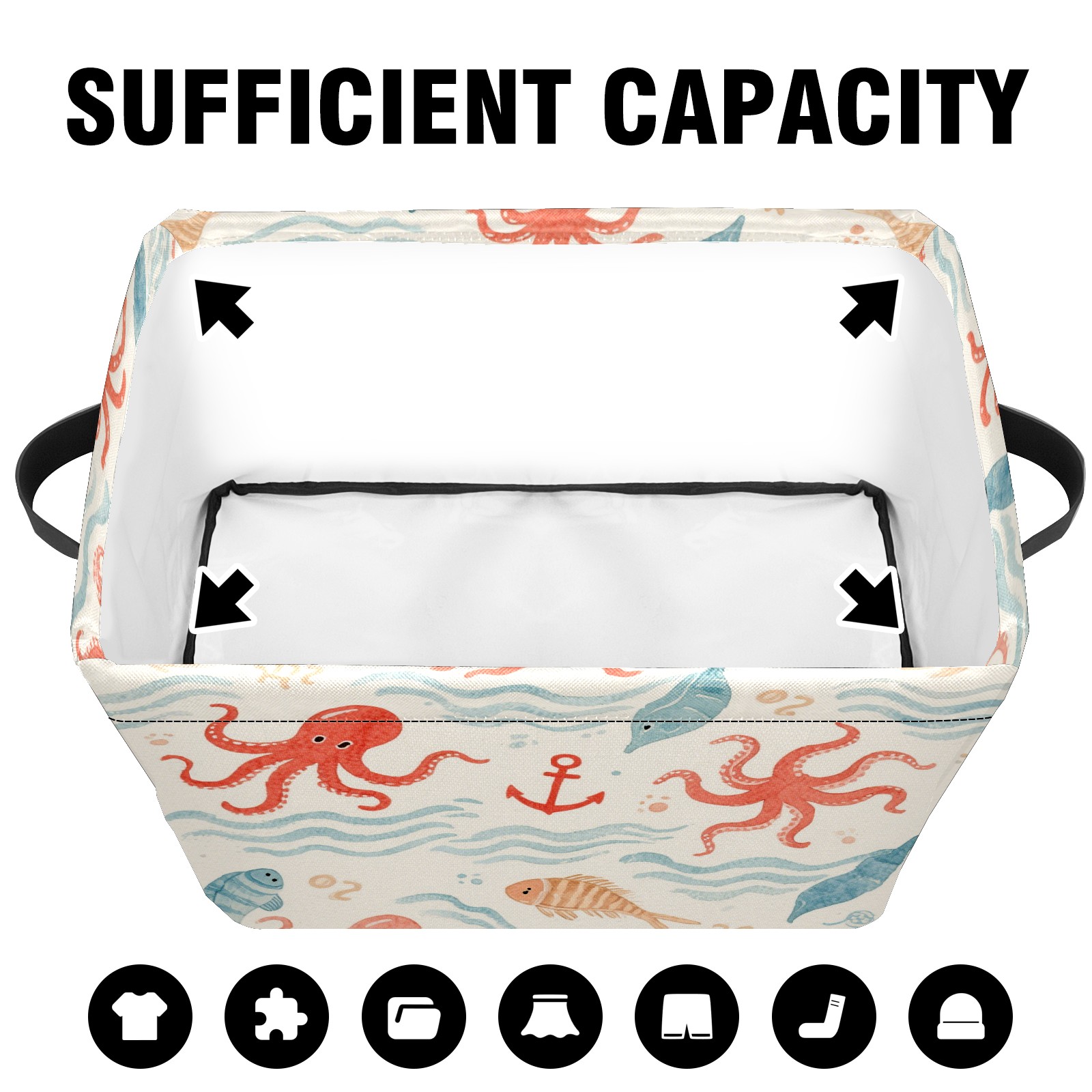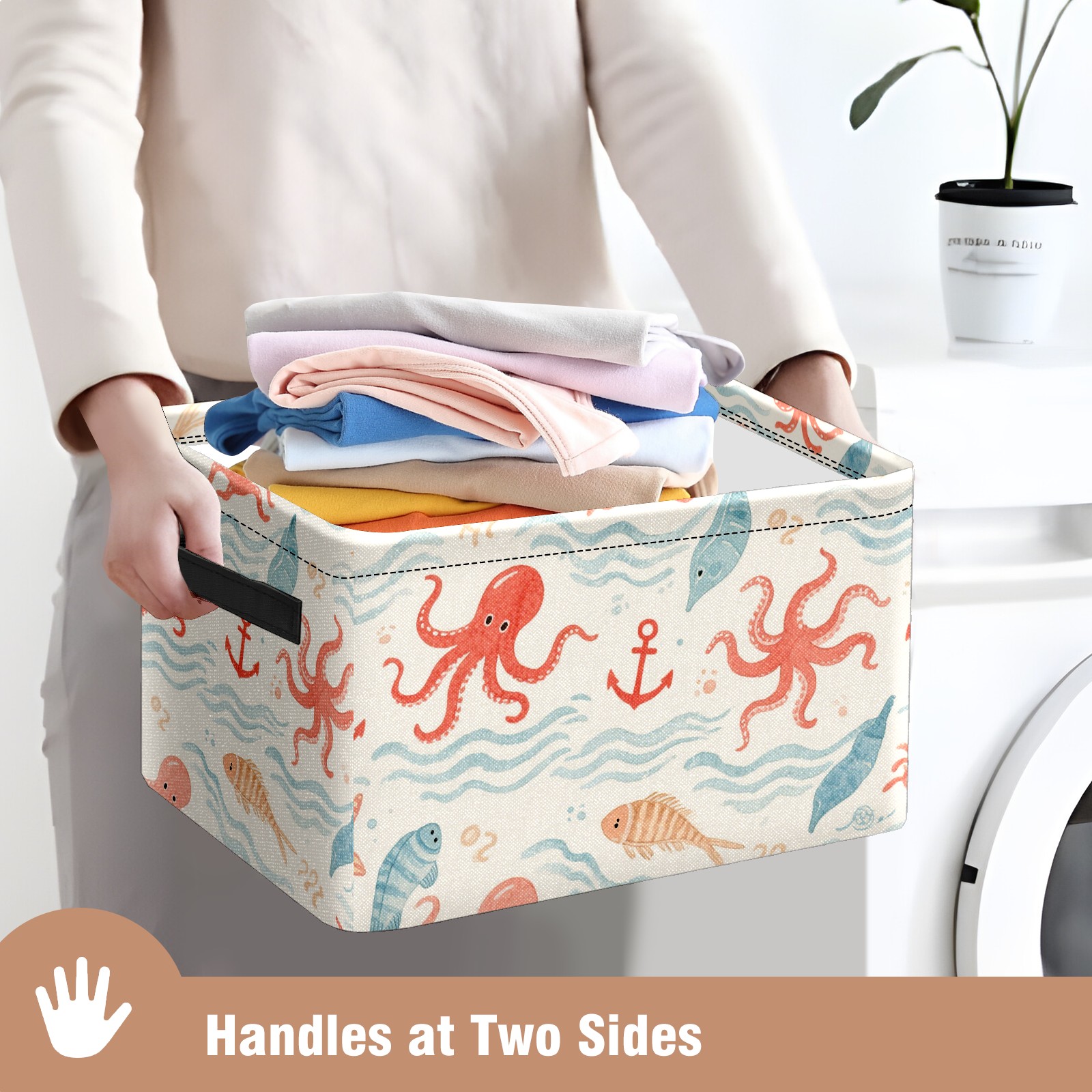 Foldable and Stackable Fabric Storage Basket for Home Organization with Handles, Decorative Closet Bins for Shelves and Laundry Storage( Fish And Octopus)