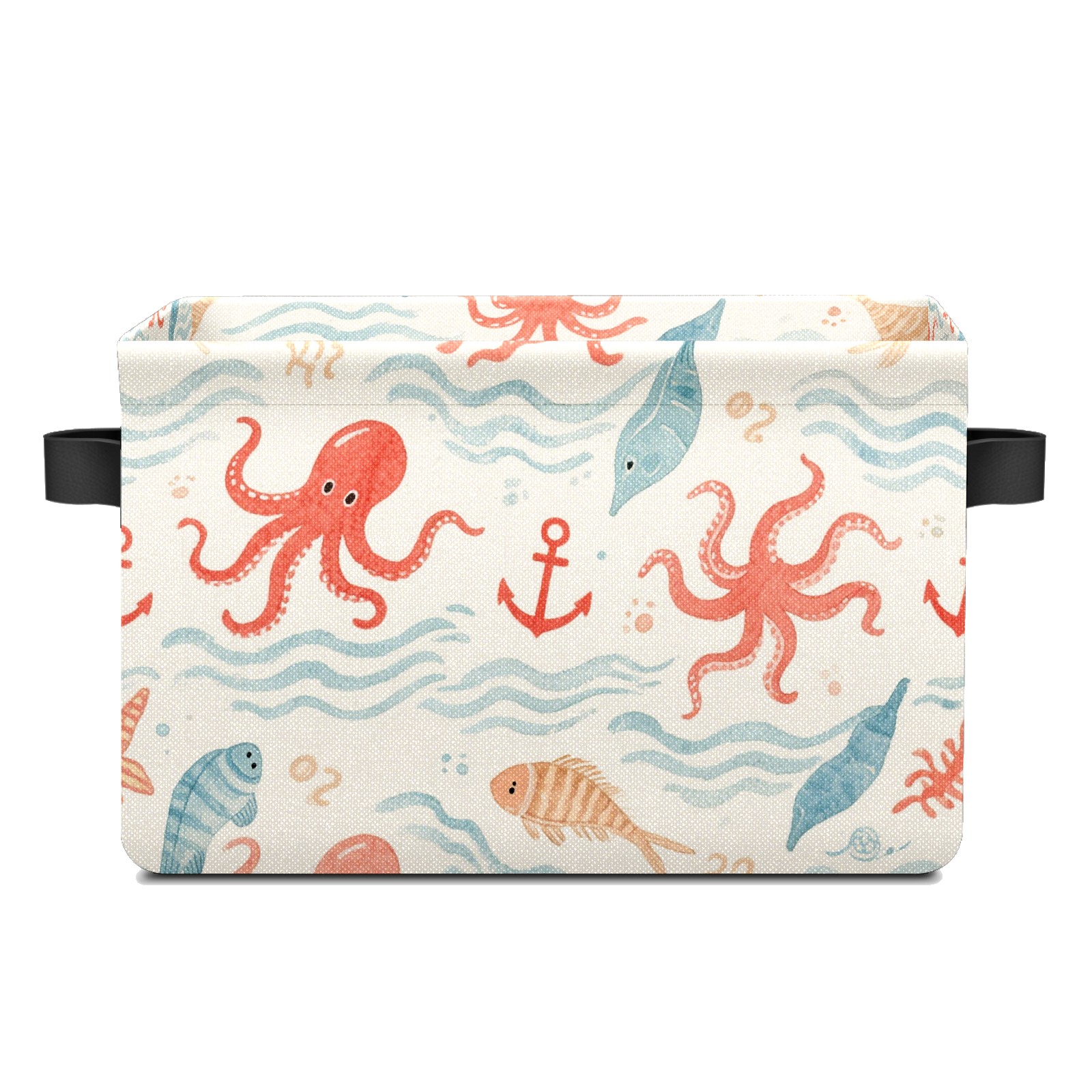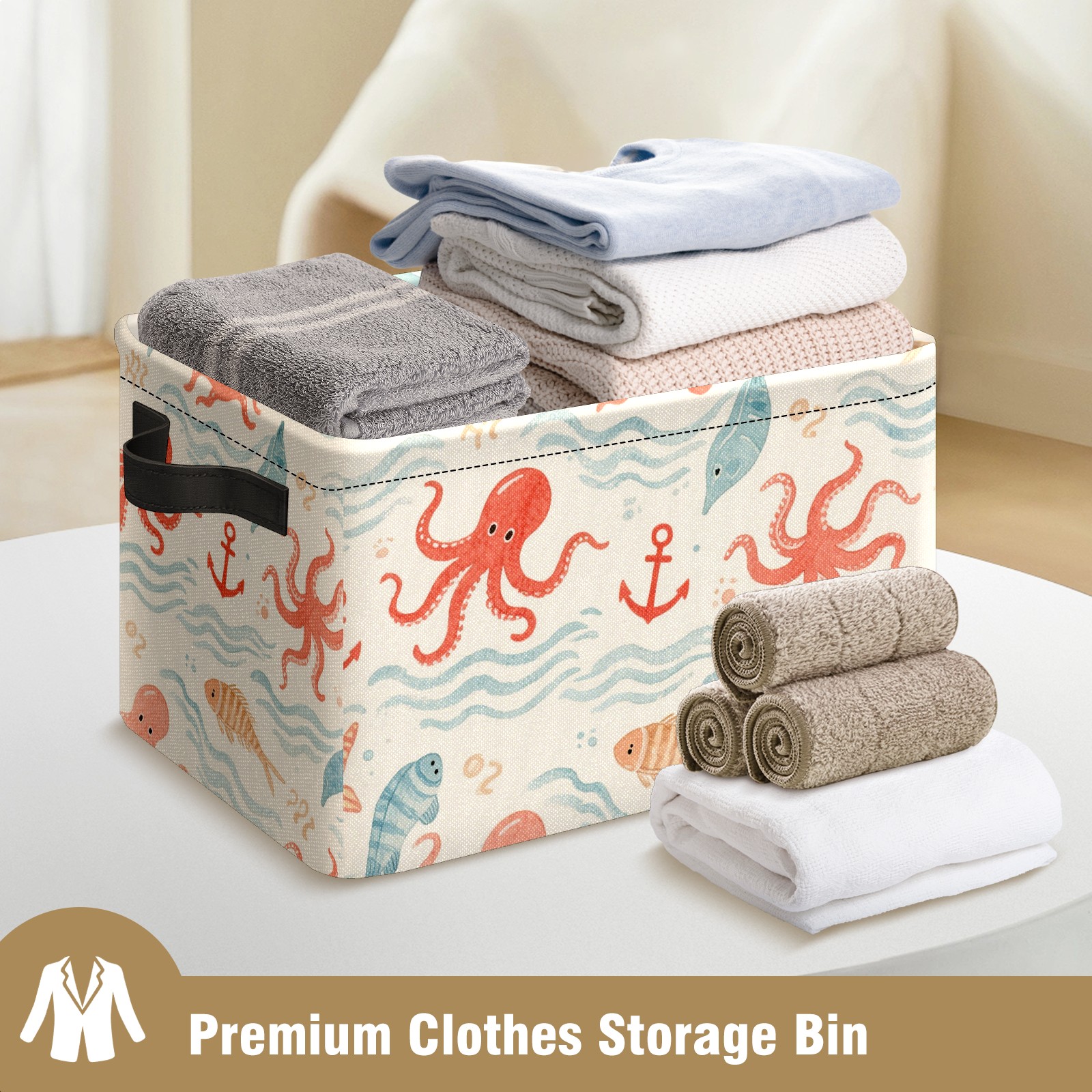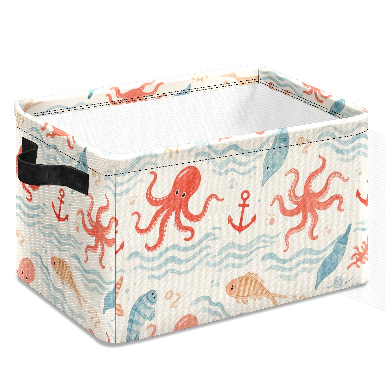 Foldable and Stackable Fabric Storage Basket for Home Organization with Handles, Decorative Closet Bins for Shelves and Laundry Storage( Fish And Octopus)