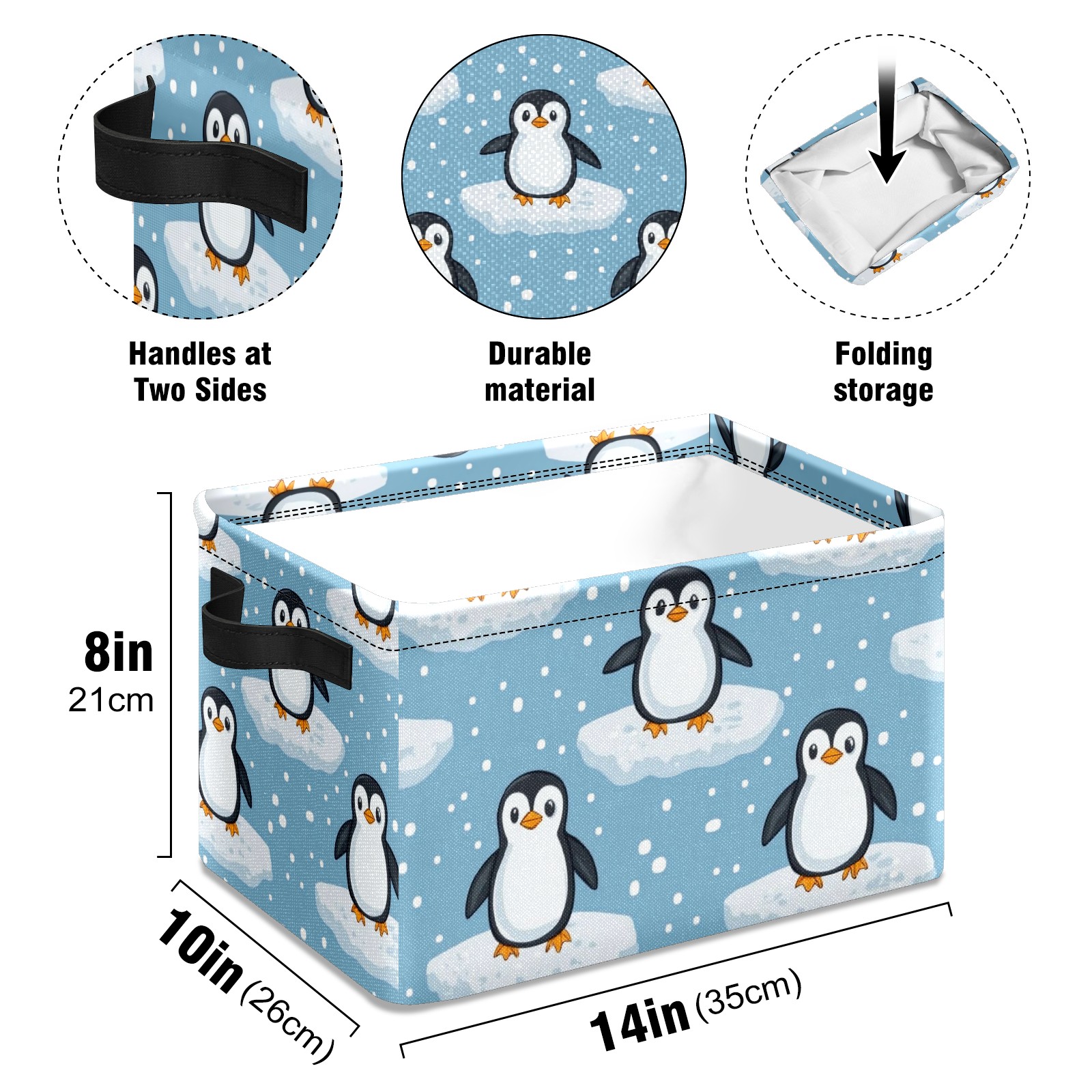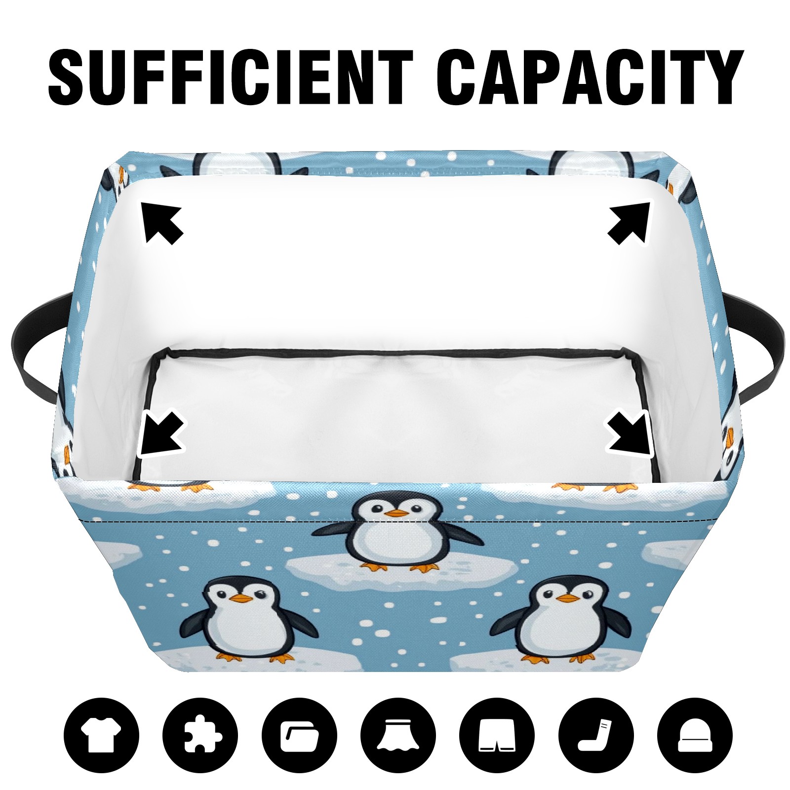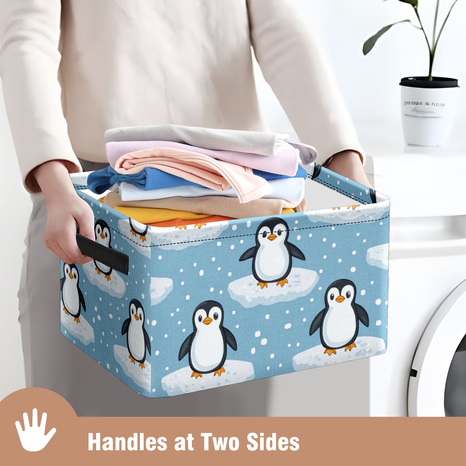 Foldable and Stackable Fabric Storage Basket for Home Organization with Handles, Decorative Closet Bins for Shelves and Laundry Storage( Cute Penguins)