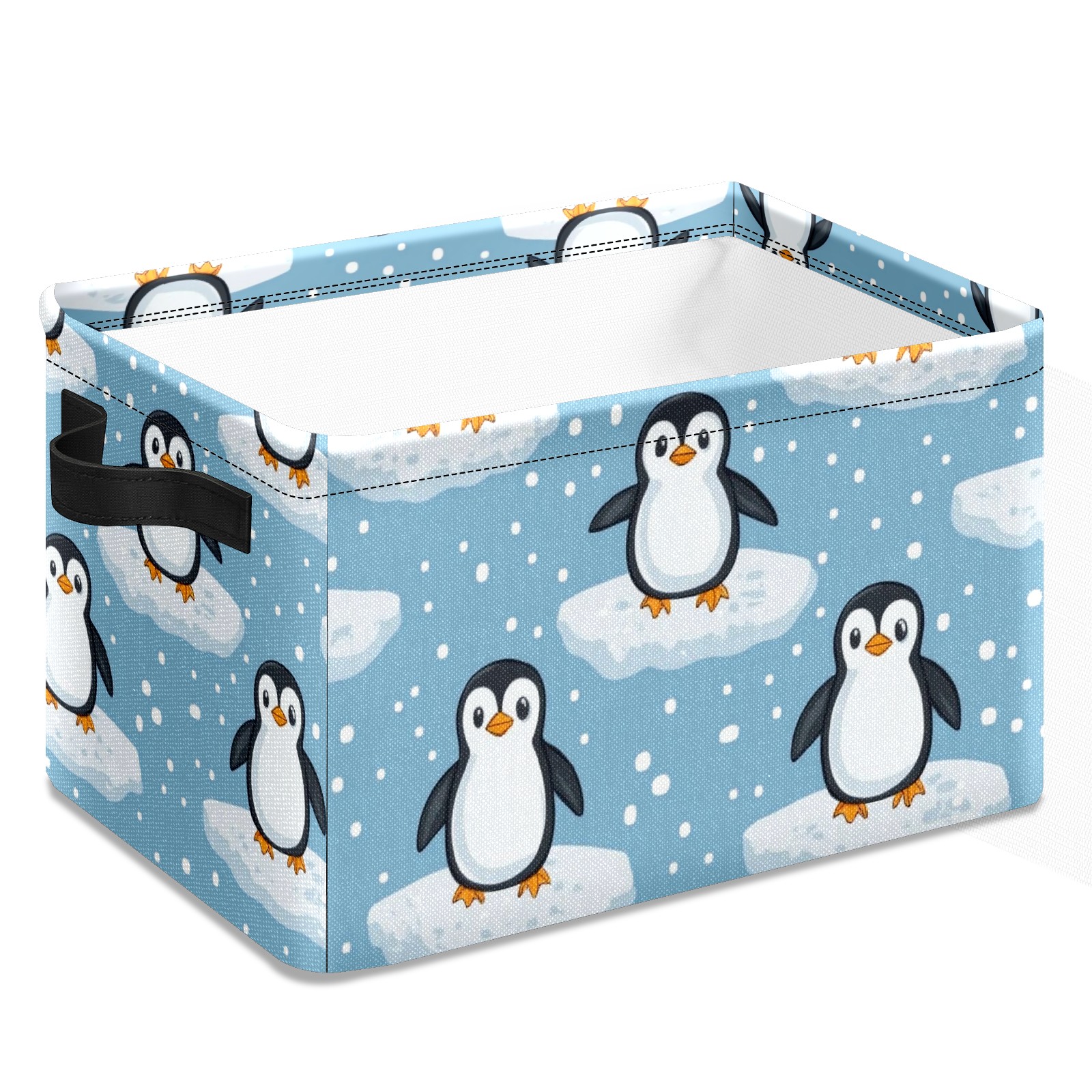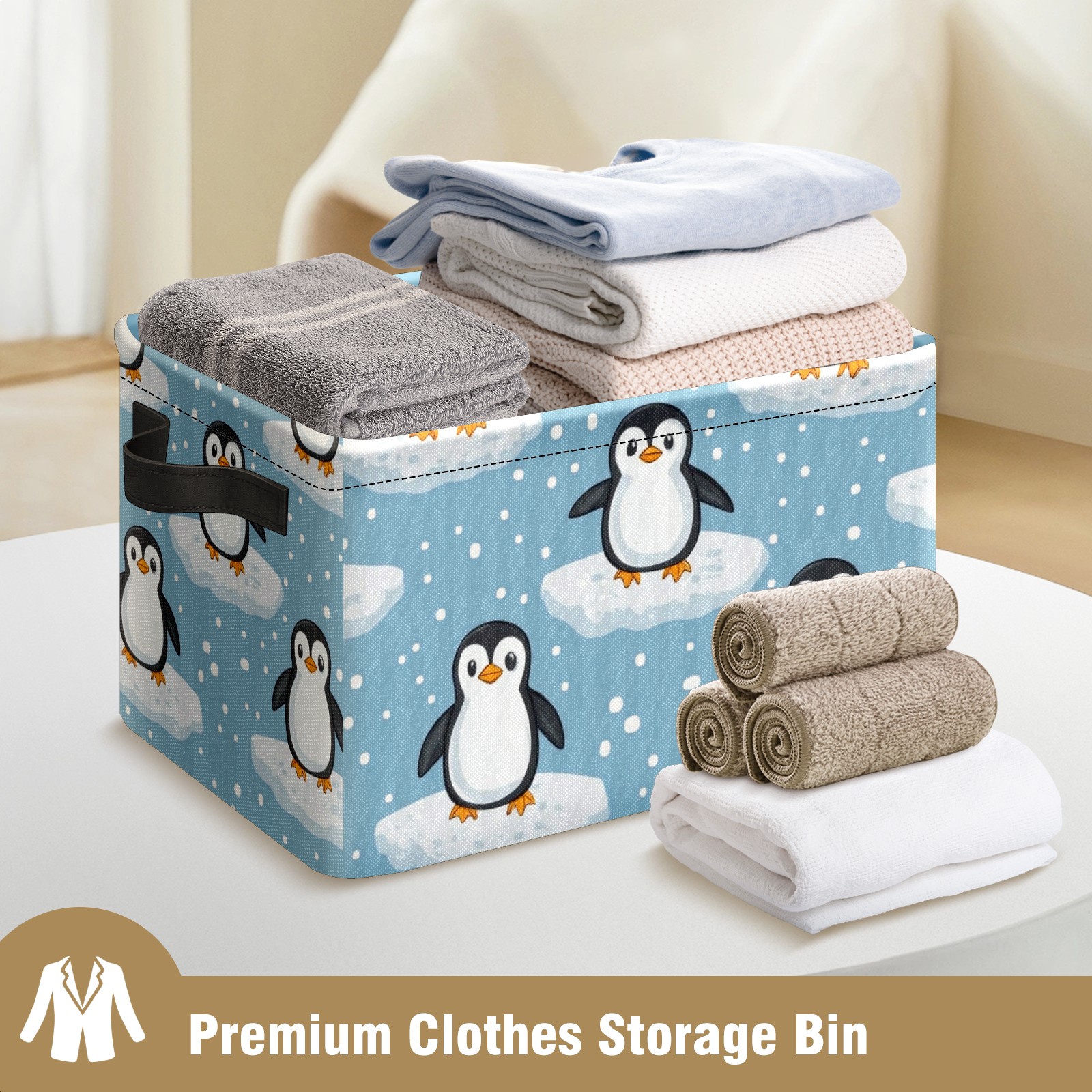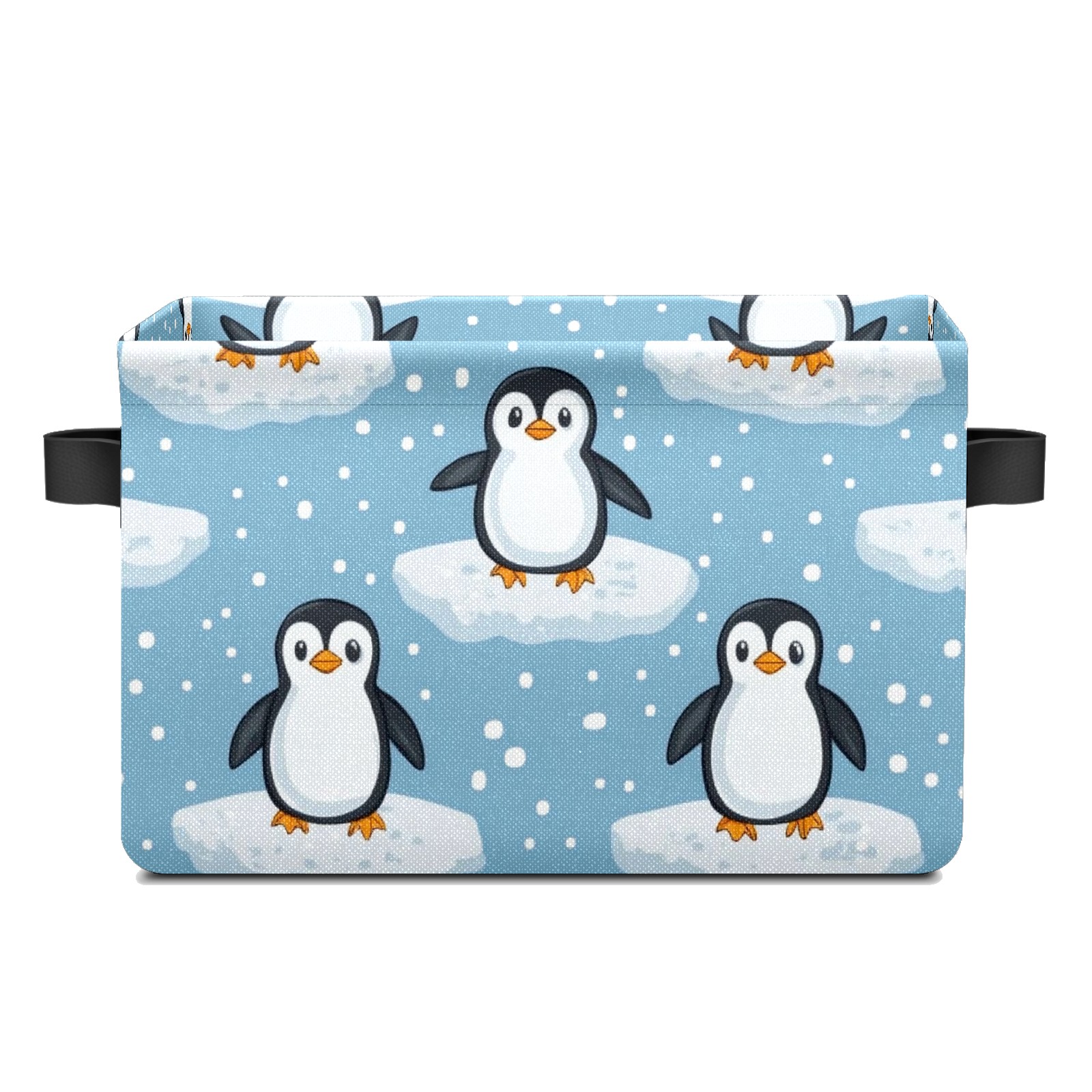 Foldable and Stackable Fabric Storage Basket for Home Organization with Handles, Decorative Closet Bins for Shelves and Laundry Storage( Cute Penguins)