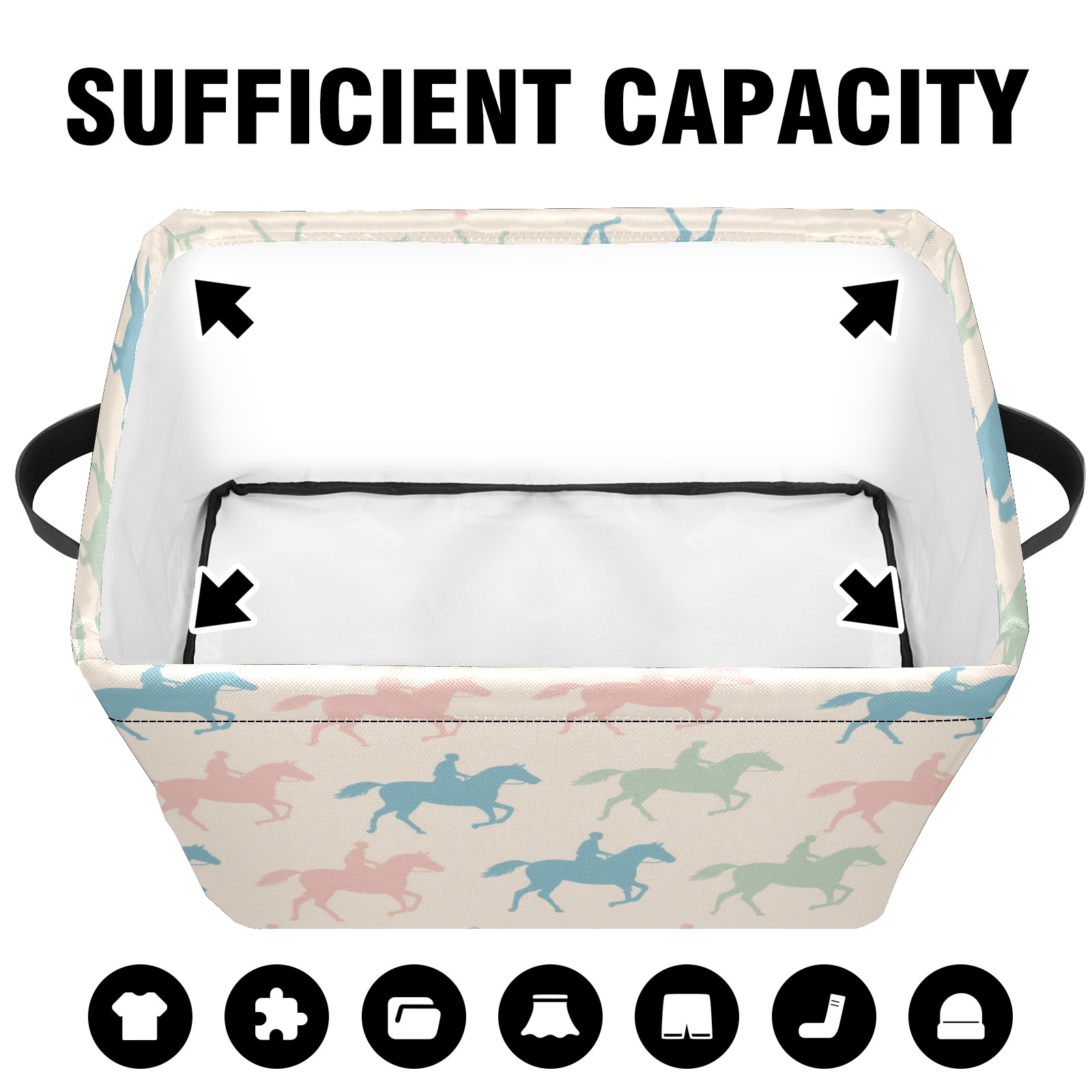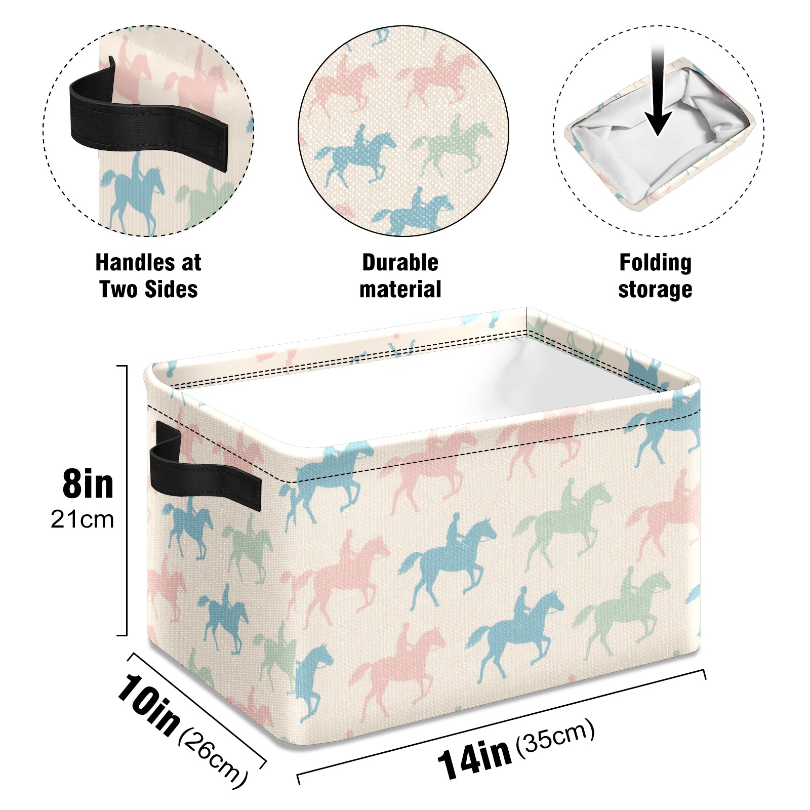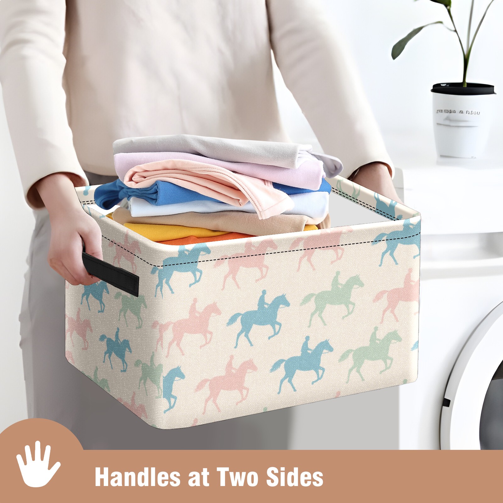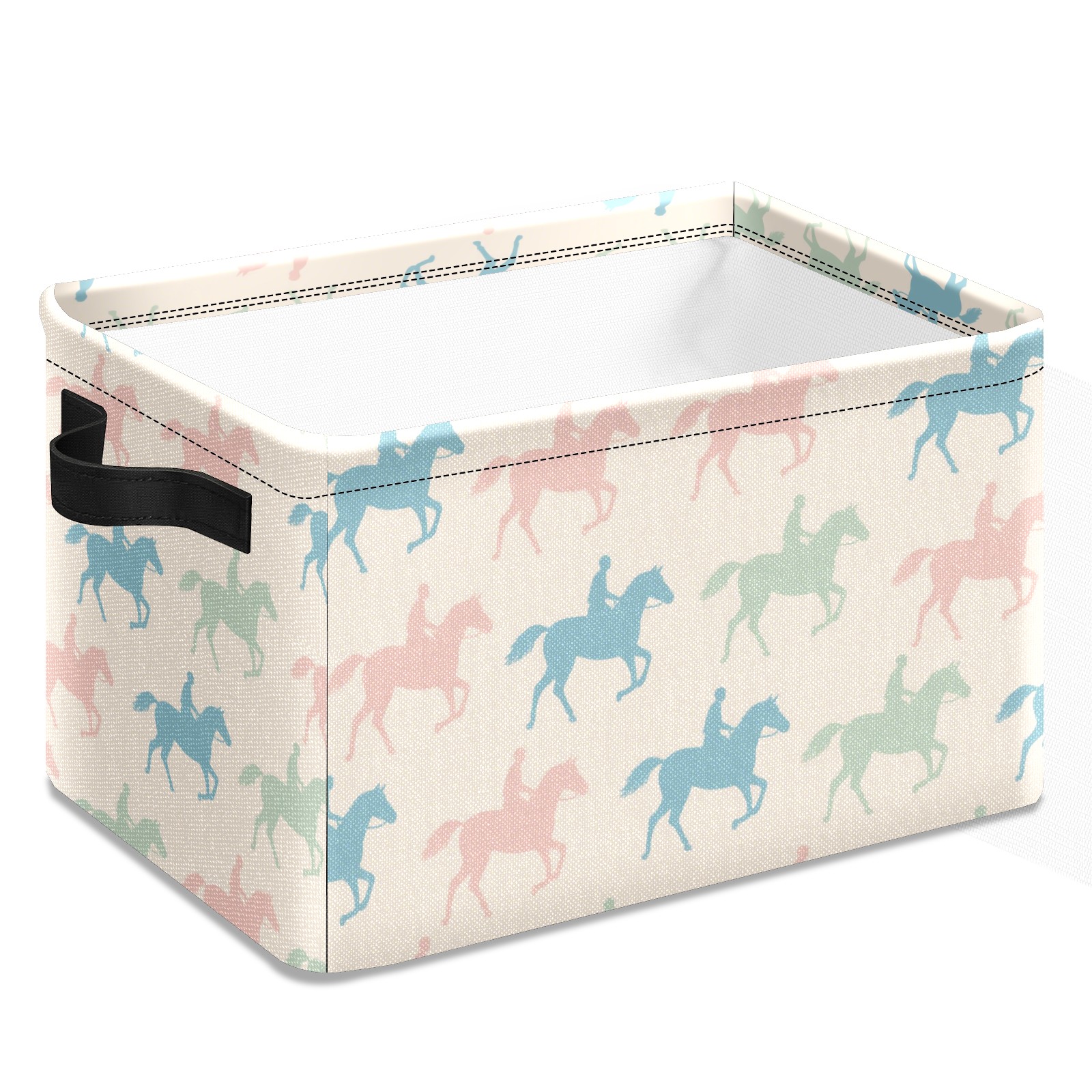 Foldable and Stackable Fabric Storage Basket for Home Organization with Handles, Decorative Closet Bins for Shelves and Laundry Storage( Colorful Horse)
