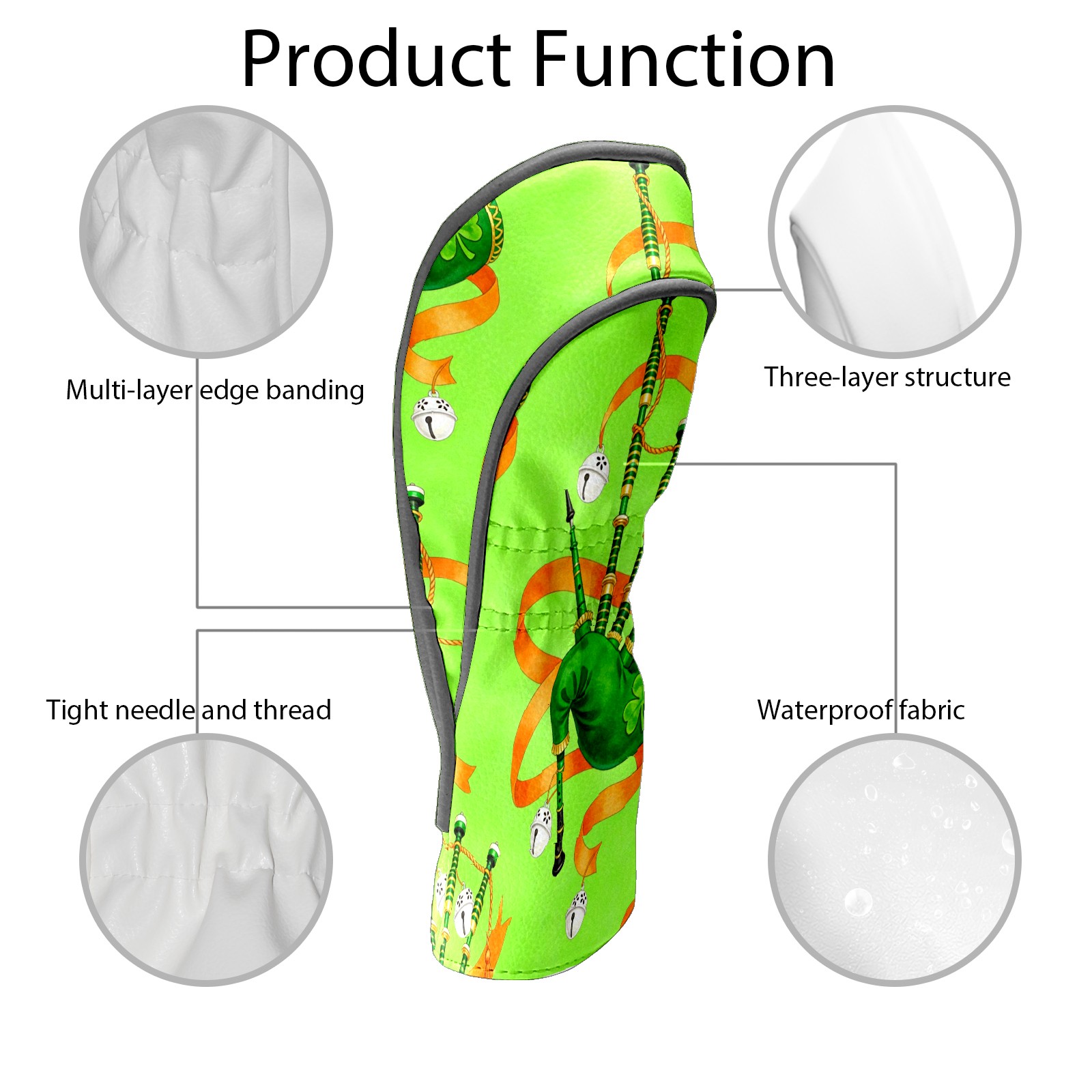 Golf Club Head Cover Waterproof Leather for Driver & Fairway Wood, Driver Headcovers, Golf Accessories for Men Women, Anti-Scratch, Golf Gift for Golfers, 1/3/5 Wood Cover Trifolium 5
