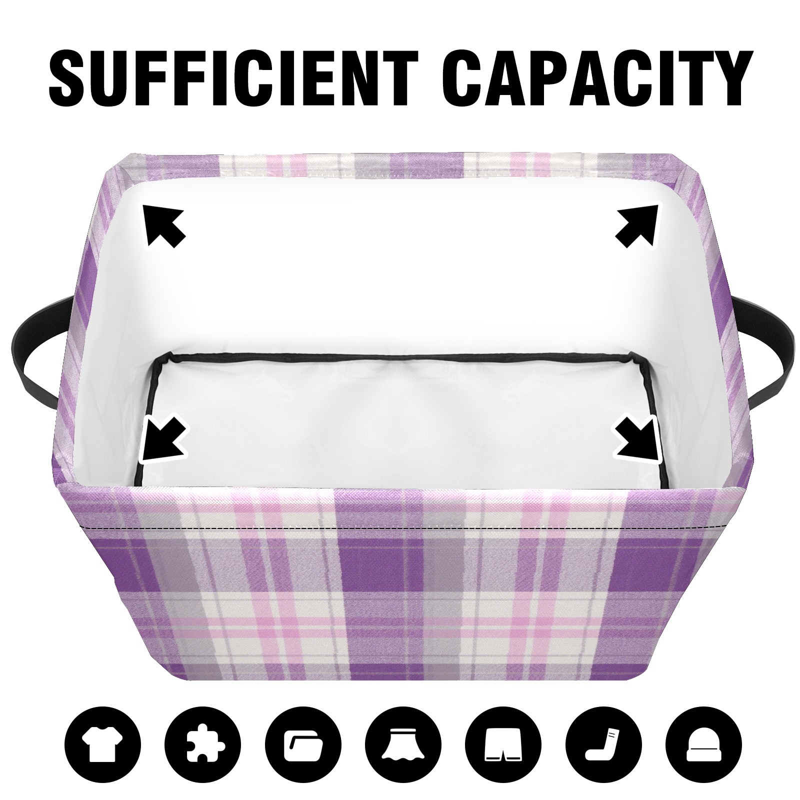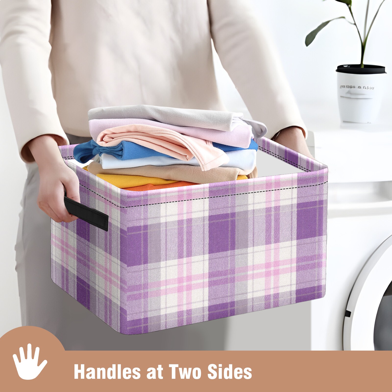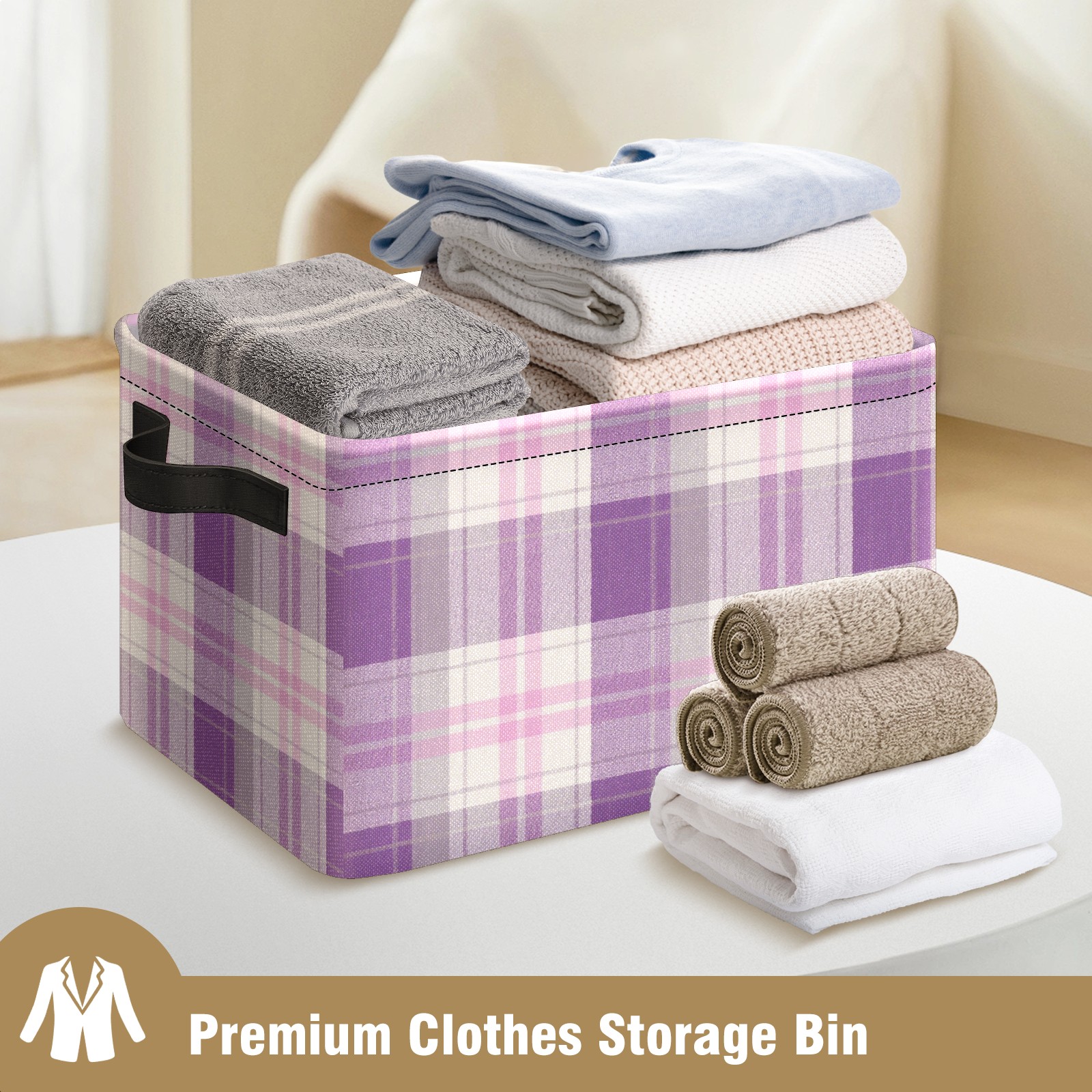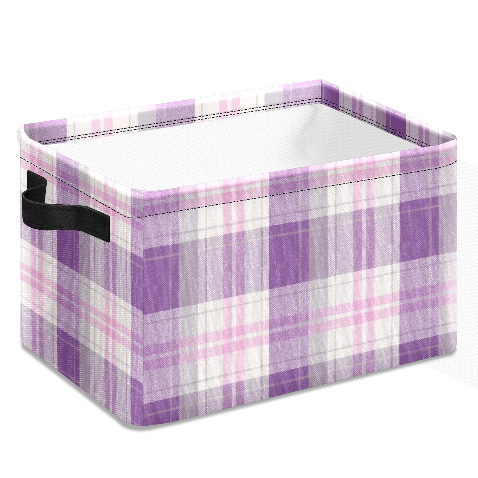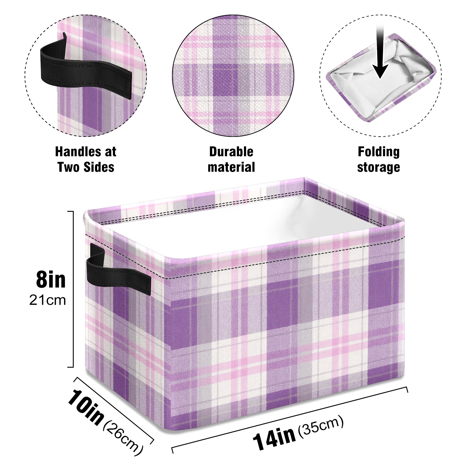 Foldable and Stackable Fabric Storage Basket for Home Organization with Handles, Decorative Closet Bins for Shelves and Laundry Storage( Purple And White Checkered)