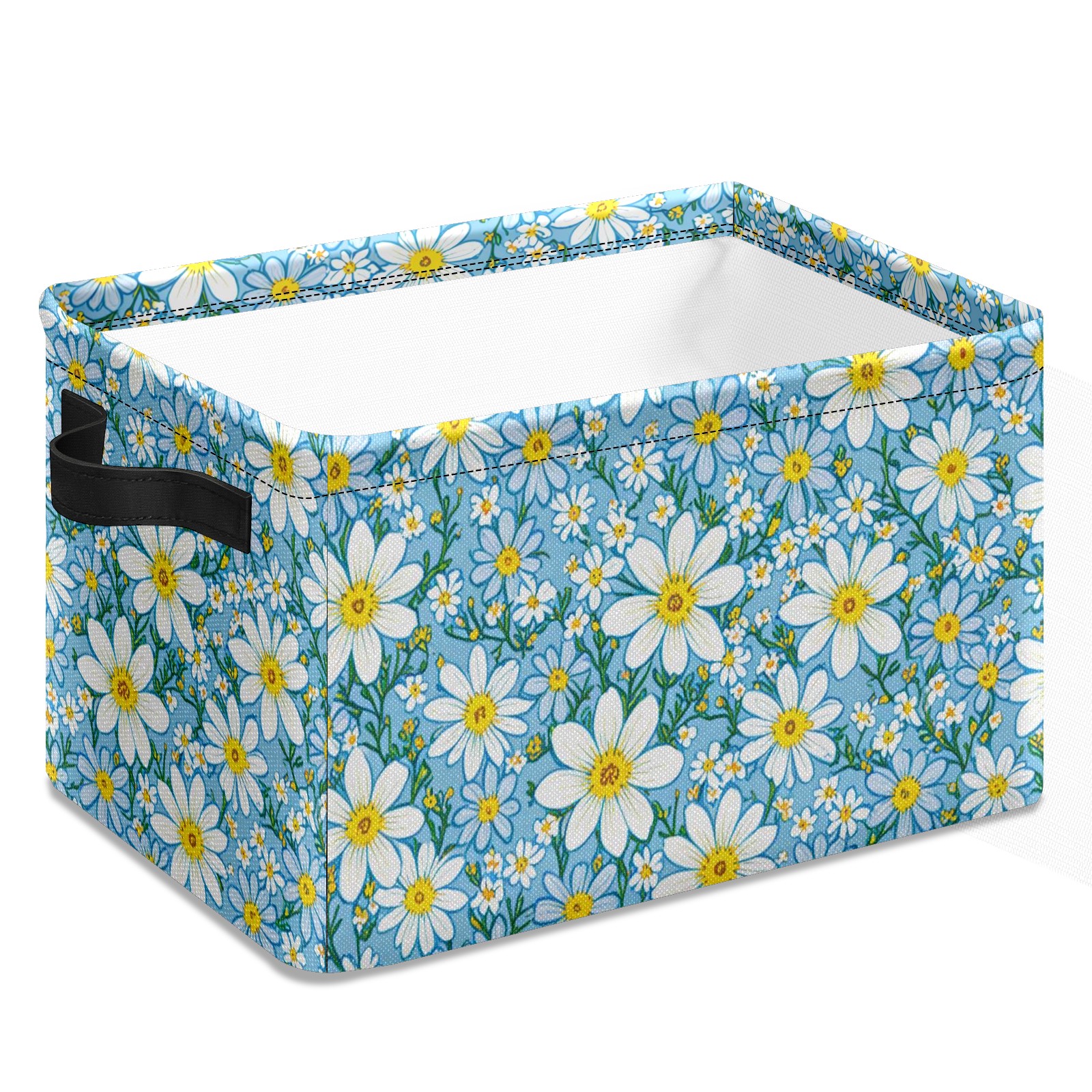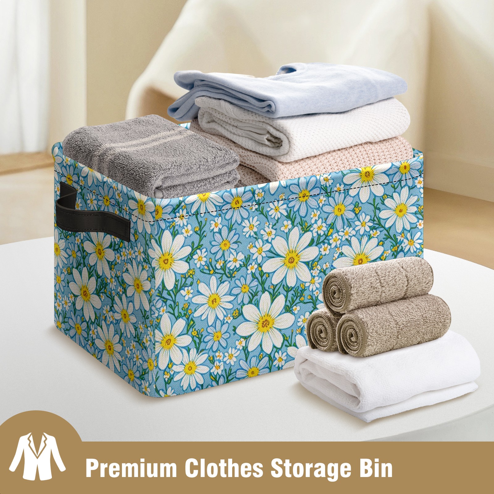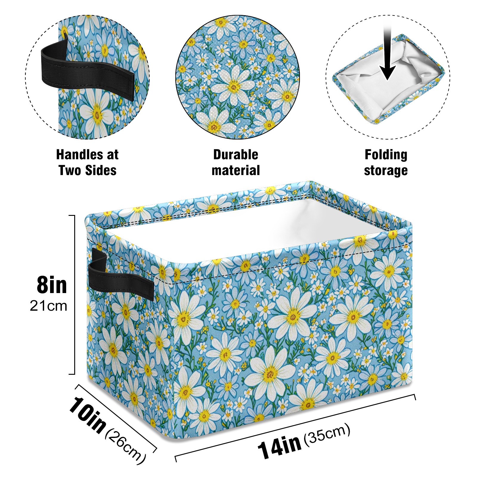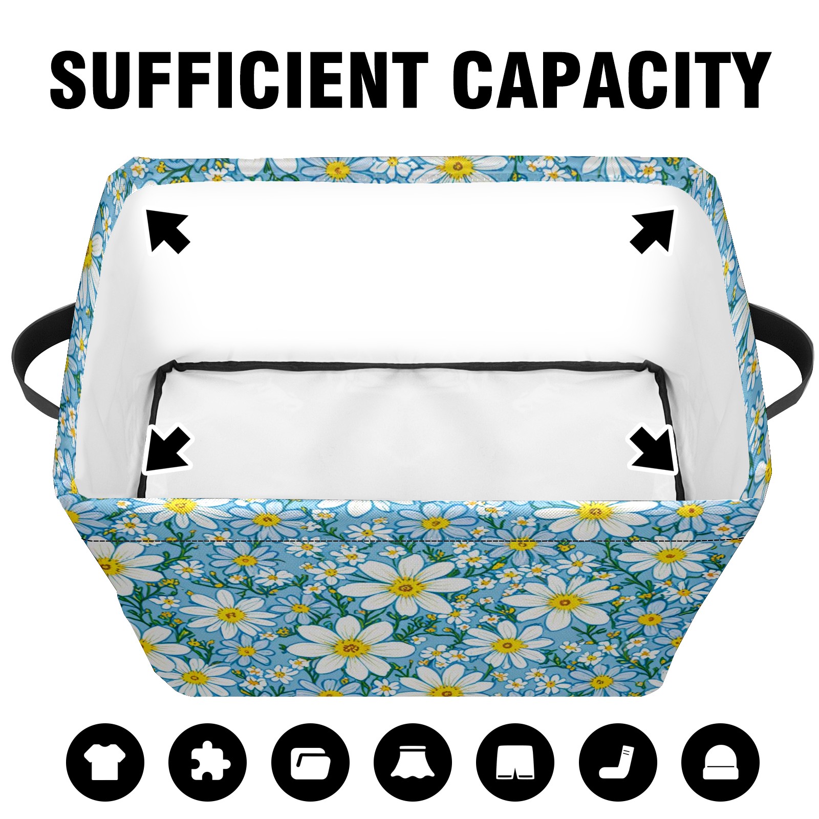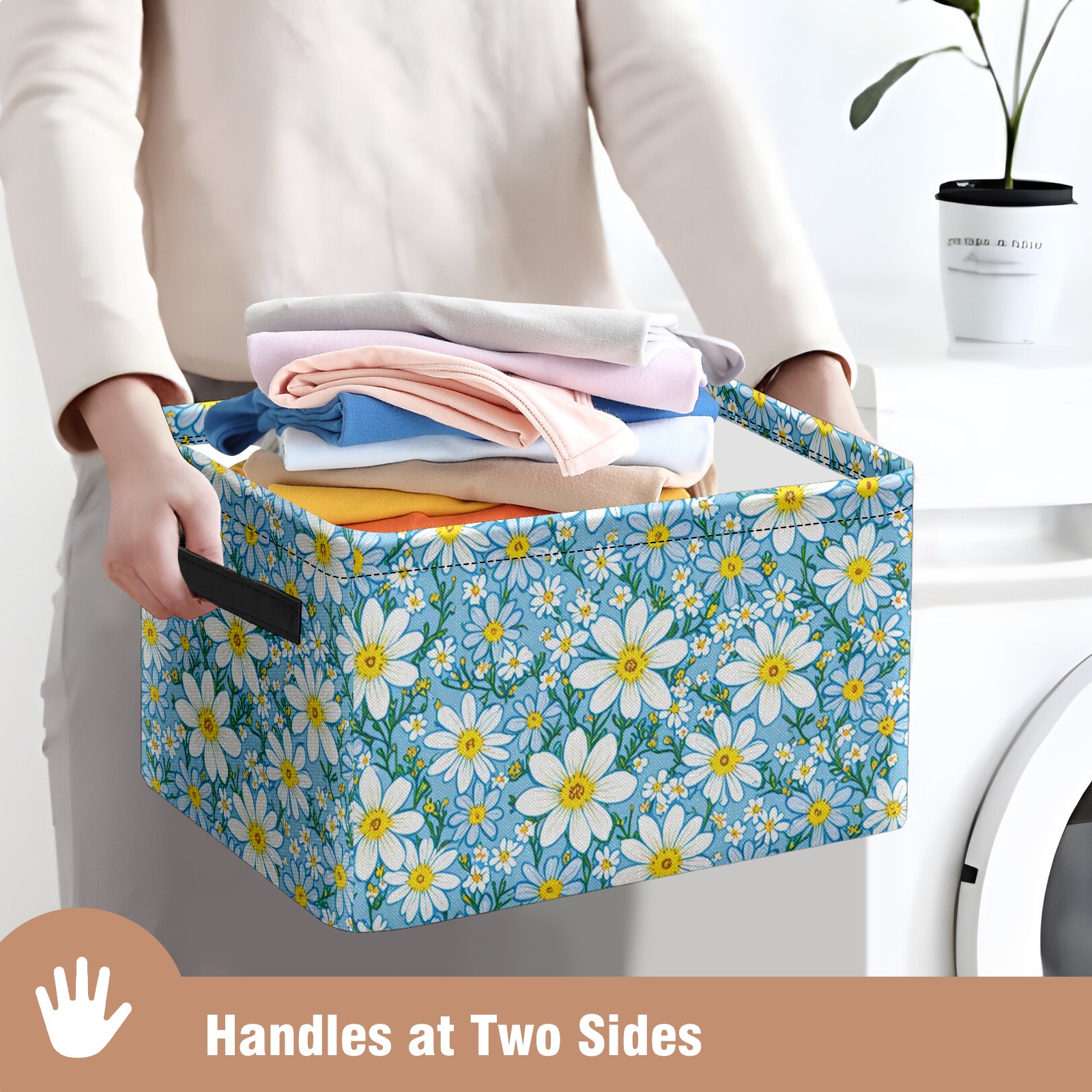 Foldable and Stackable Fabric Storage Basket for Home Organization with Handles, Decorative Closet Bins for Shelves and Laundry Storage( Blue White Floral)