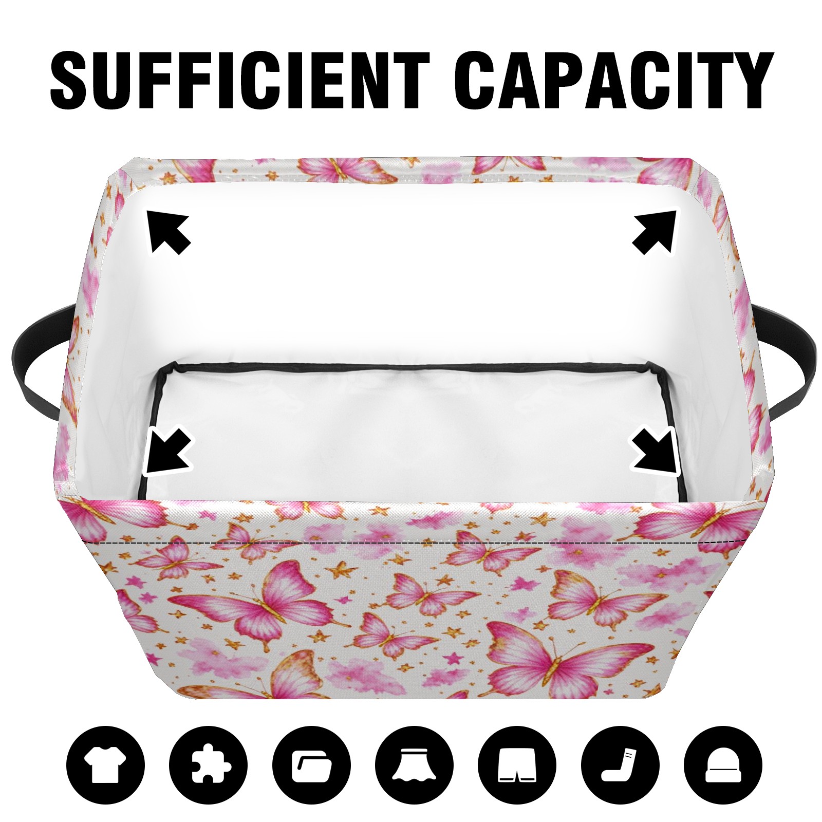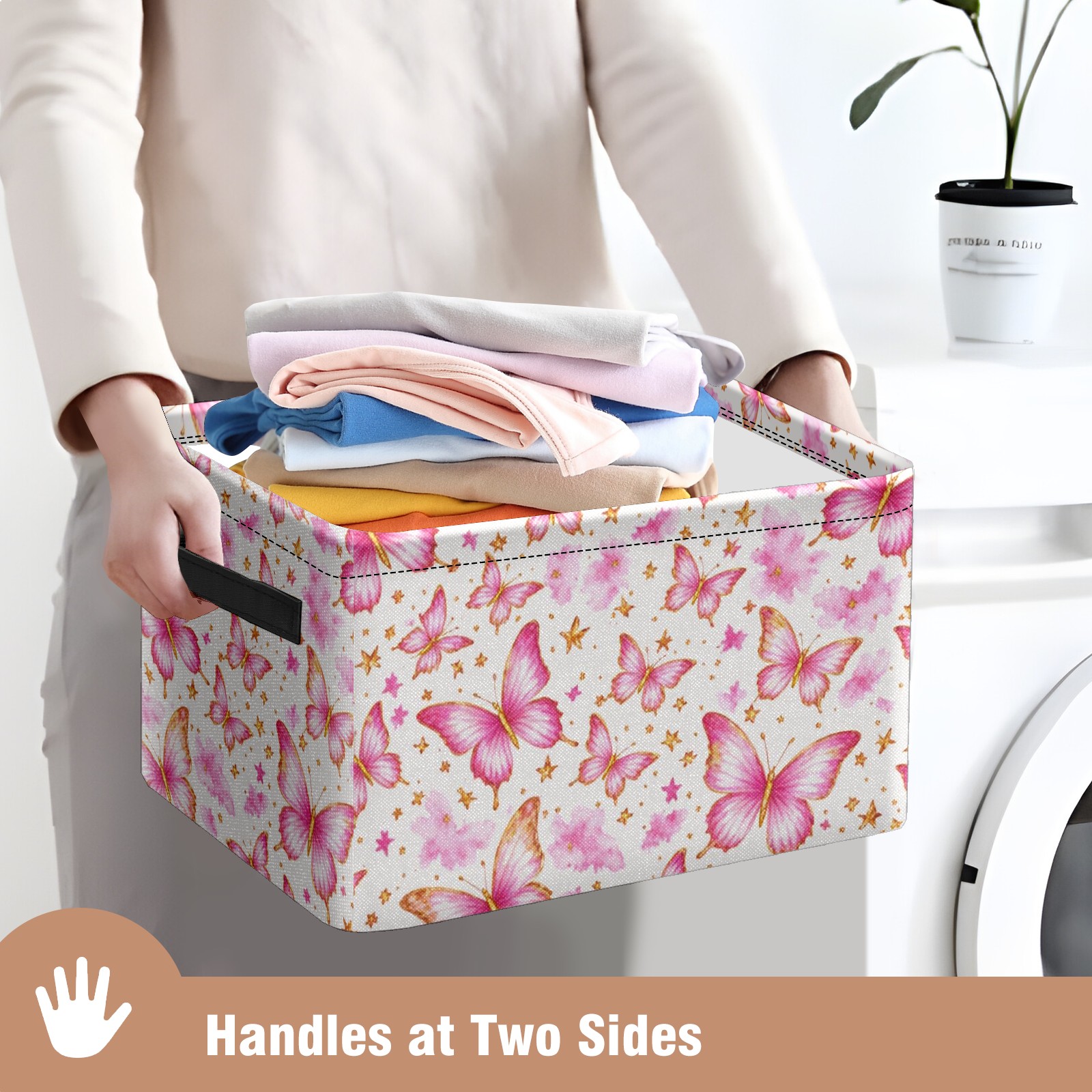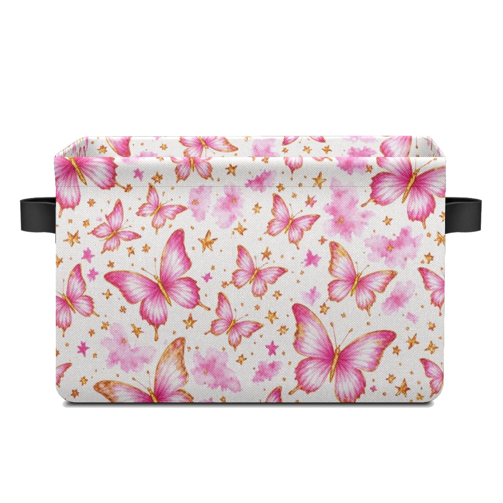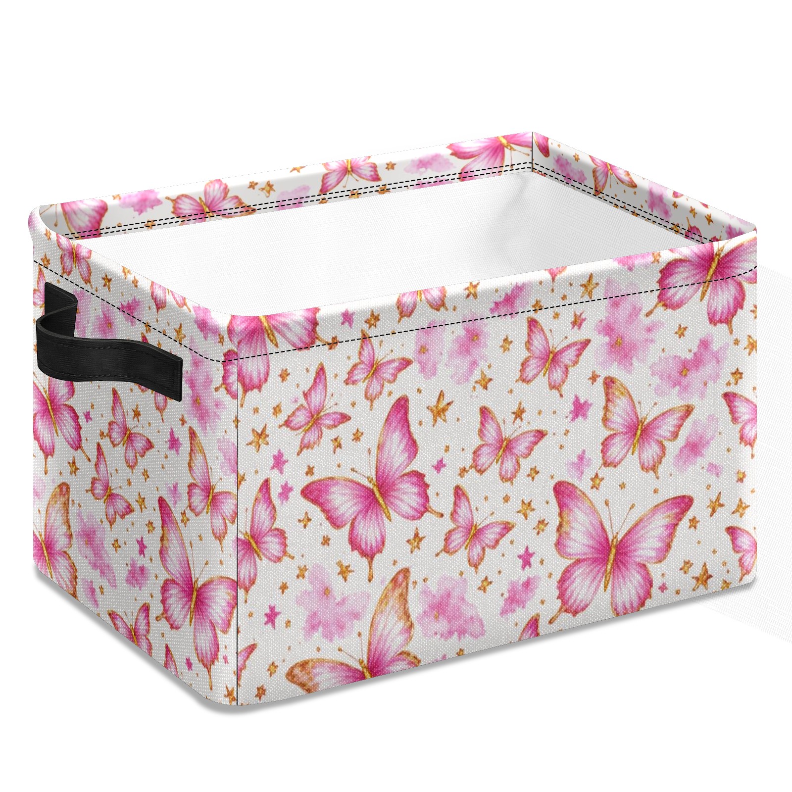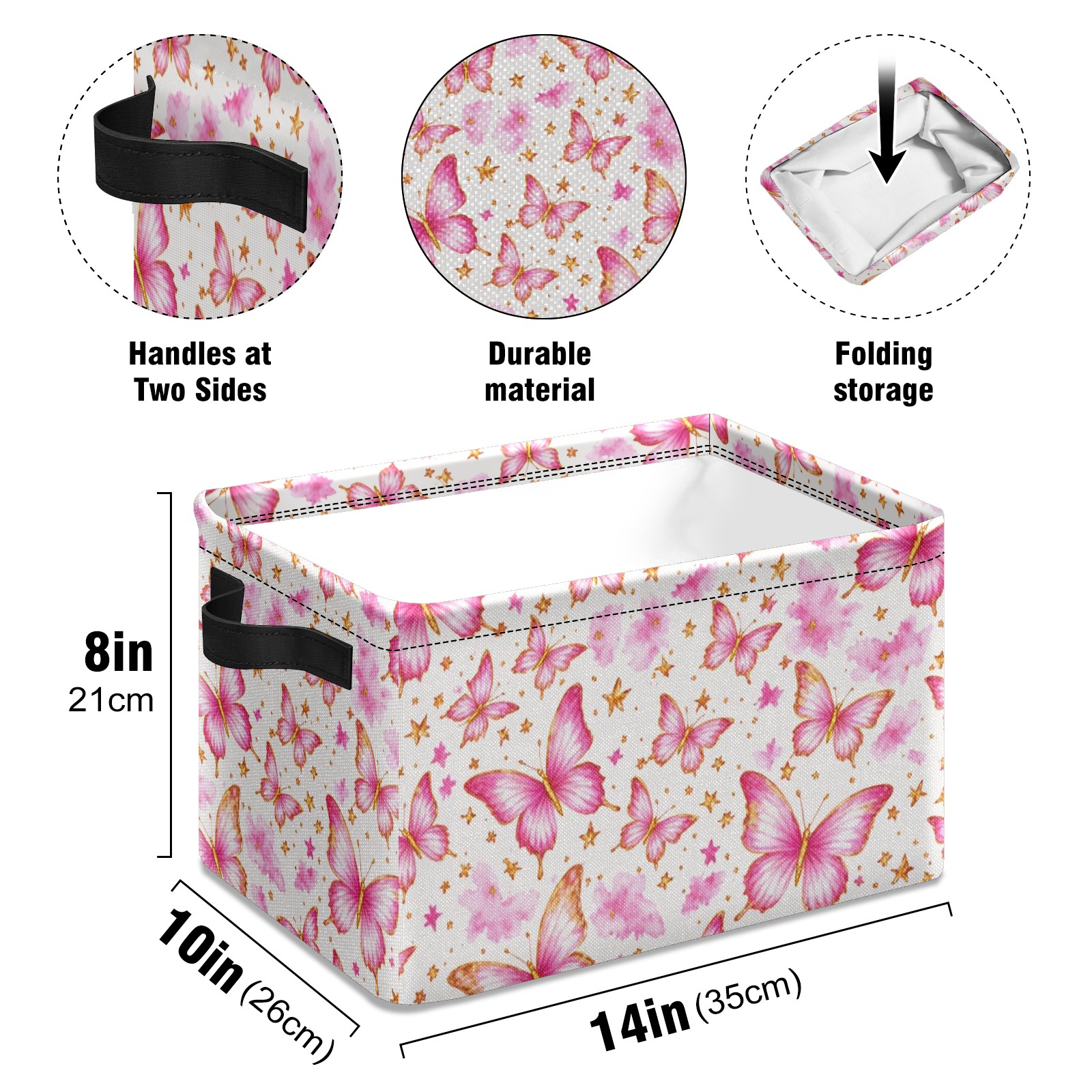 Foldable and Stackable Fabric Storage Basket for Home Organization with Handles, Decorative Closet Bins for Shelves and Laundry Storage( Pink Butterfly)