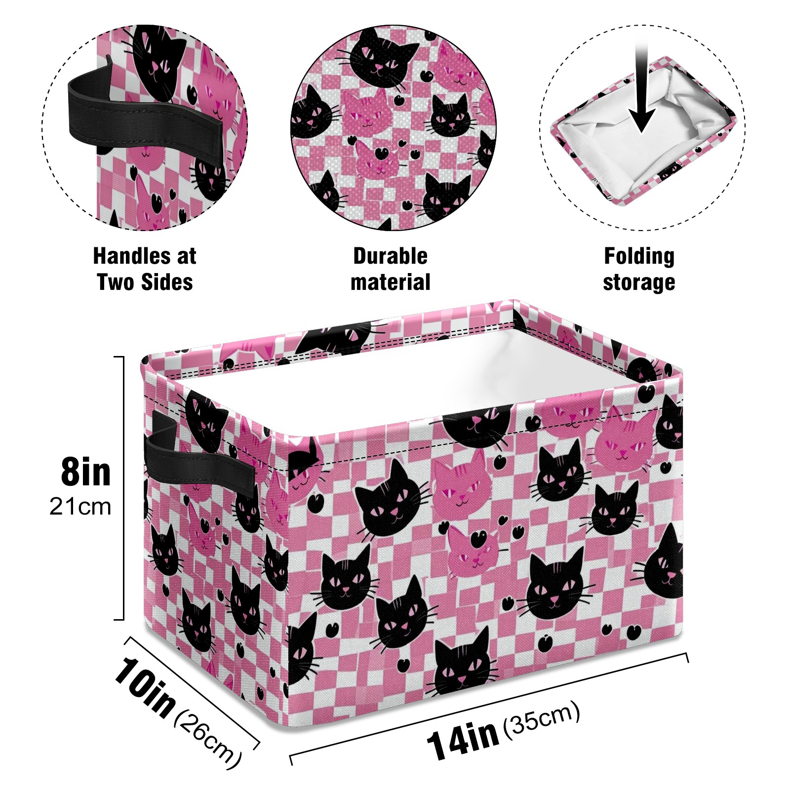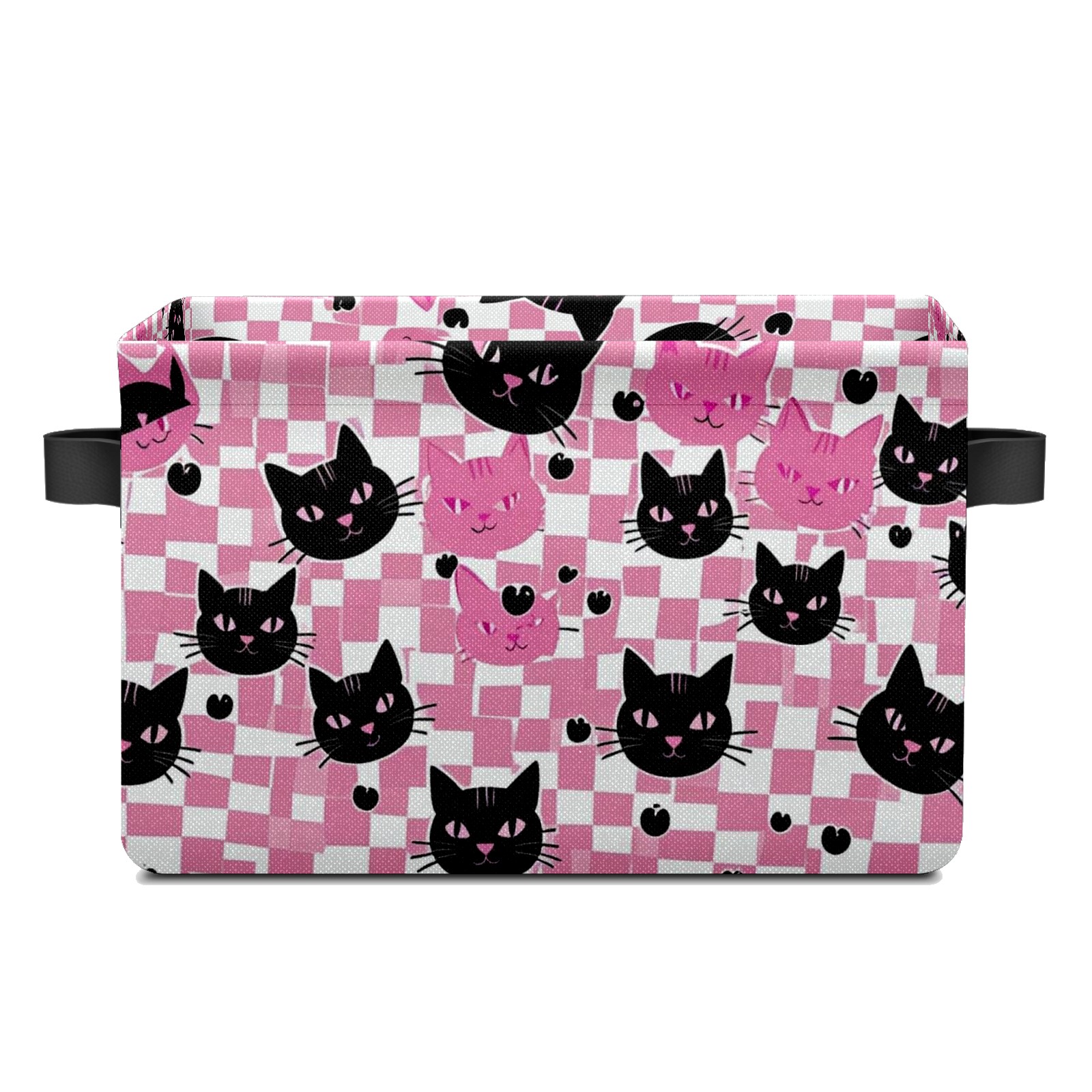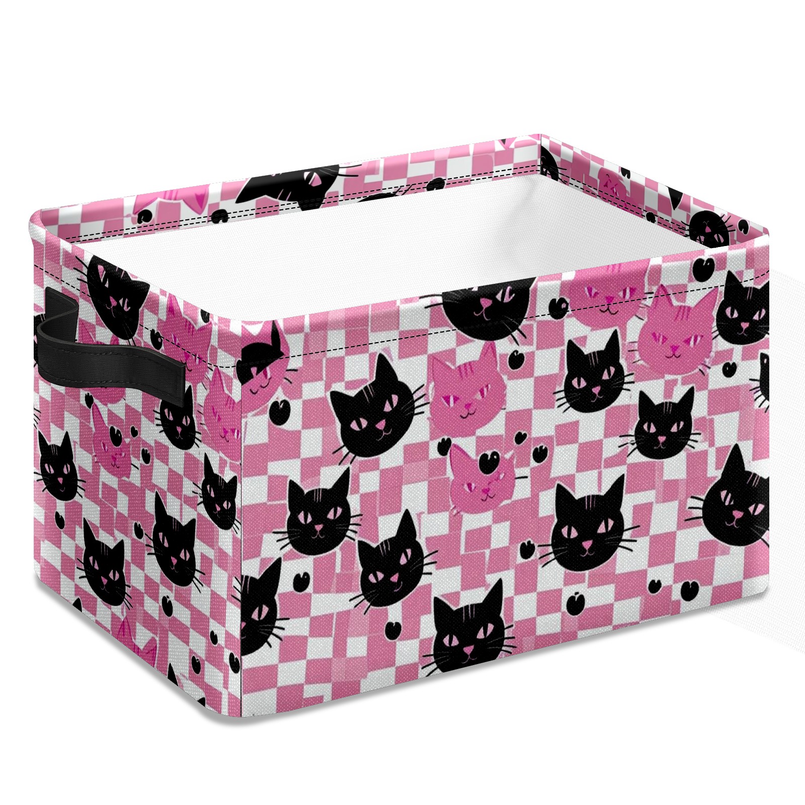 Foldable and Stackable Fabric Storage Basket for Home Organization with Handles, Decorative Closet Bins for Shelves and Laundry Storage( Pink Black Cat)